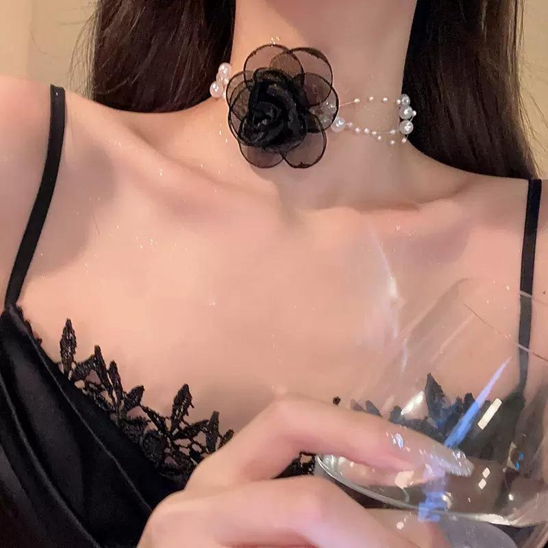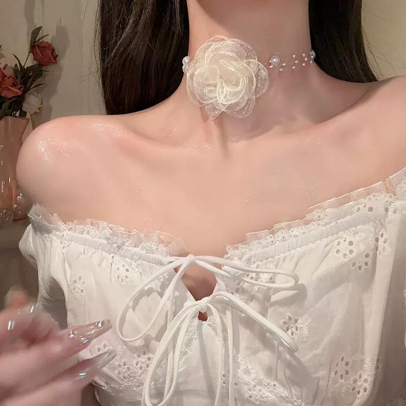 Collar de perlas de camelia Super Fairy para mujer, novedad de 2024, diseño de nicho de lujo, cadena de clavícula, elegante gargantilla.