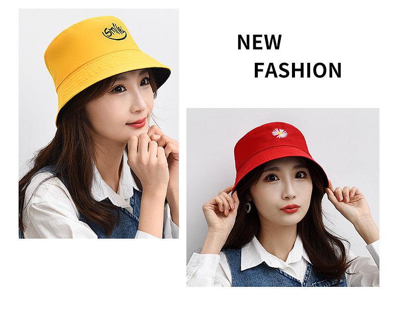 Nueva versión coreana de sombrero de pescador con bordado creativo de doble cara, sombrero de sol de moda informal para mujer, gorro de lavabo para hombre, venta al por mayor de fábrica