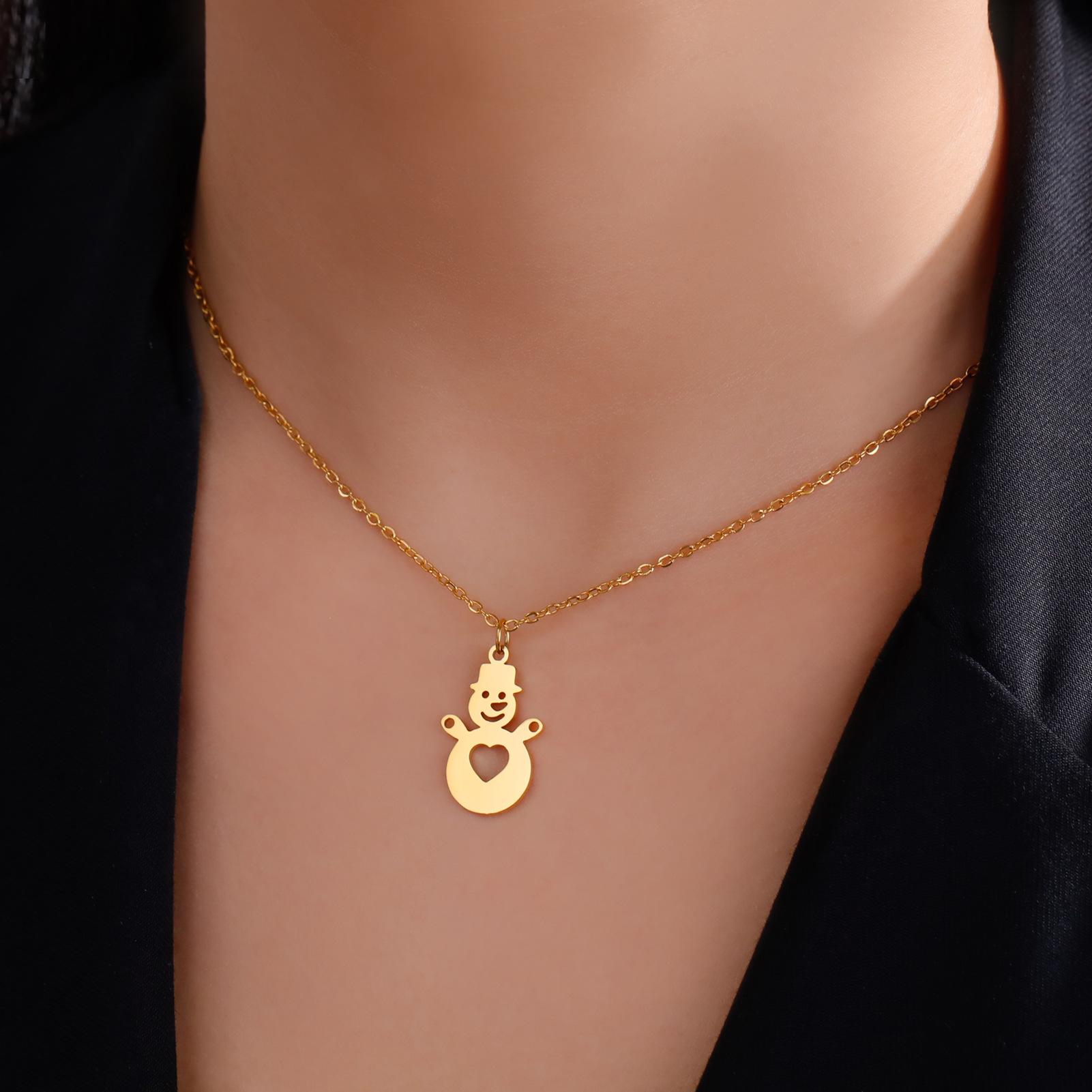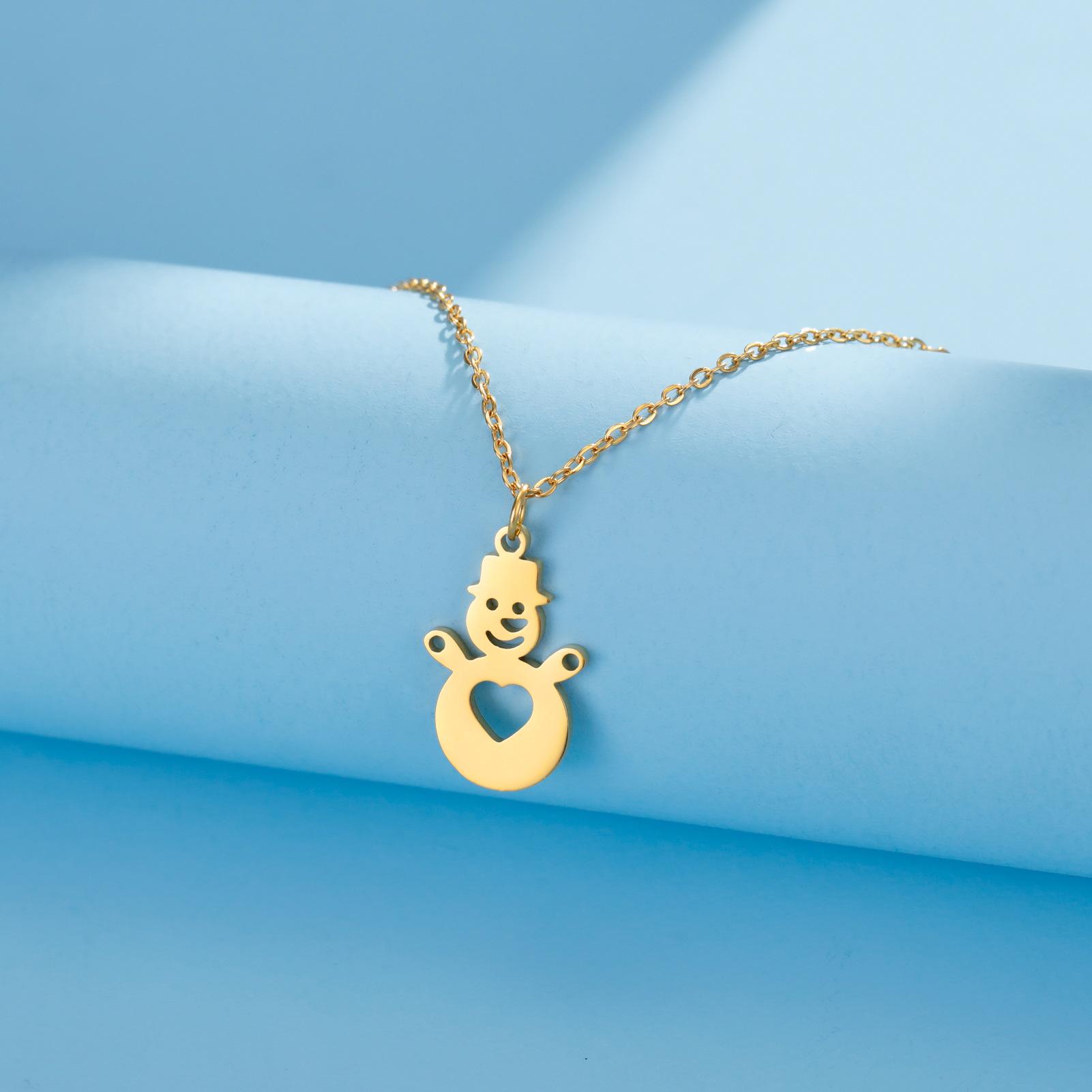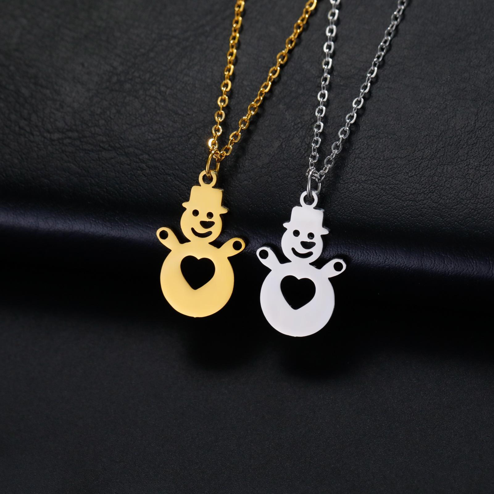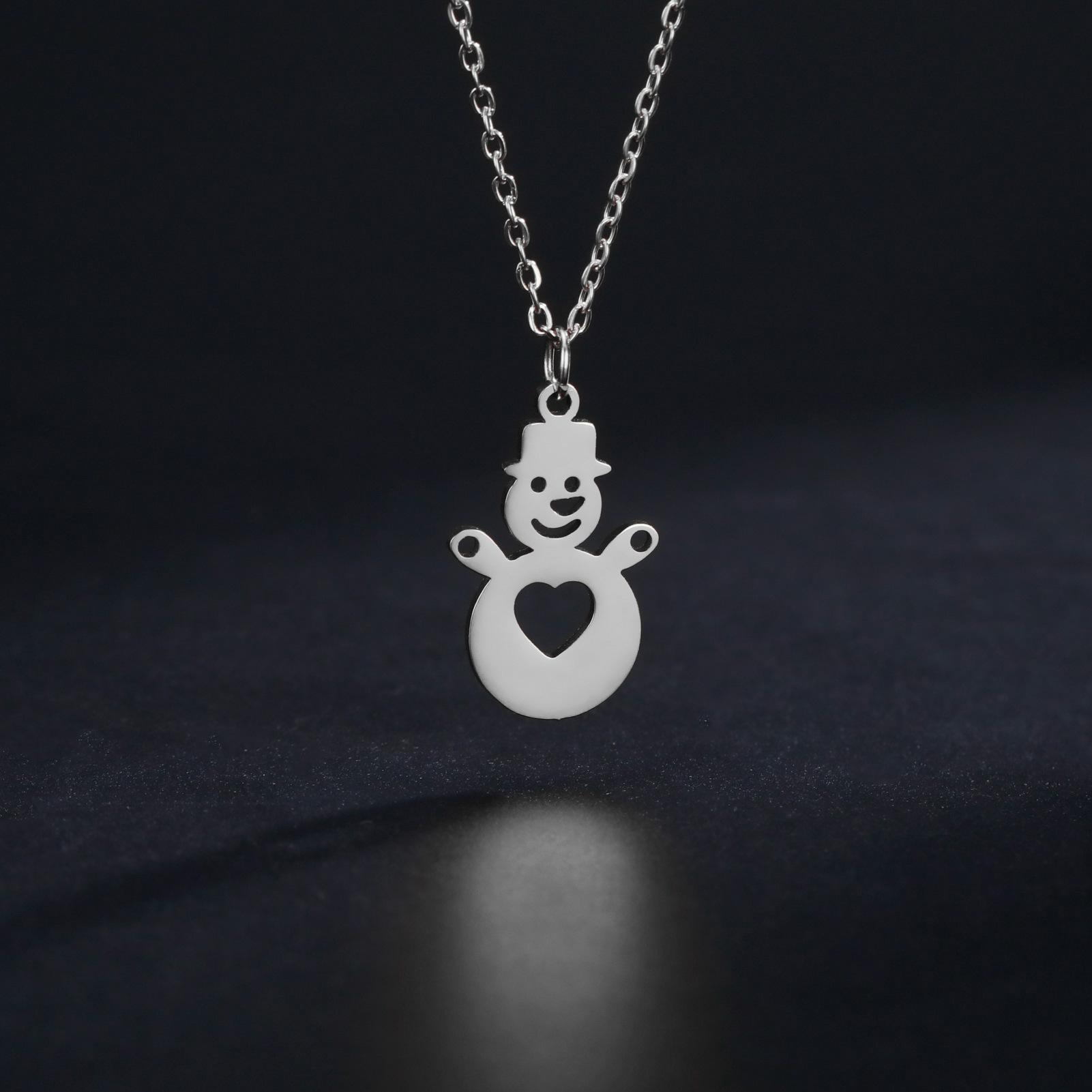 Comercio exterior venta caliente comercio electrónico especial para Navidad Año Nuevo lindo caricatura simple pluma amor muñeco de nieve colgante collar de acero inoxidable