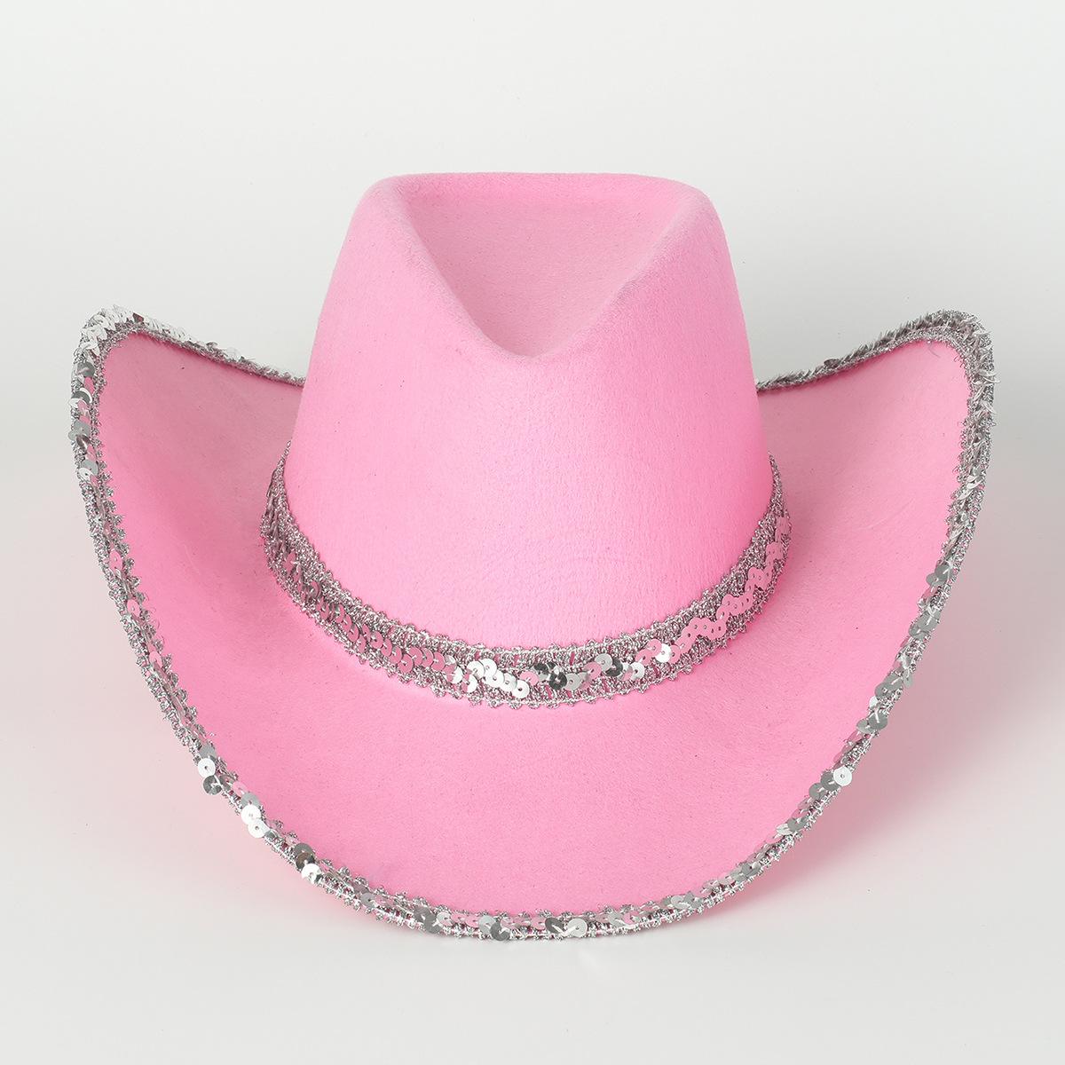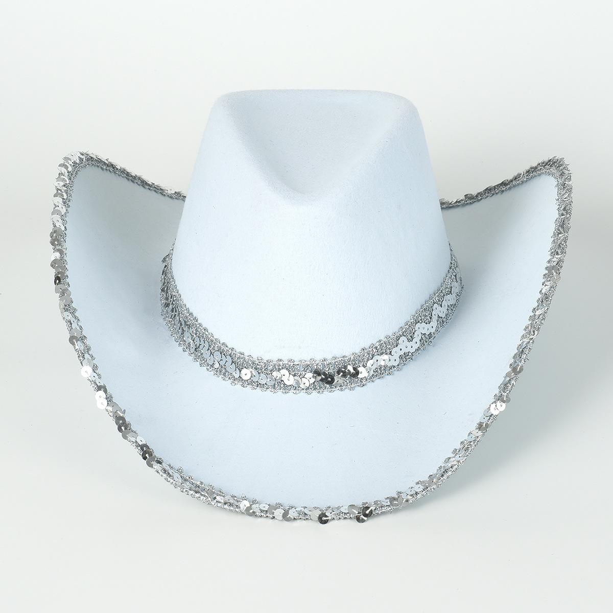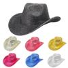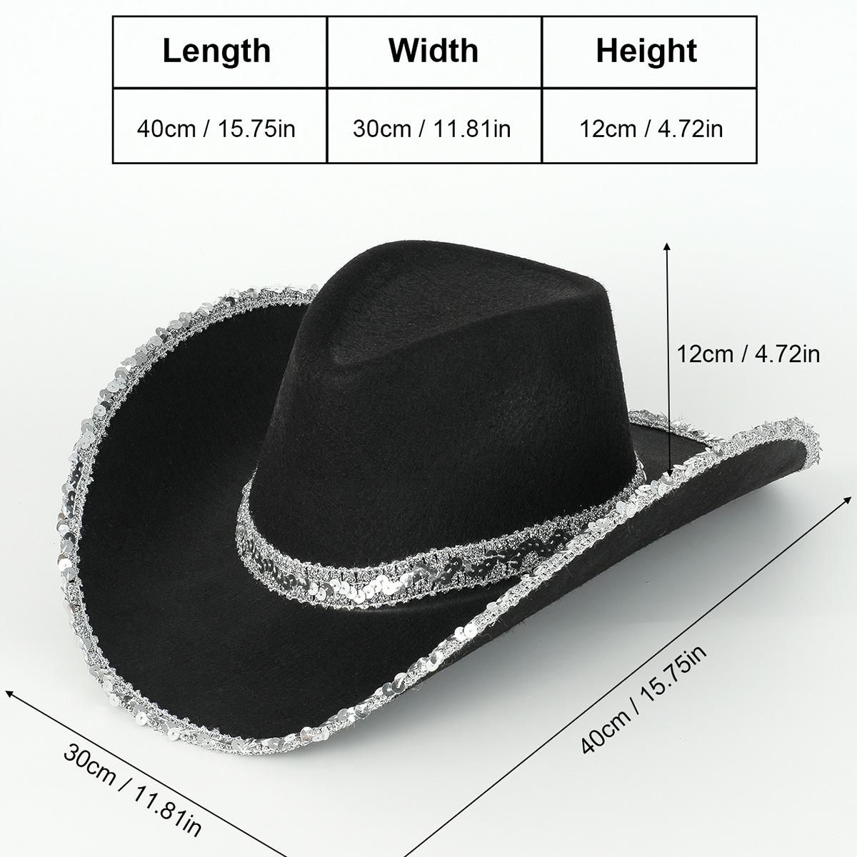 Sombrero de vaquero occidental para hombre y mujer, con lentejuelas brillantes, accesorios, ala ancha y curva, sombrero de jazz personalizado para fiestas.