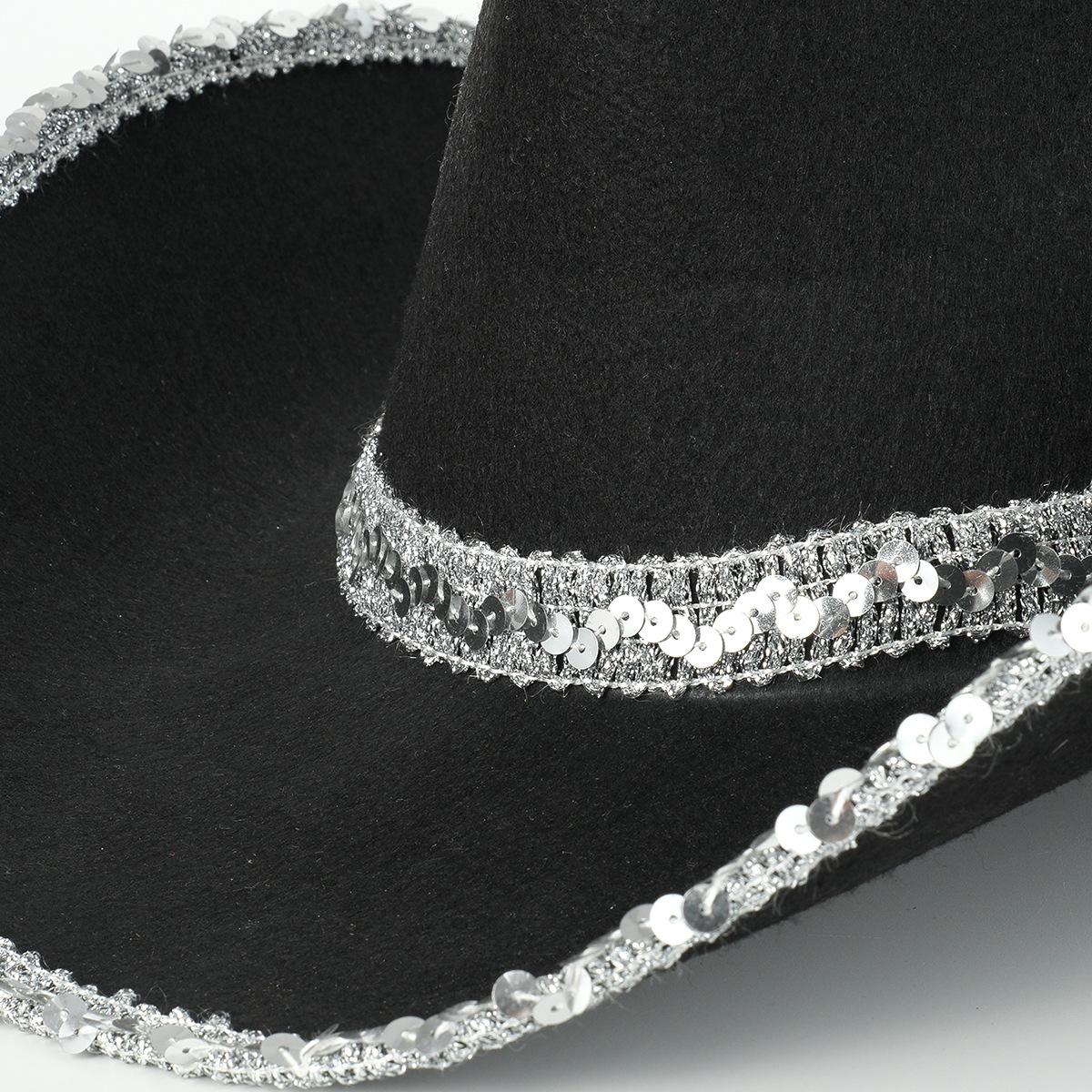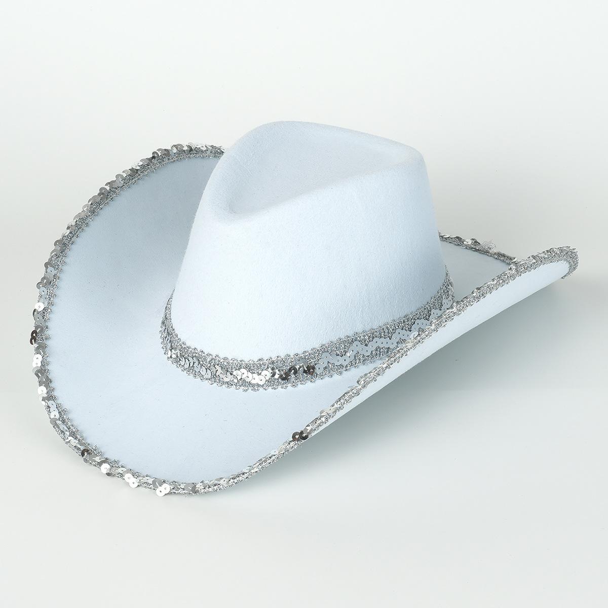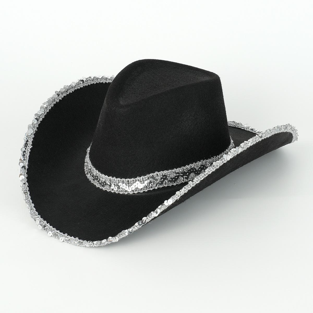 Sombrero de vaquero occidental para hombre y mujer, con lentejuelas brillantes, accesorios, ala ancha y curva, sombrero de jazz personalizado para fiestas.