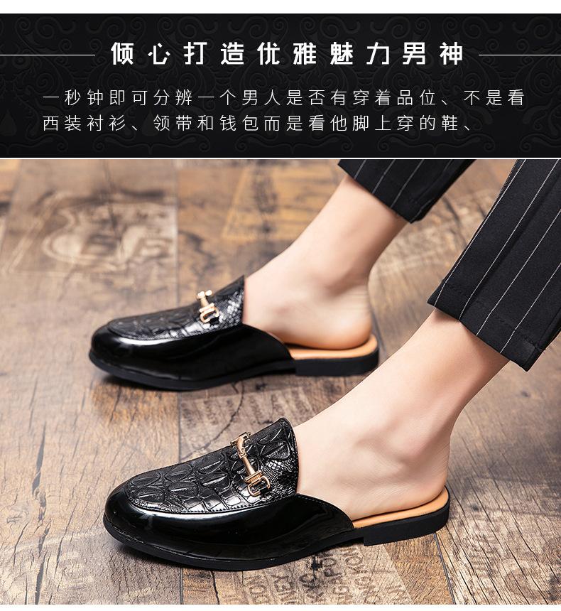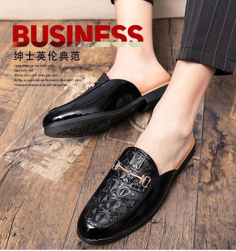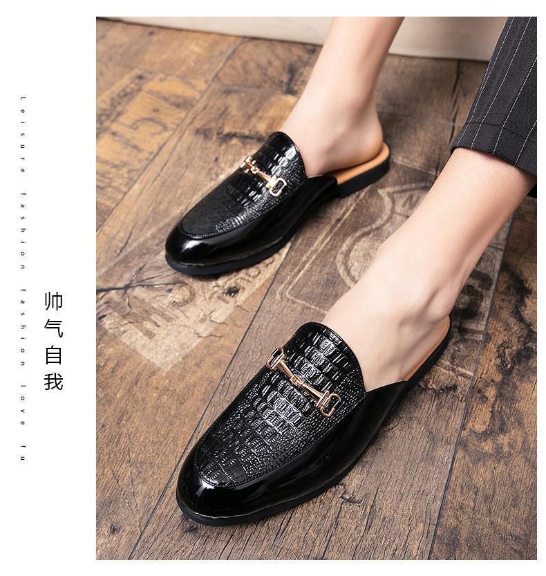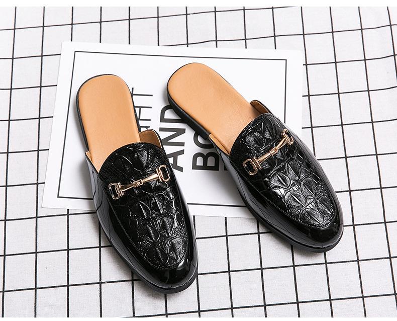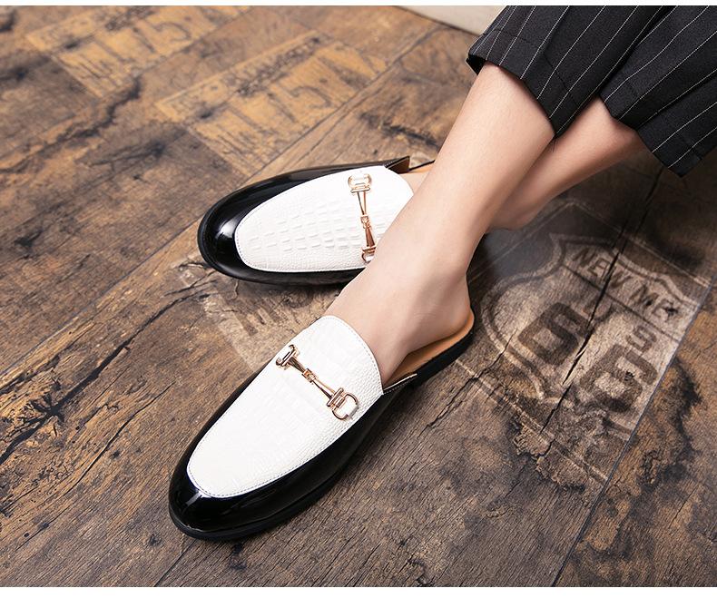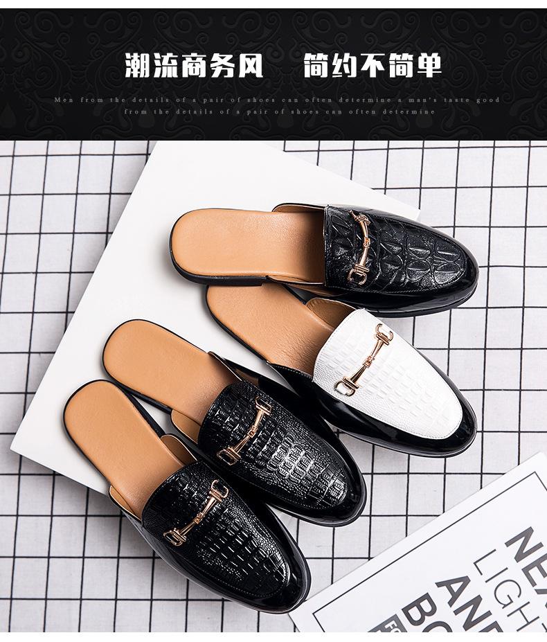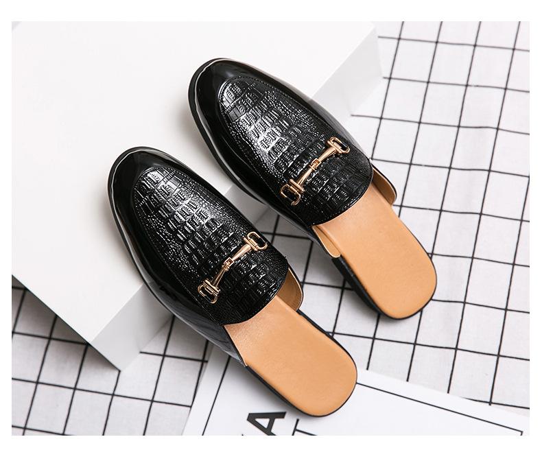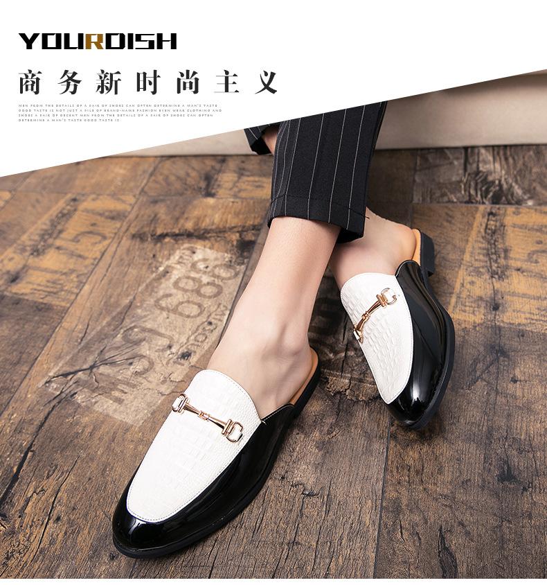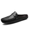 Zapatillas de cuero genuino transpirables de punta cerrada para primavera y verano para hombre, zapatillas de media caña sin talón para hombre, sandalias casuales de cuero genuino para hombre