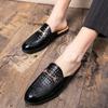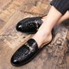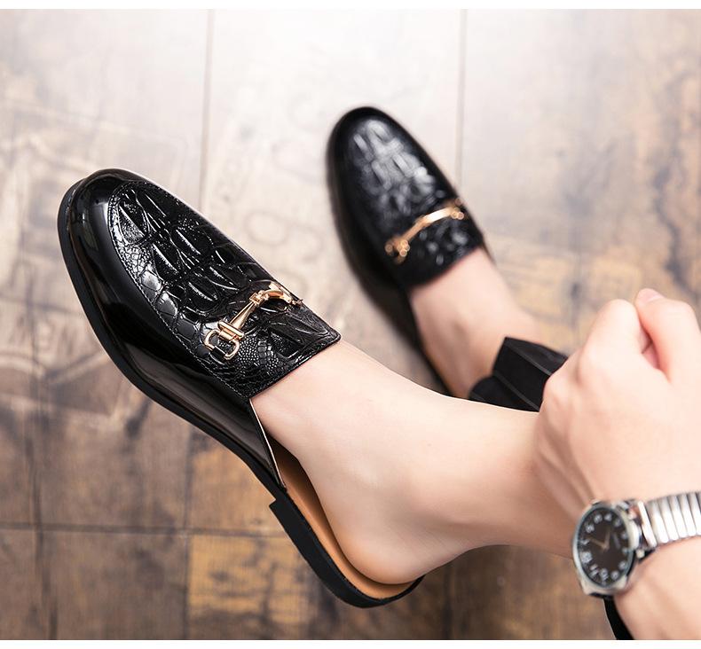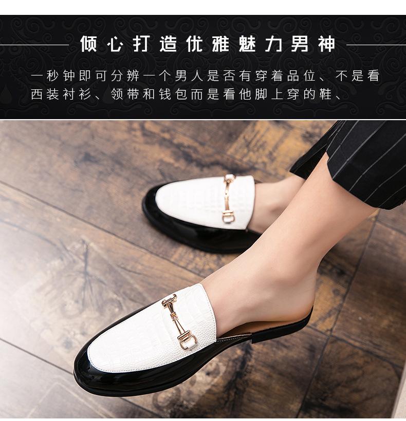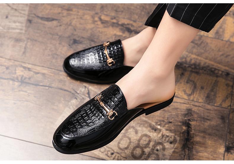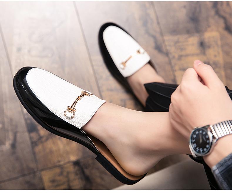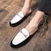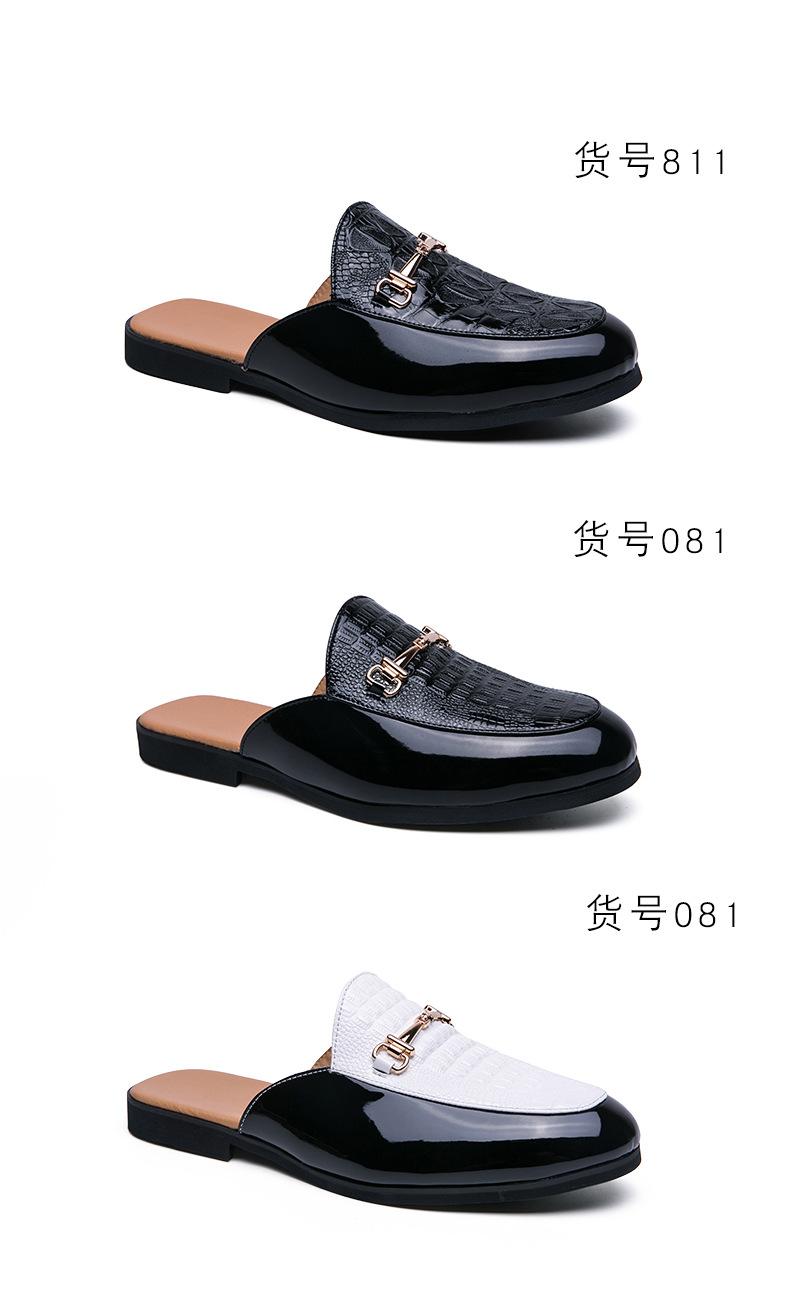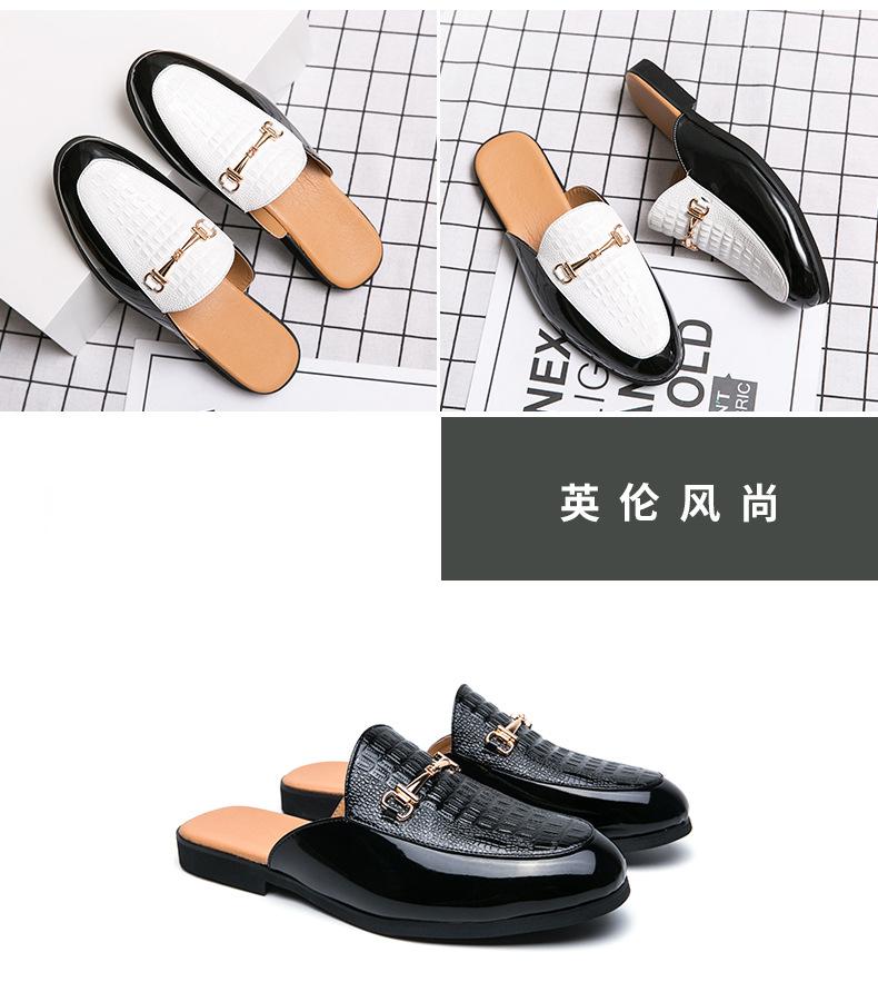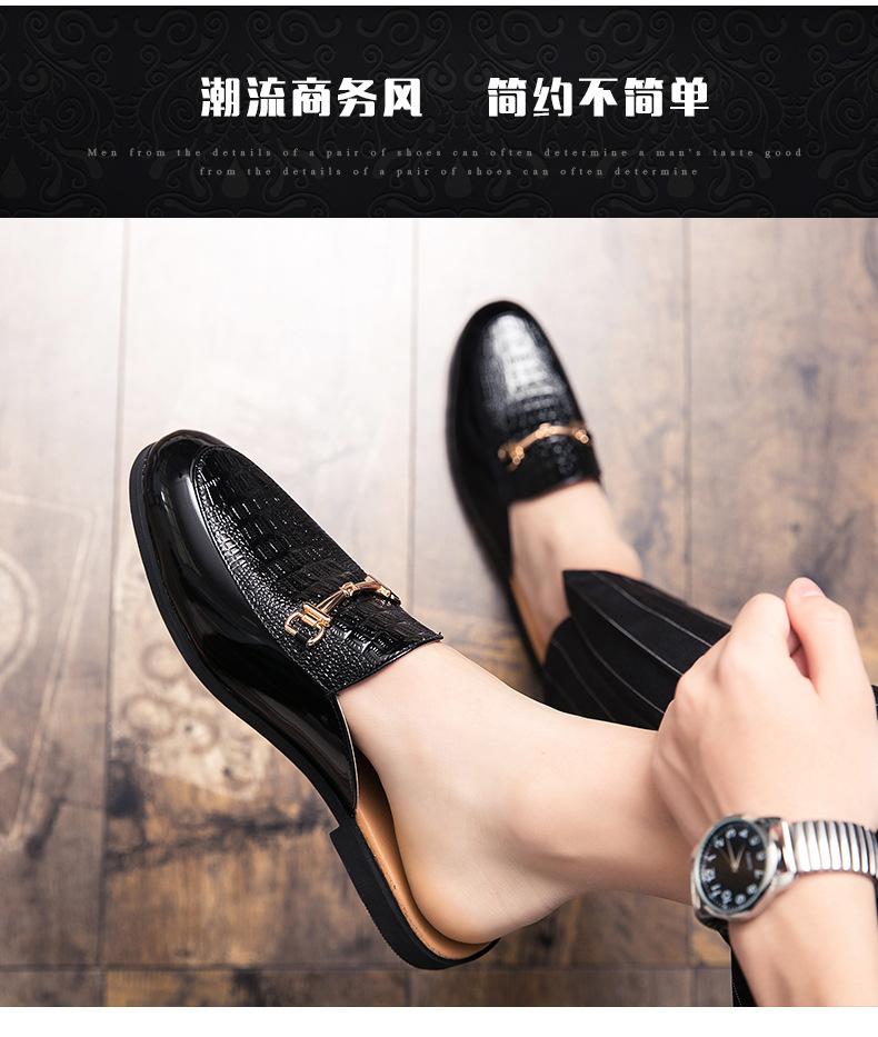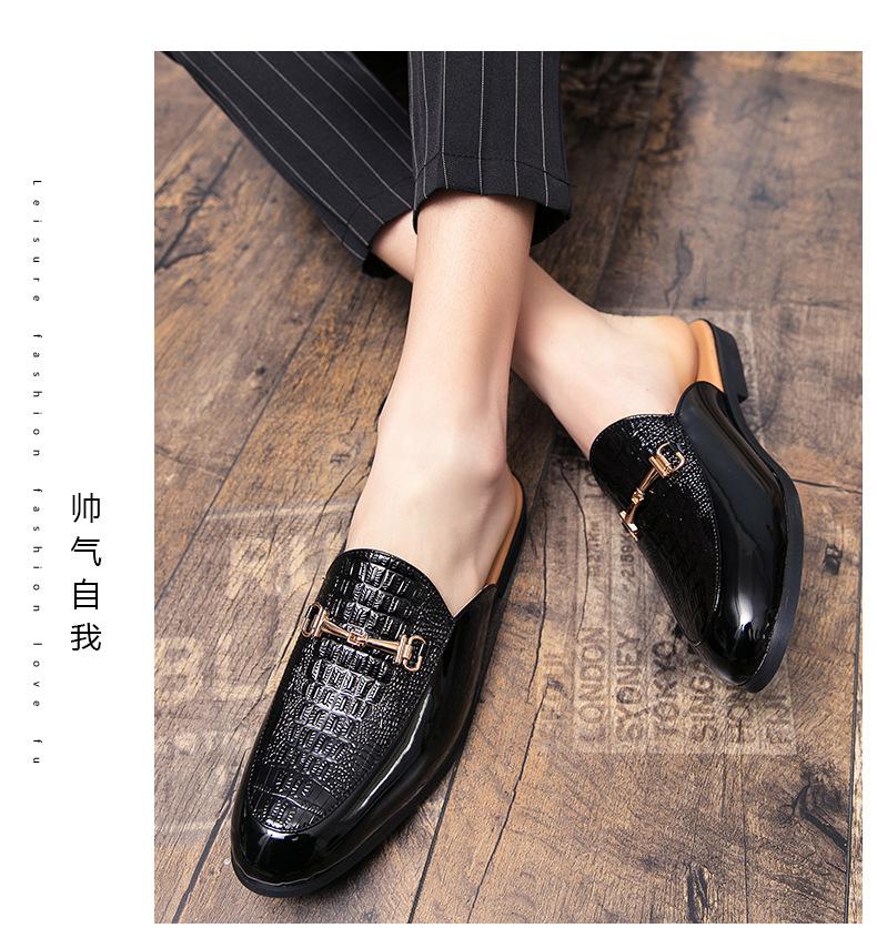 Zapatillas de cuero genuino transpirables de punta cerrada para primavera y verano para hombre, zapatillas de media caña sin talón para hombre, sandalias casuales de cuero genuino para hombre