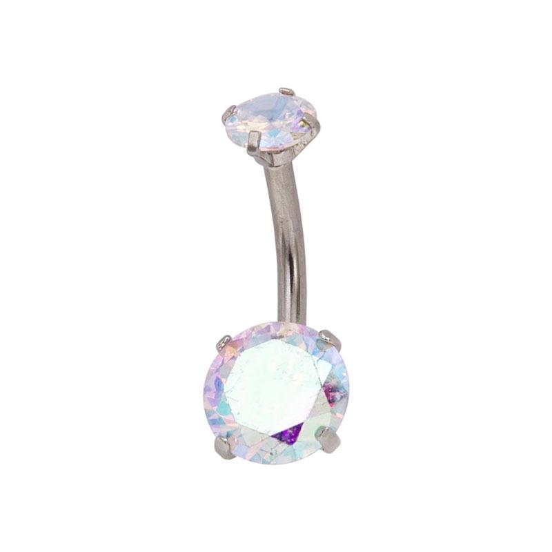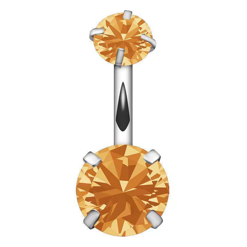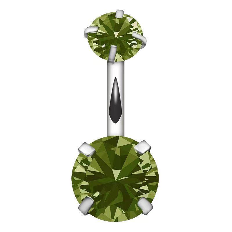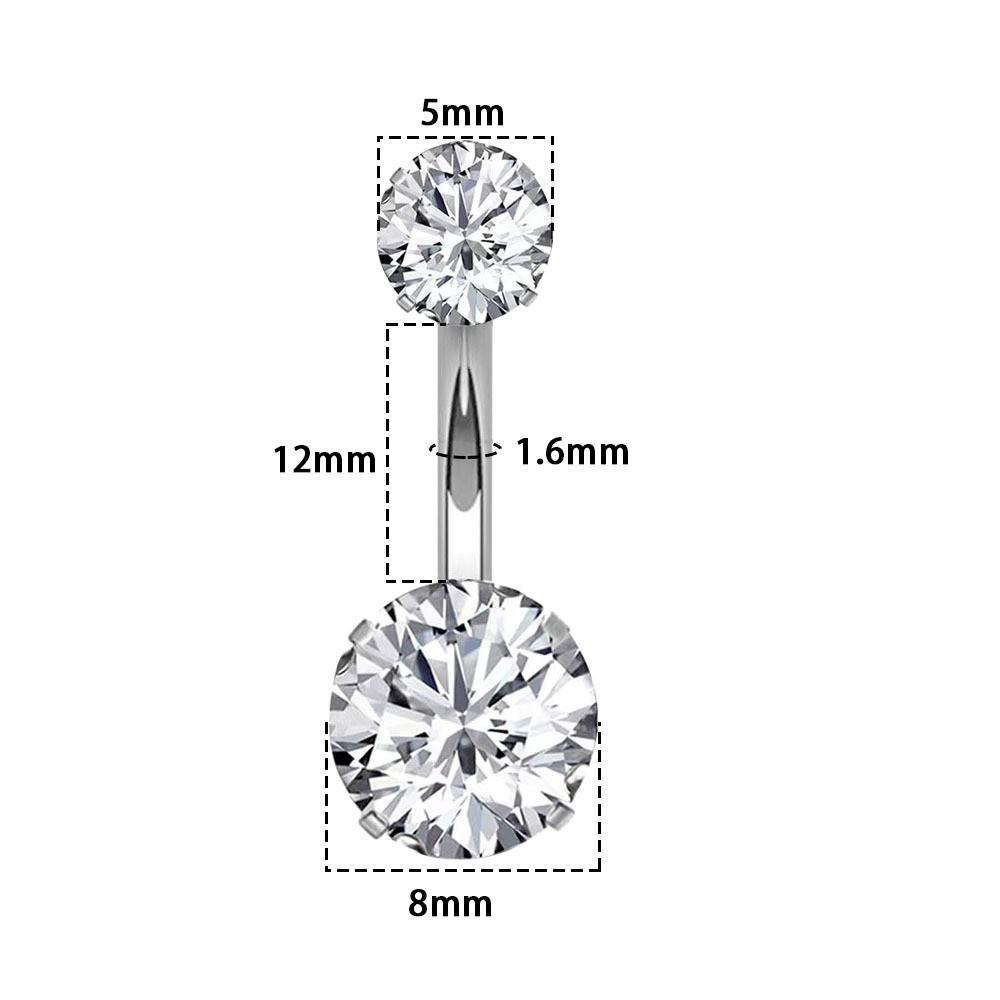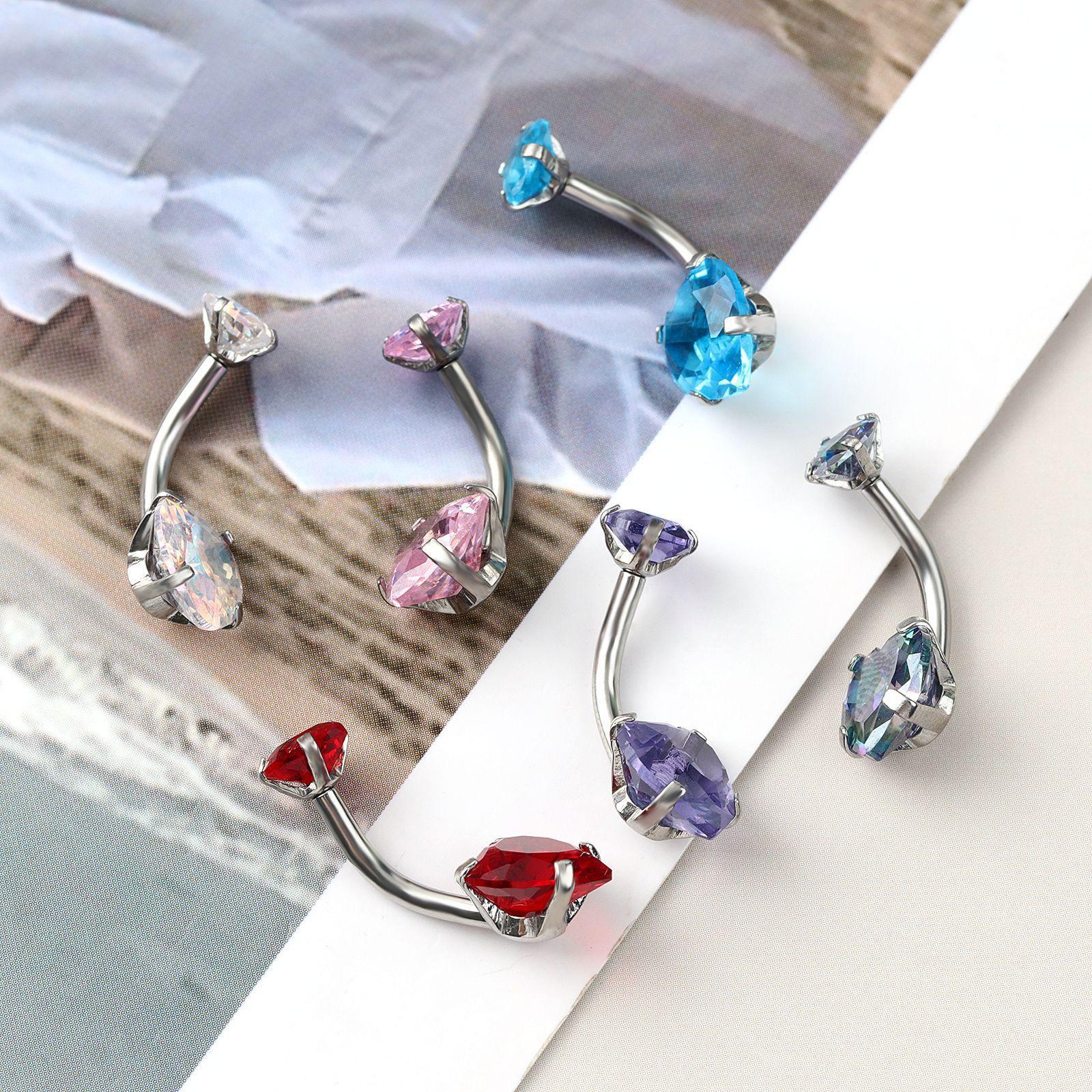 Anillo para el Ombligo de Acero Inoxidable de Venta Caliente Transfronterizo con Zircón Colorido para Mujeres, Joyería para Piercing de Acero Inoxidable con Incrustaciones de Gemas de Doble Extremo con Zircón Colorido