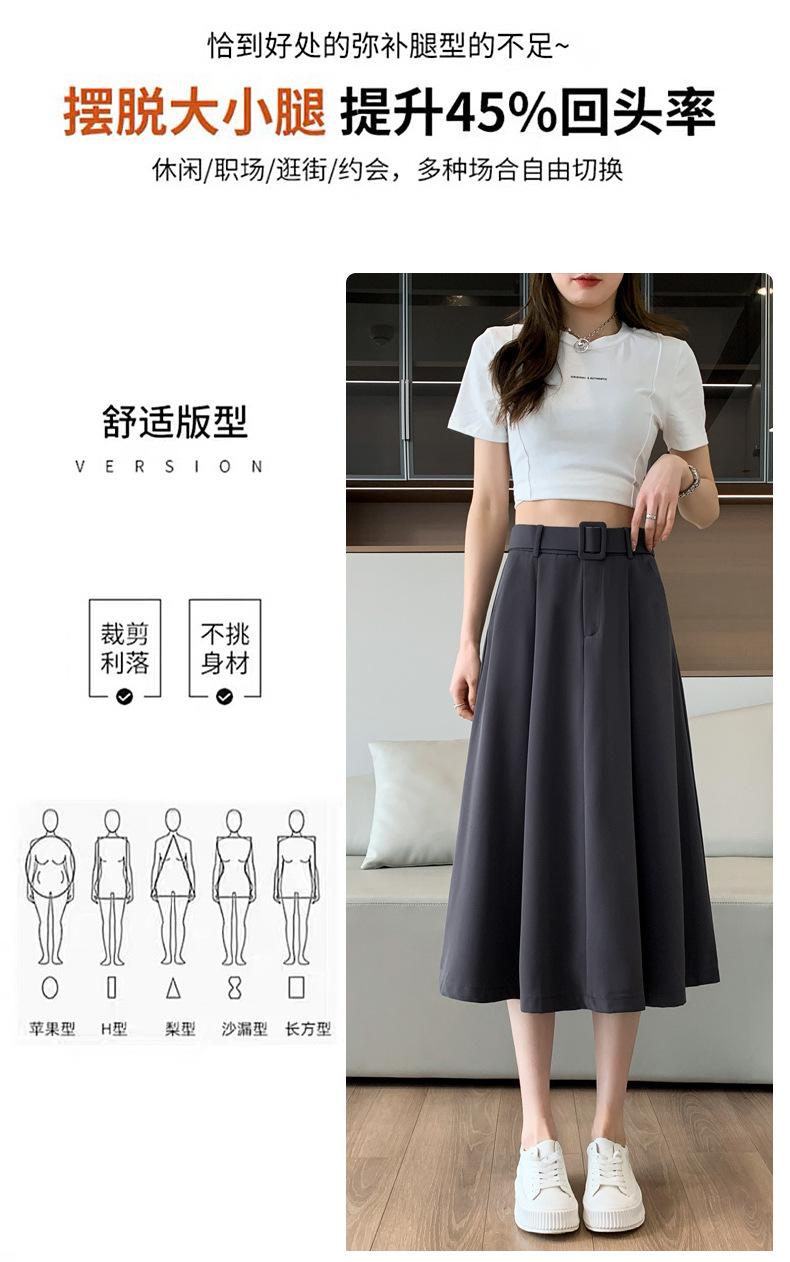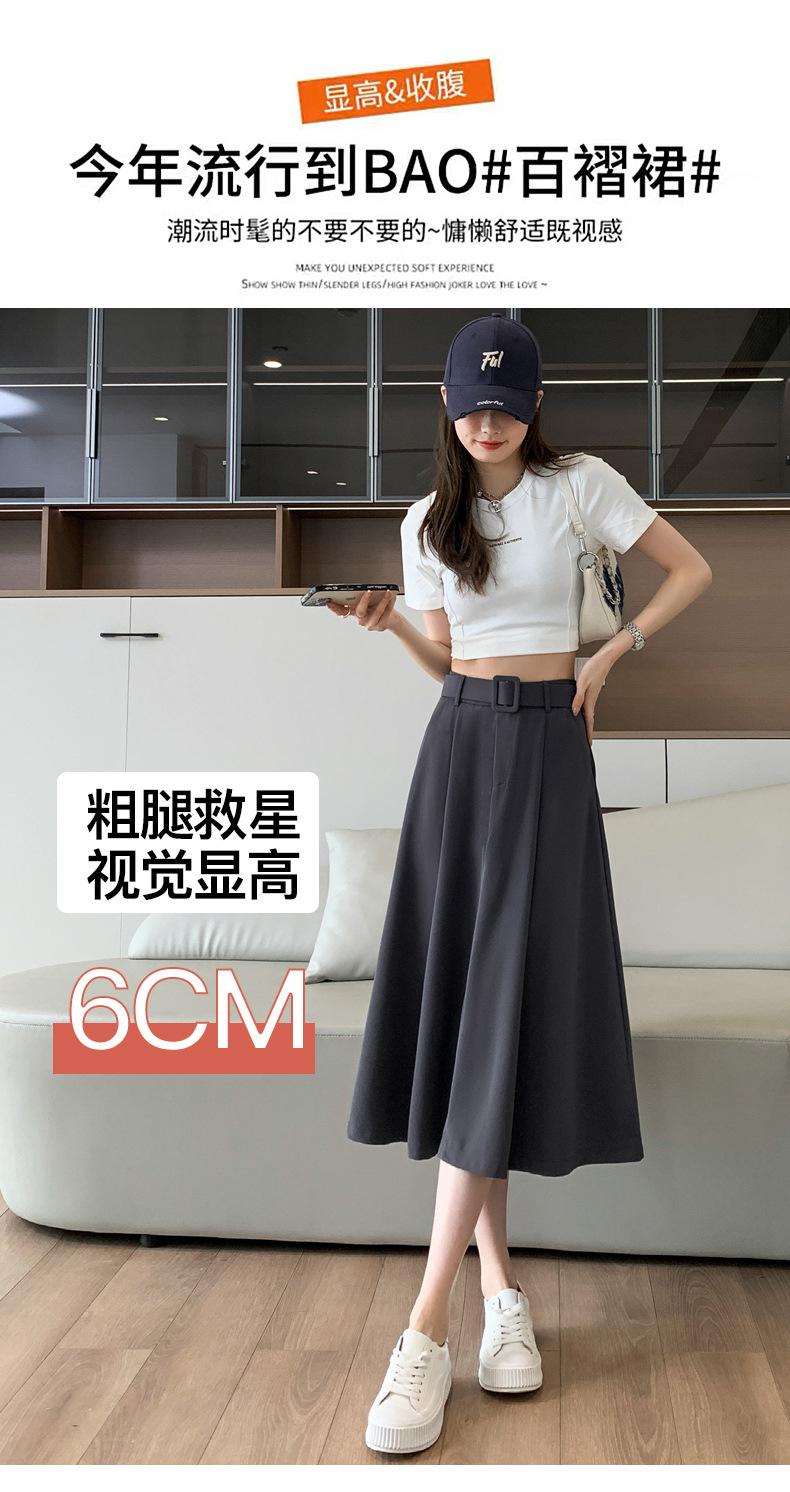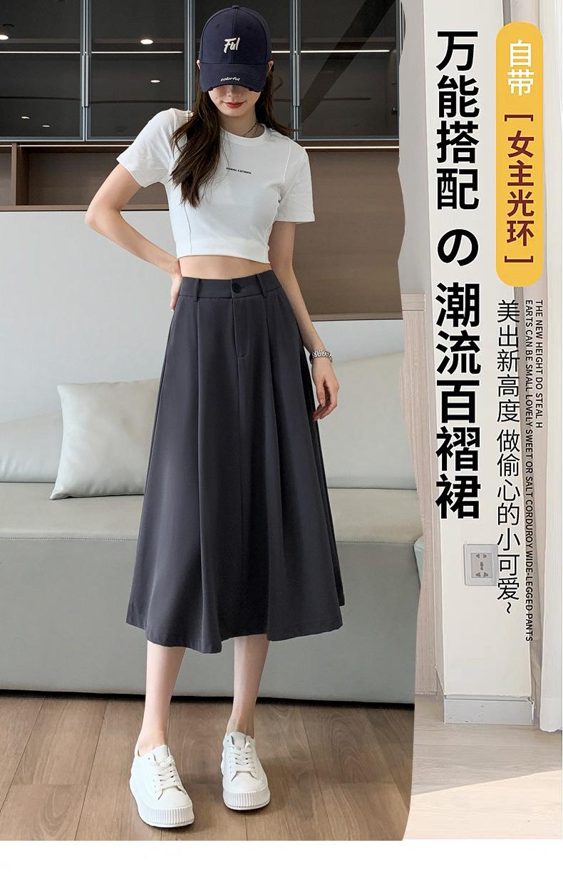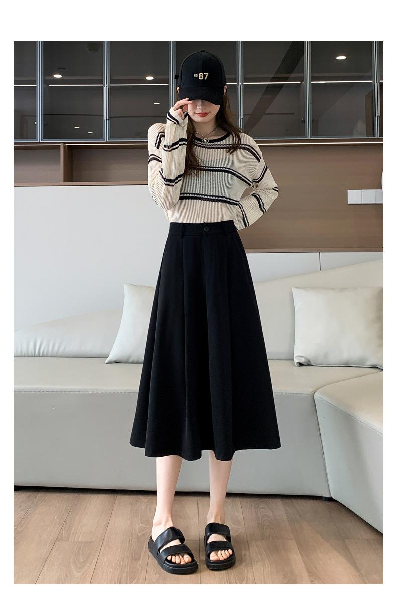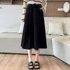 Falda Paraguas A-Line de Largo Medio con Plisados Negros para Mujer de Cintura Alta Verano 2025 Textura Look Adelgazante Caída Traje Falda Midi 2615
