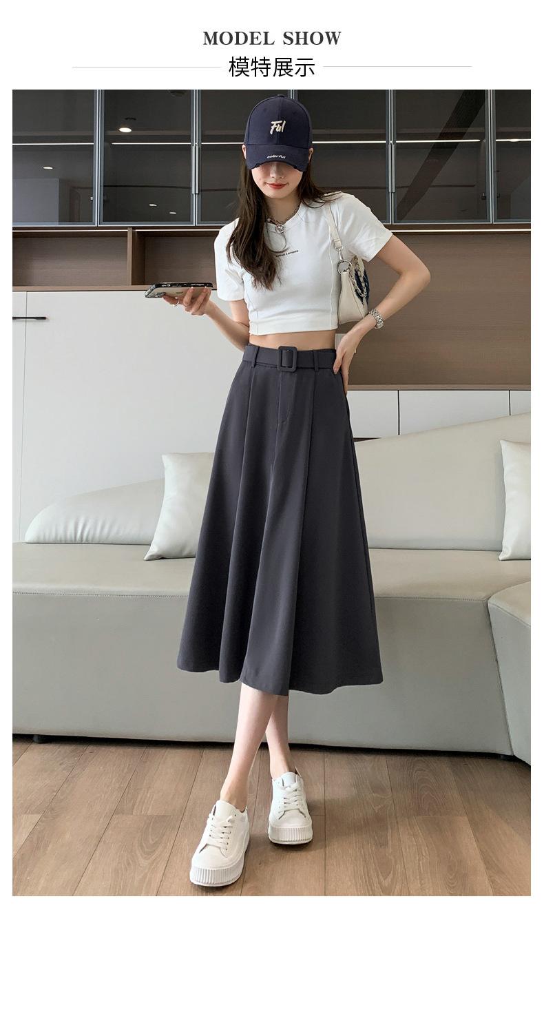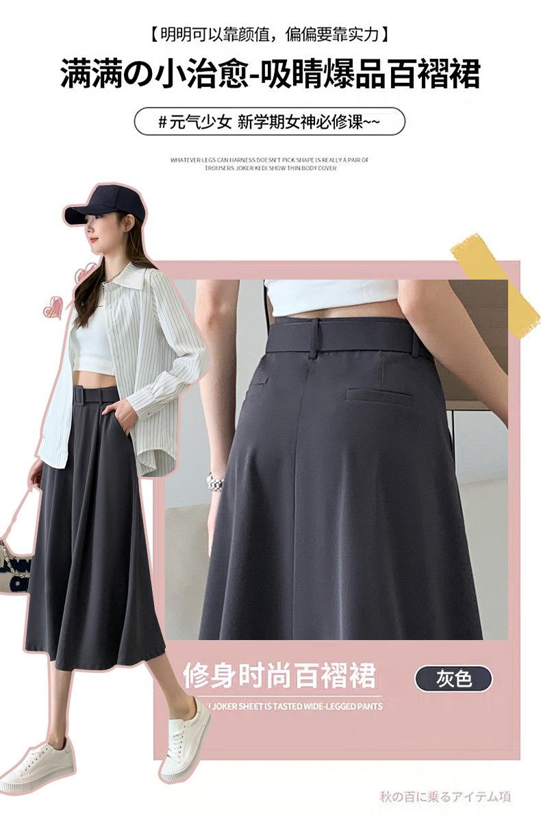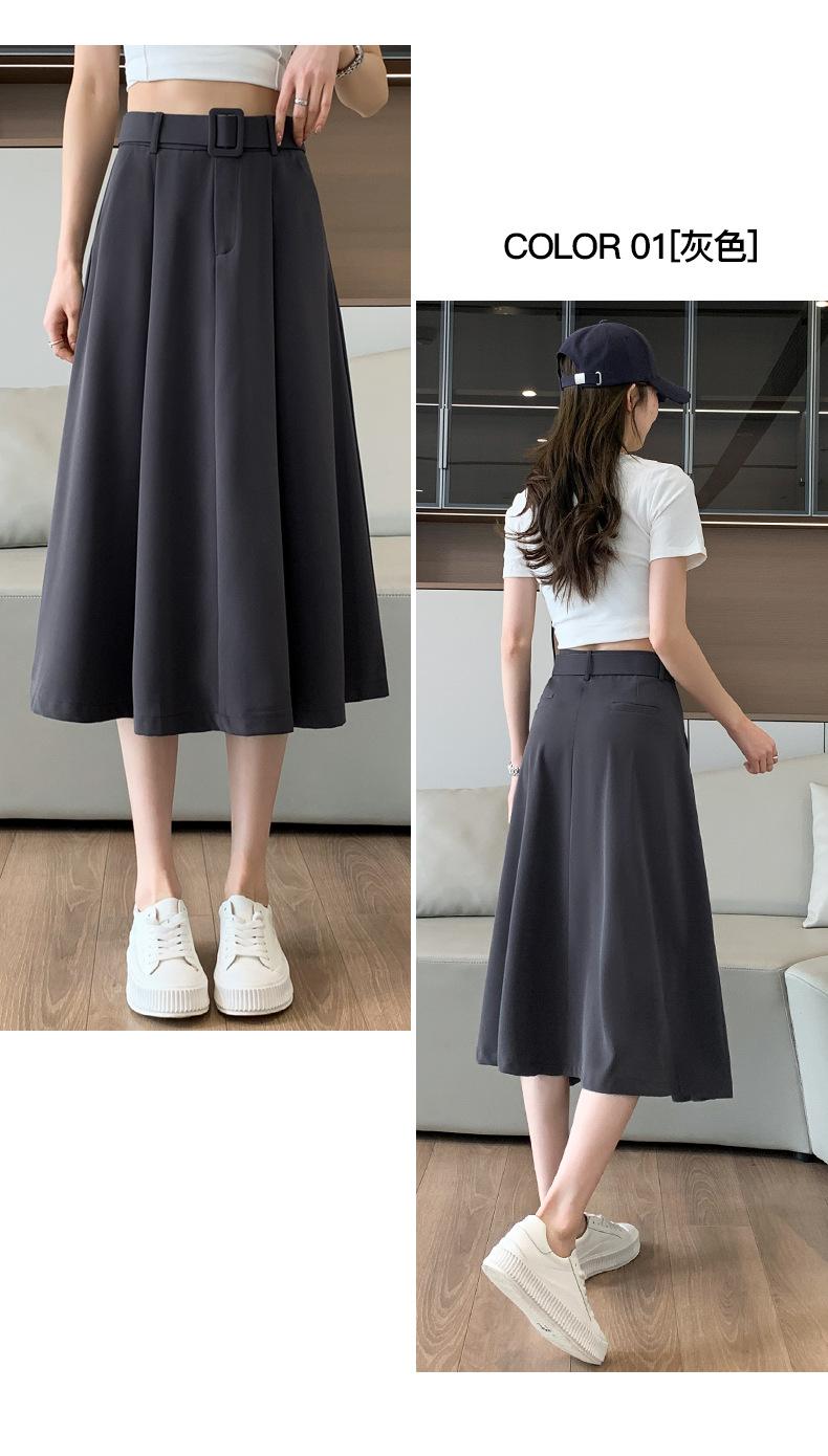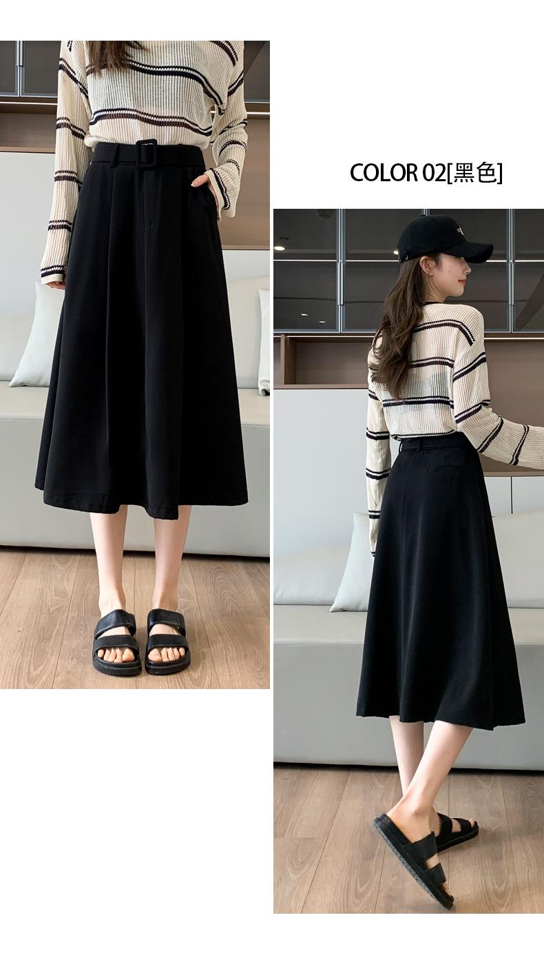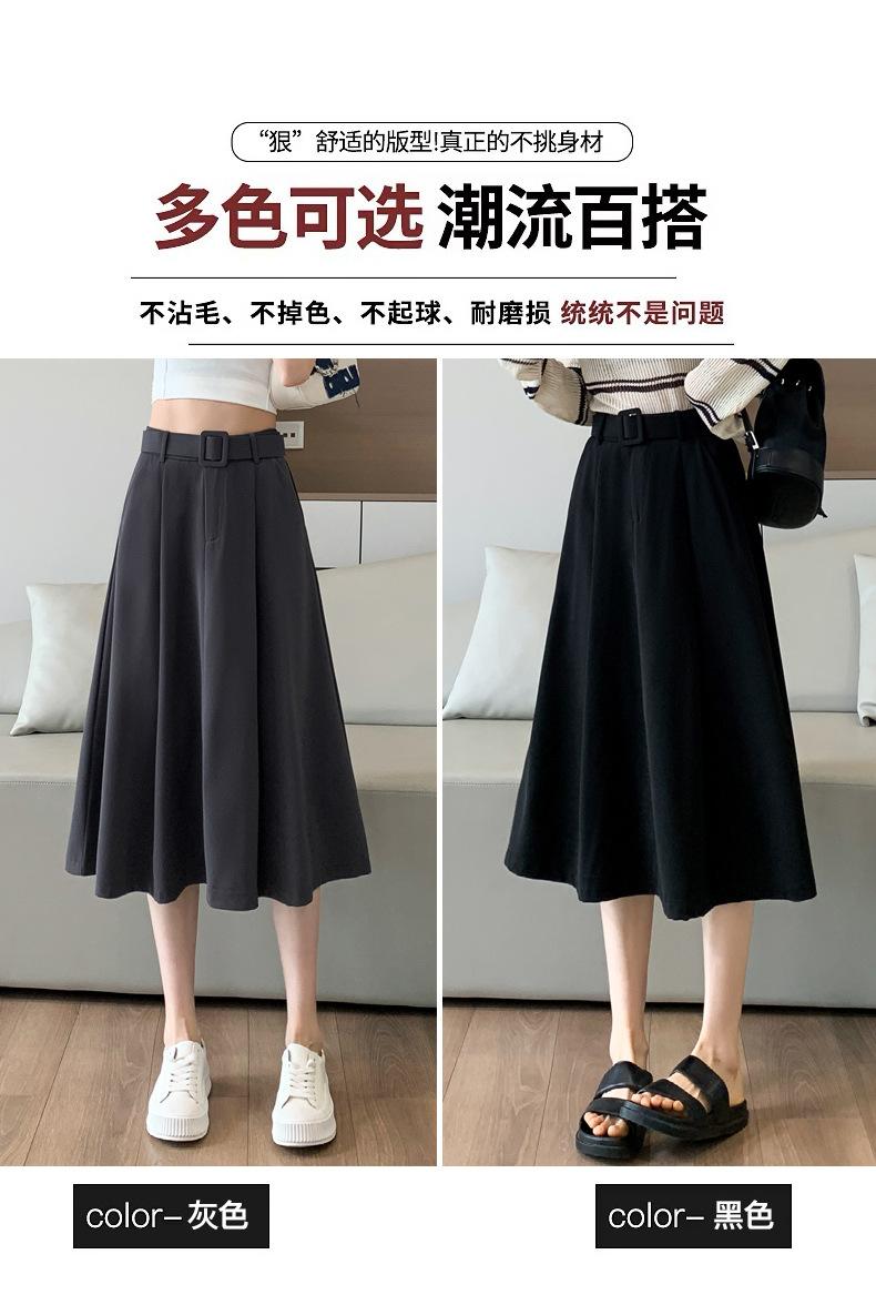 Falda Paraguas A-Line de Largo Medio con Plisados Negros para Mujer de Cintura Alta Verano 2025 Textura Look Adelgazante Caída Traje Falda Midi 2615