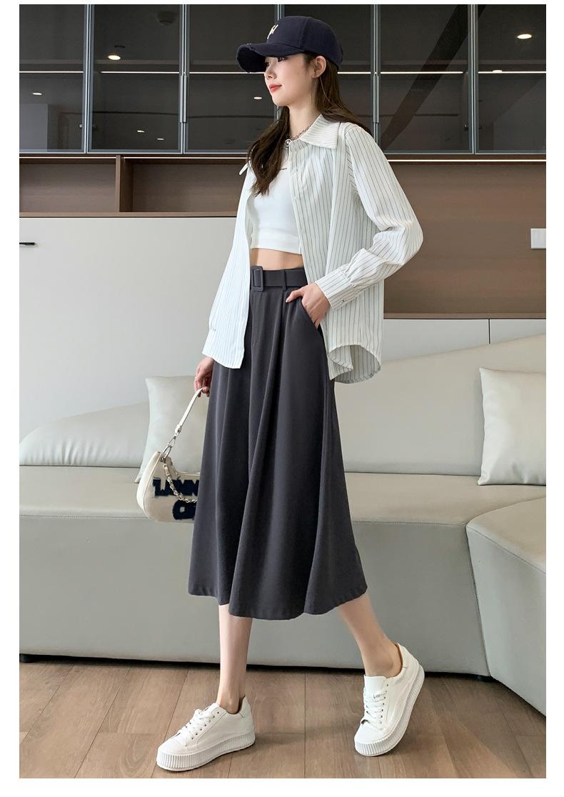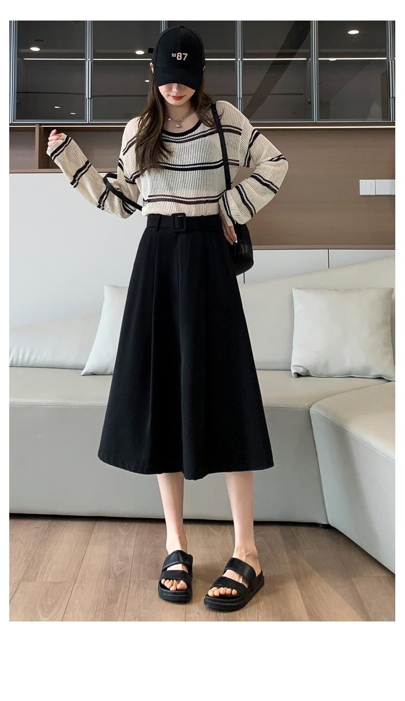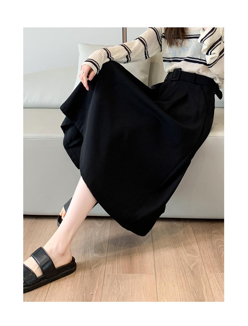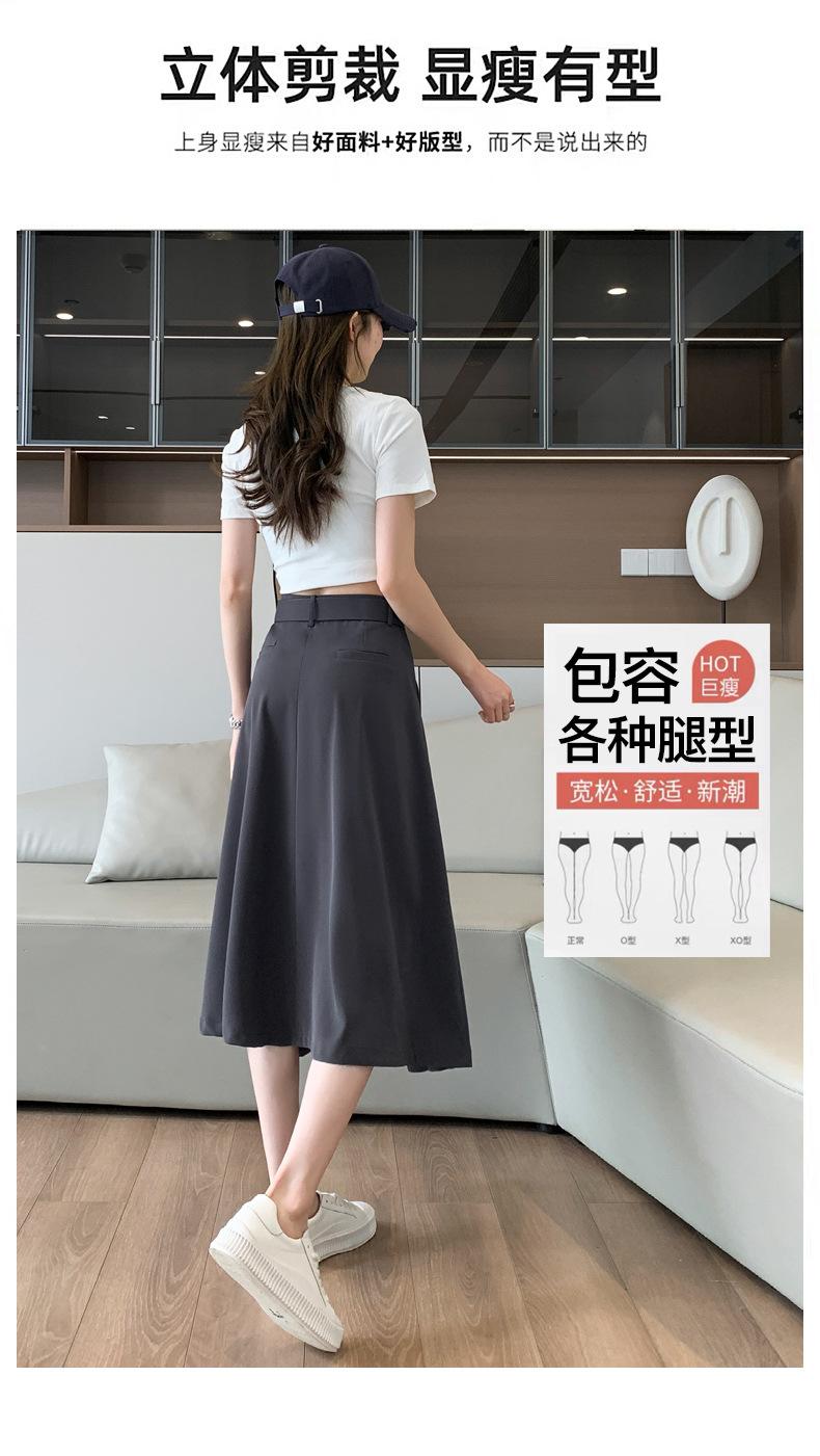 Falda Paraguas A-Line de Largo Medio con Plisados Negros para Mujer de Cintura Alta Verano 2025 Textura Look Adelgazante Caída Traje Falda Midi 2615