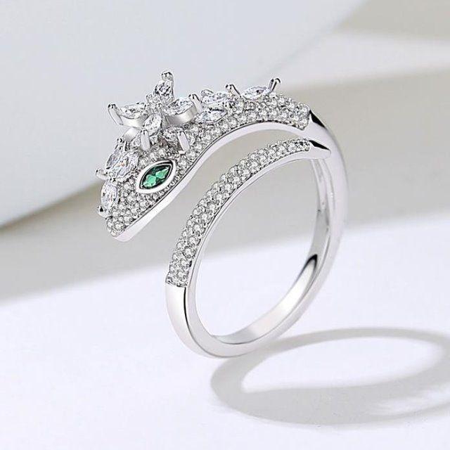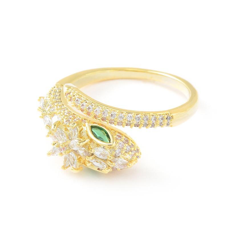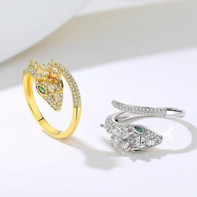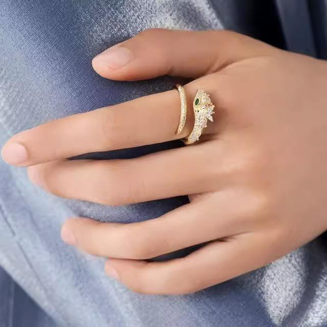 Nuevo anillo abierto transfronterizo con forma de serpiente y circonita de corona, dulce y genial anillo de dedo índice con forma de serpiente, anillo de cola de chica celebridad de Internet simple
