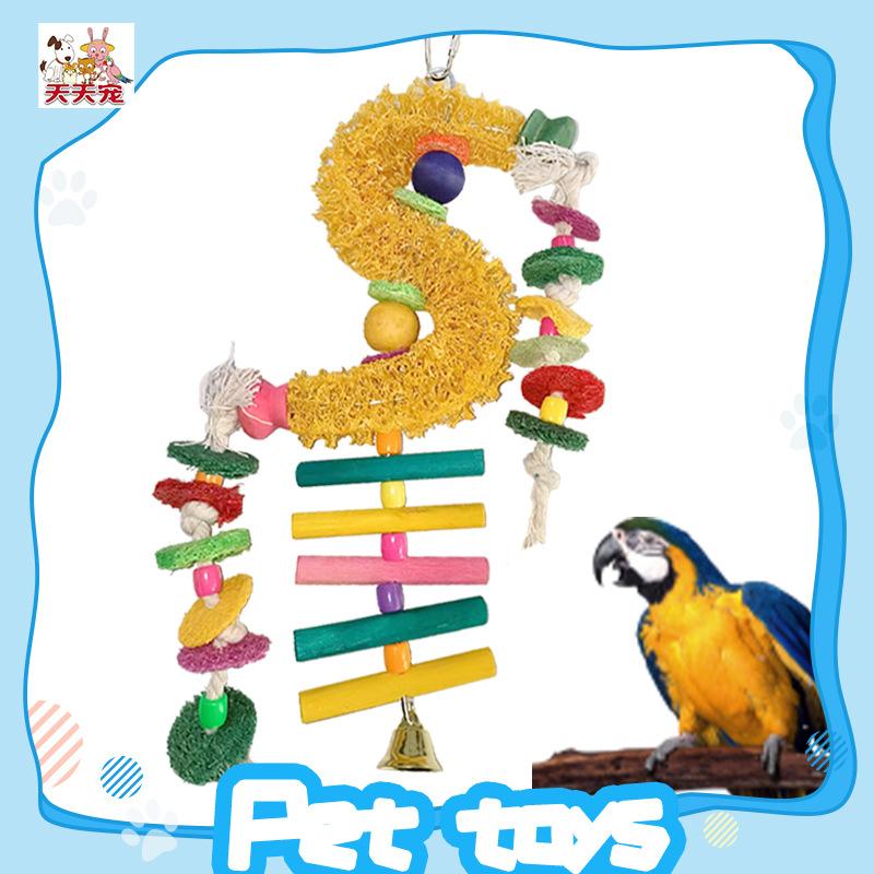 [Descripción del producto]: Este producto está hecho de lufa como material principal, que es resistente al desgaste, de colores brillantes y de forma natural. Es adecuado para que todo tipo de loros medianos mastiquen, piquen y trepen para hacer ejercicio.