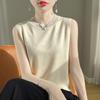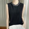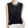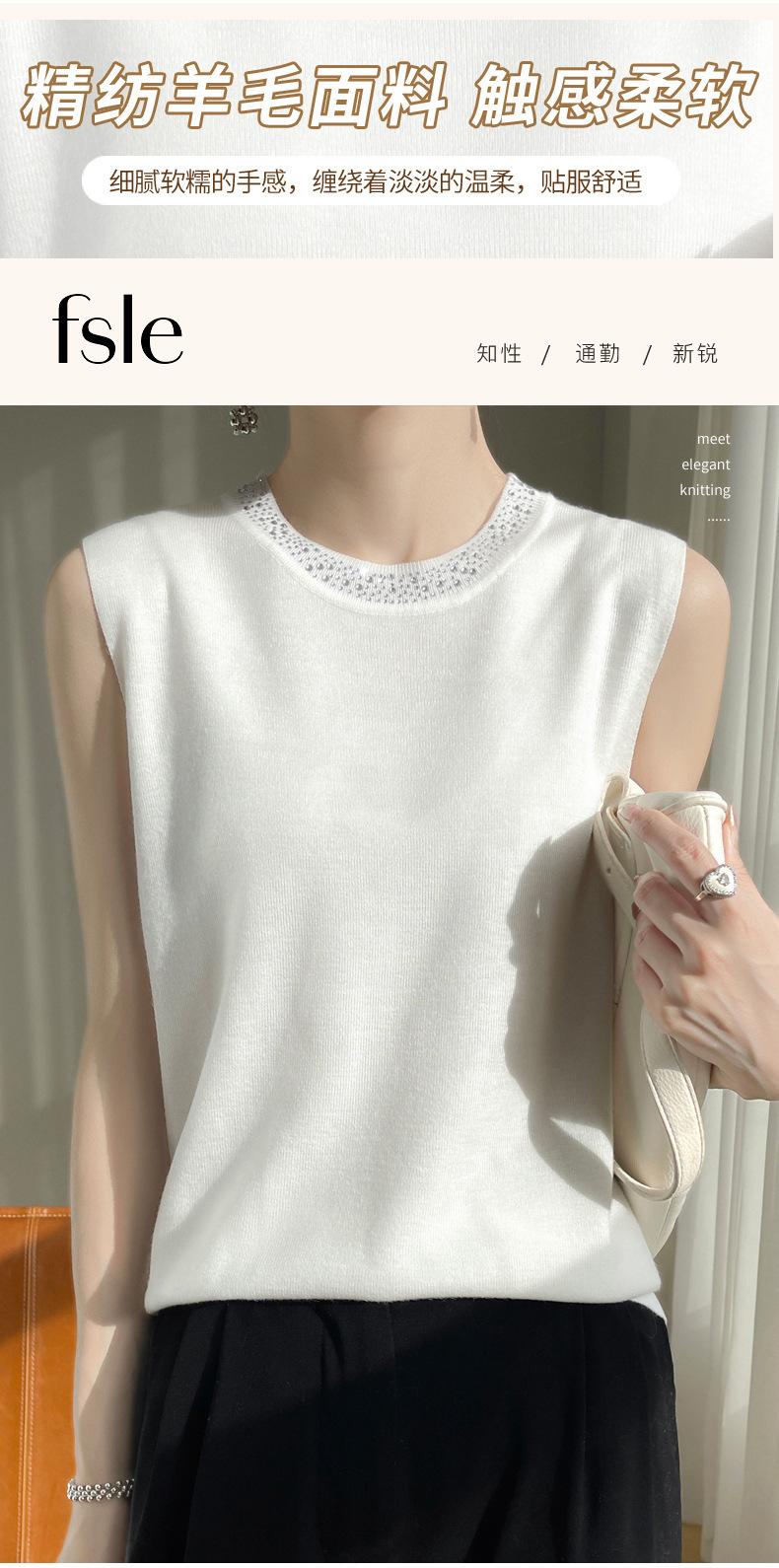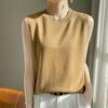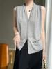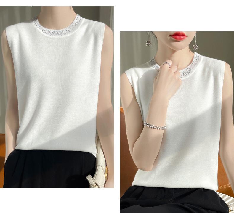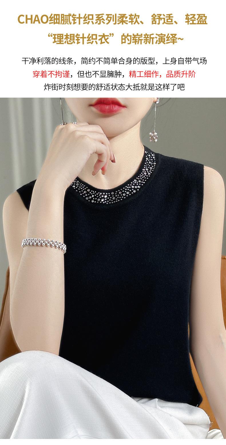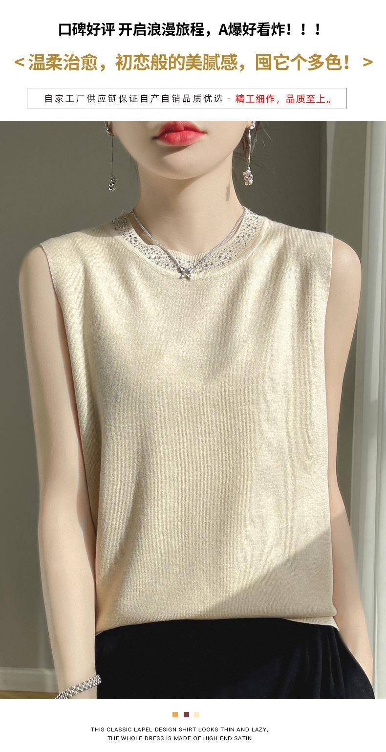 Chaleco informal de lana peinada de moda para mujer, top sin mangas de primavera y verano con cuello redondo y base interior de punto con tirantes de diamante.