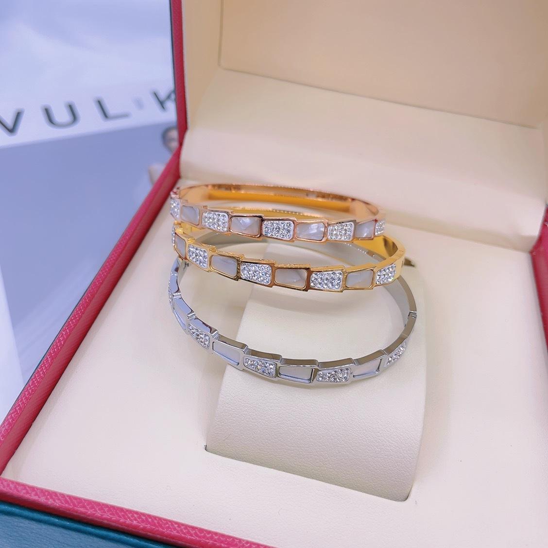 Pulsera Weierya 2021 nueva hueso de serpiente diamante concha blanca acero de titanio pulsera de moda nácar blanco serpiente pulsera de oro rosa de 18K¥15.5Compre ya |