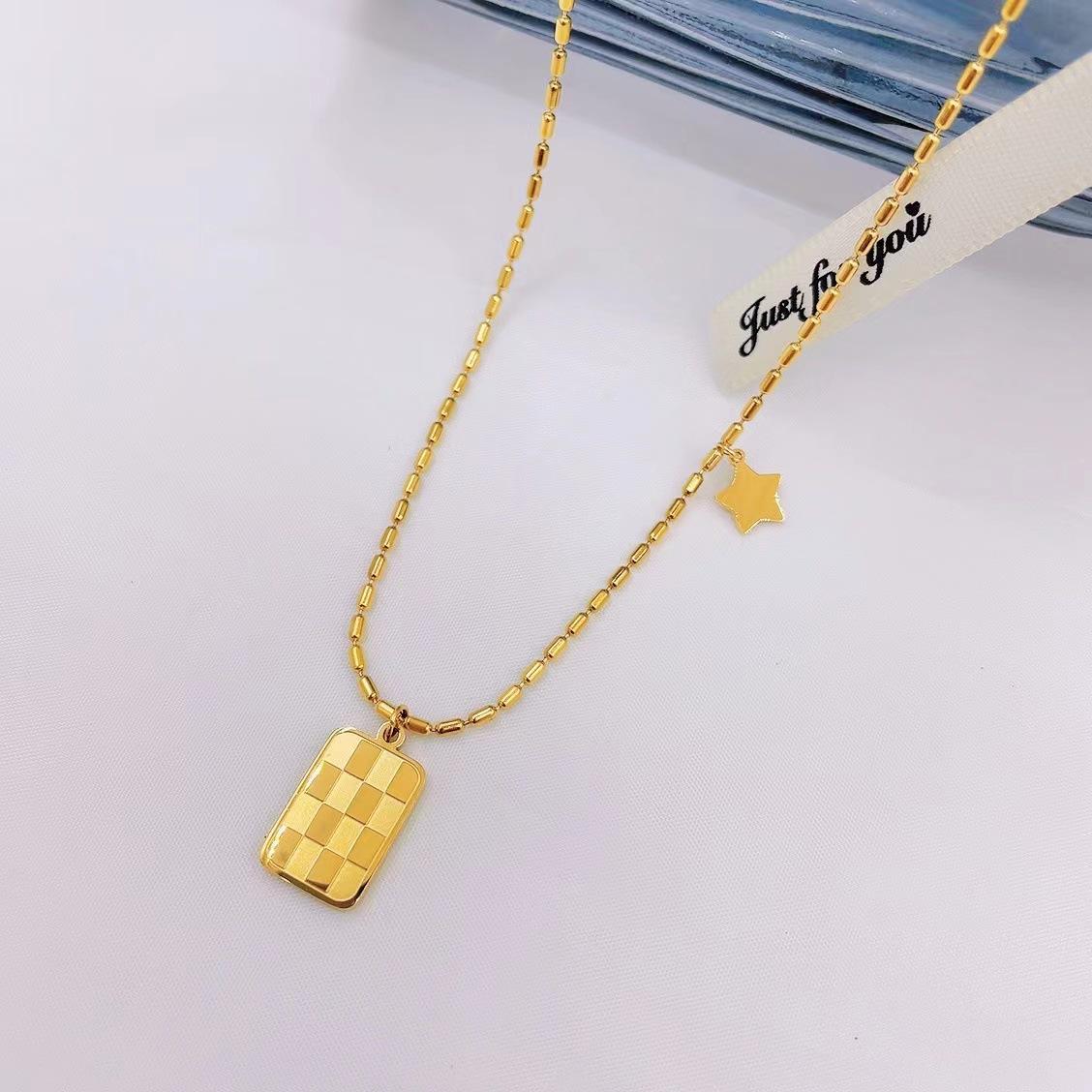 Collar de estrella de marca cuadrada a cuadros cadena de clavícula femenina tendencia ins diseño estilo lujo ligero collar de acero de titanio para celebridad de internet femenino al por mayor¥6Compre ya |