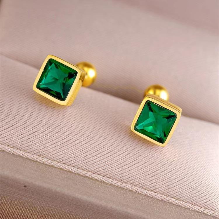 Aretes pequeños de circonita verde para mujer 2022 nuevos pequeños orificios para la oreja dulces de remoción libre acero de titanio chapado en oro aretes para el cartílago¥4.1Compre ya |