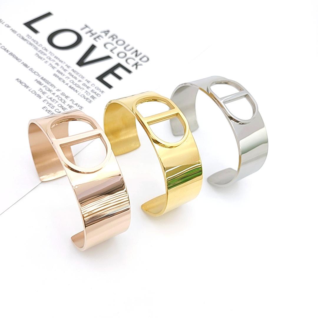 Pulsera coreana de acero de titanio al por mayor de fábrica, moda europea y americana, personalidad, pulsera ancha abierta en forma de C de 18K, tamaño ajustable¥12.5Compre ya |