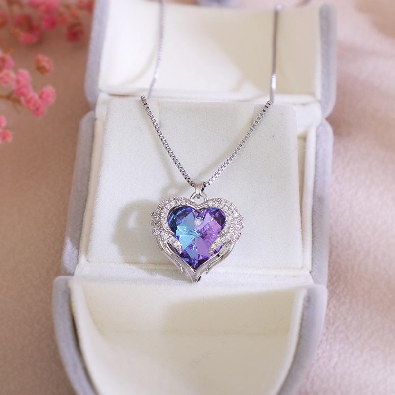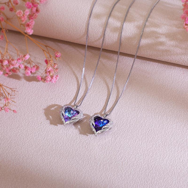 Collar con colgante de microcristales de amor transfronterizos para mujer, joyería clásica de moda de alto sentido, simple, al por mayor, Europa y Estados Unidos
