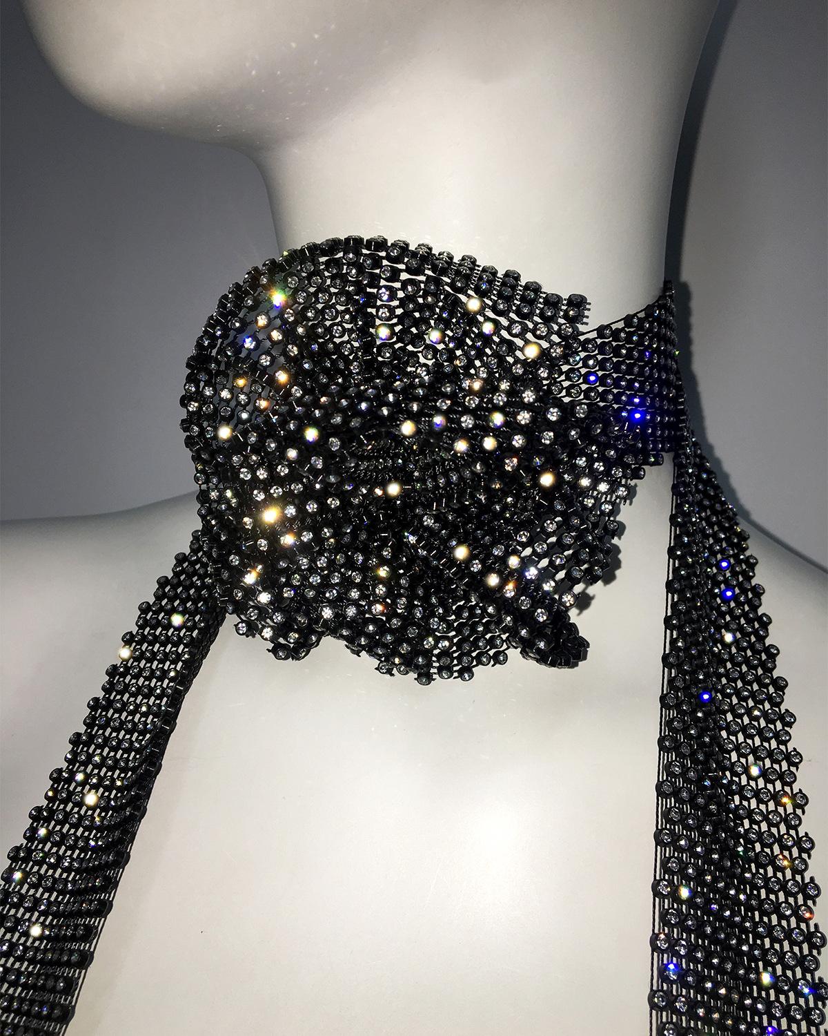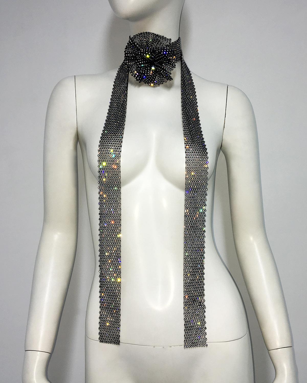 Accesorios de moda transfronterizos Bufanda personalizada europea y americana Camelia cosida a mano con pedrería Estilo dulce y picante Bufanda sencilla con destellos de diamantes