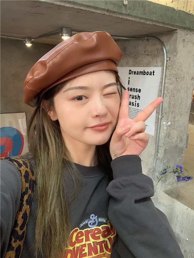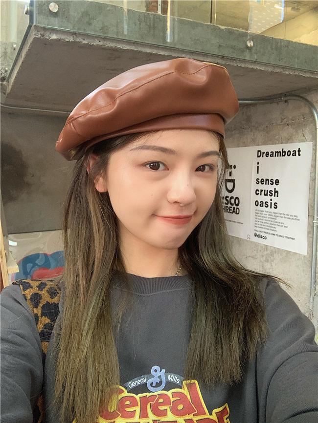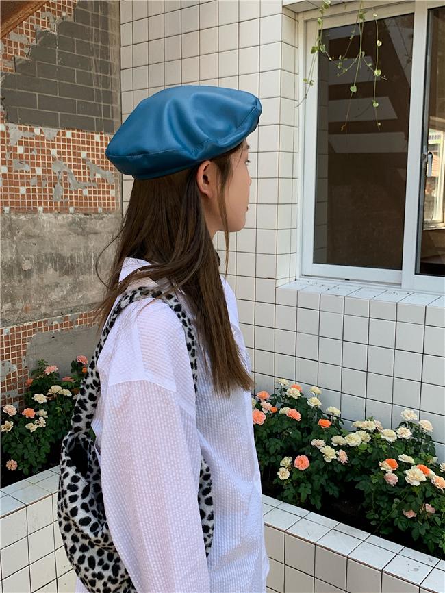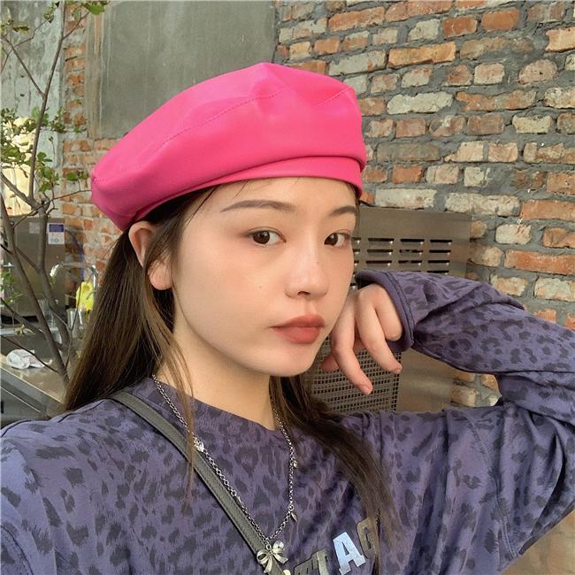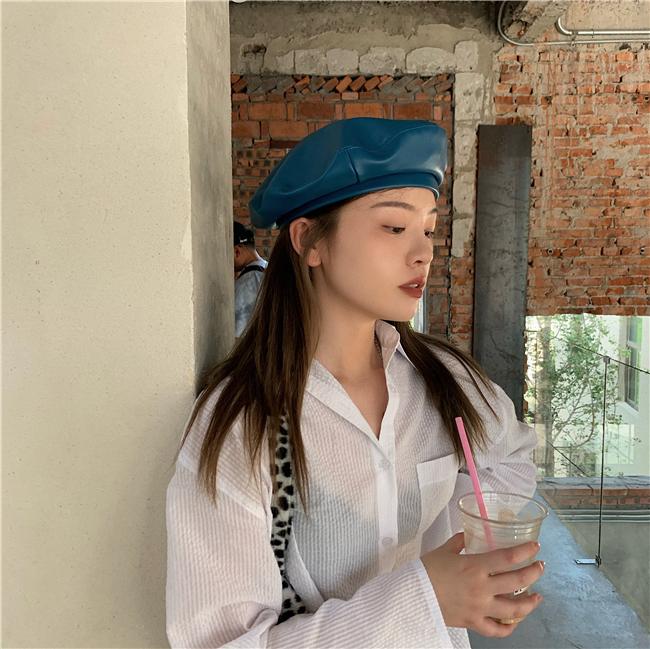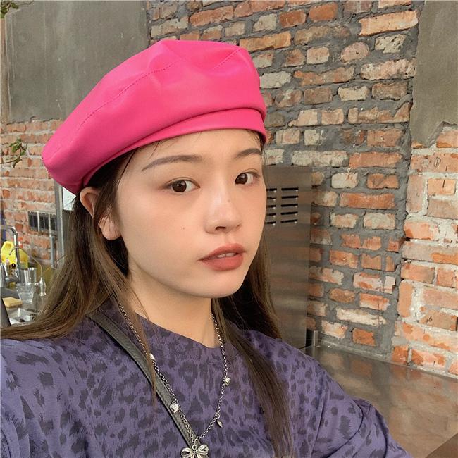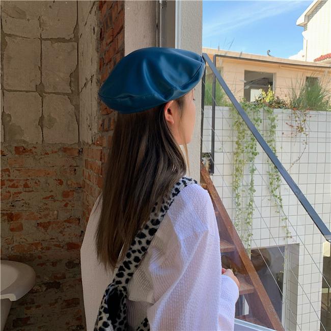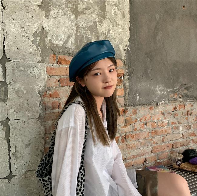 Sombreros nuevos de estilo coreano para mujer, de primavera y otoño, populares en Internet, de cuero sintético, estilo retro, de pintor, boina plana que combina con todo.