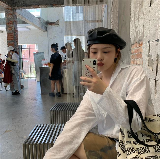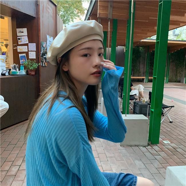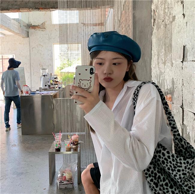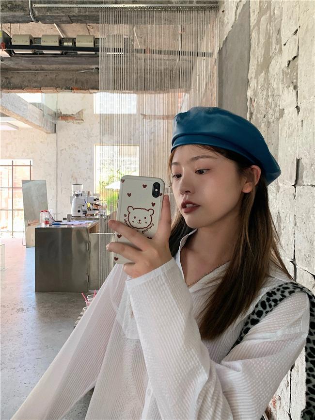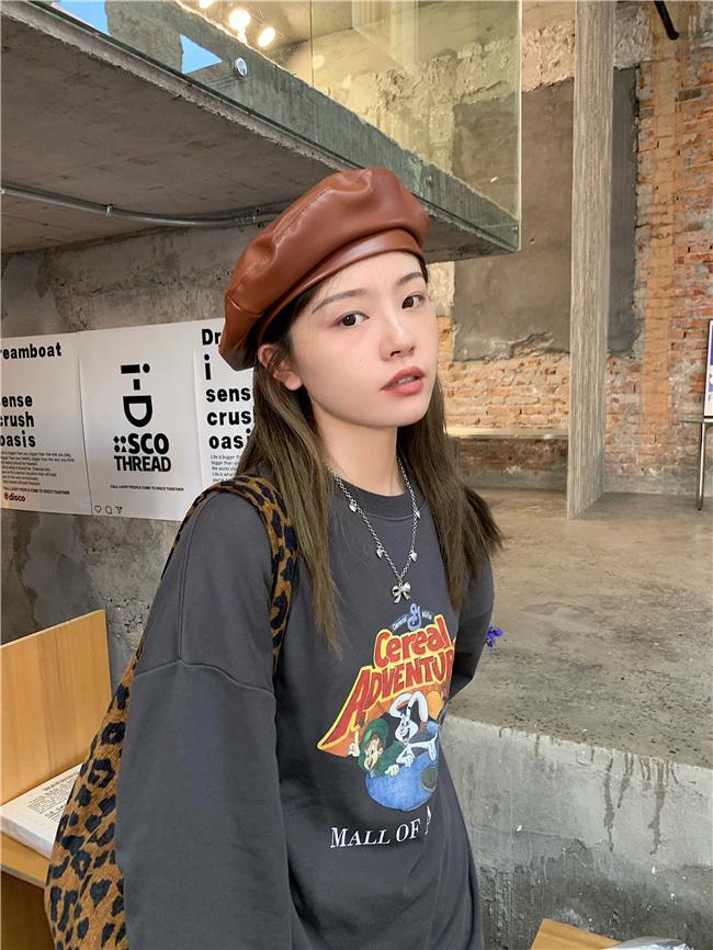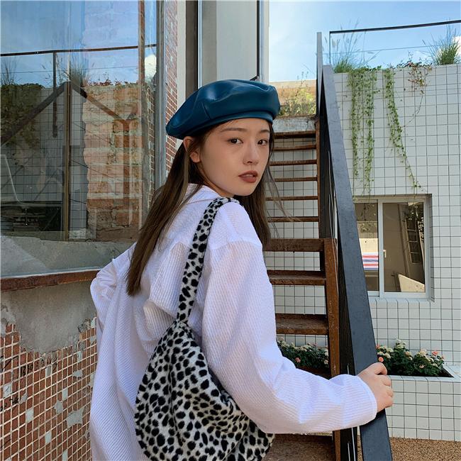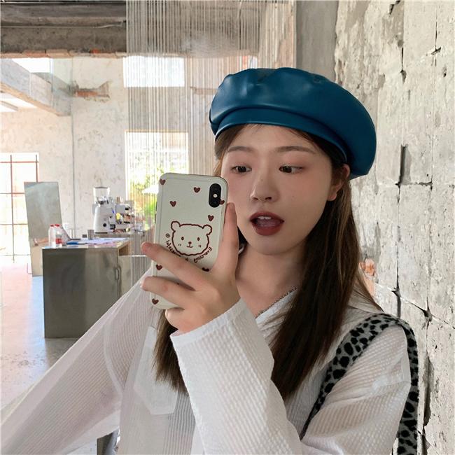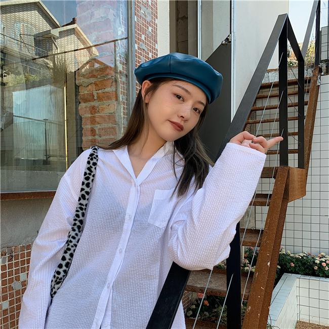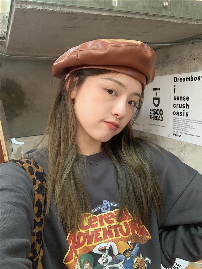 Sombreros nuevos de estilo coreano para mujer, de primavera y otoño, populares en Internet, de cuero sintético, estilo retro, de pintor, boina plana que combina con todo.