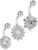 Venta caliente de Amazon: Juego de 3 anillos para el ombligo de acero inoxidable con circonita dorada, joyería para piercing corporal, venta al por mayor