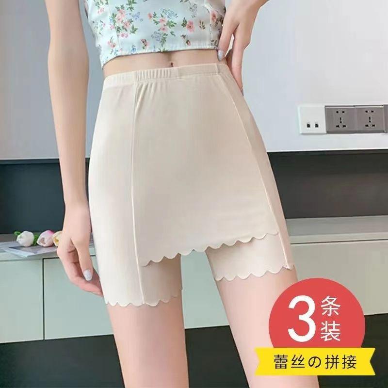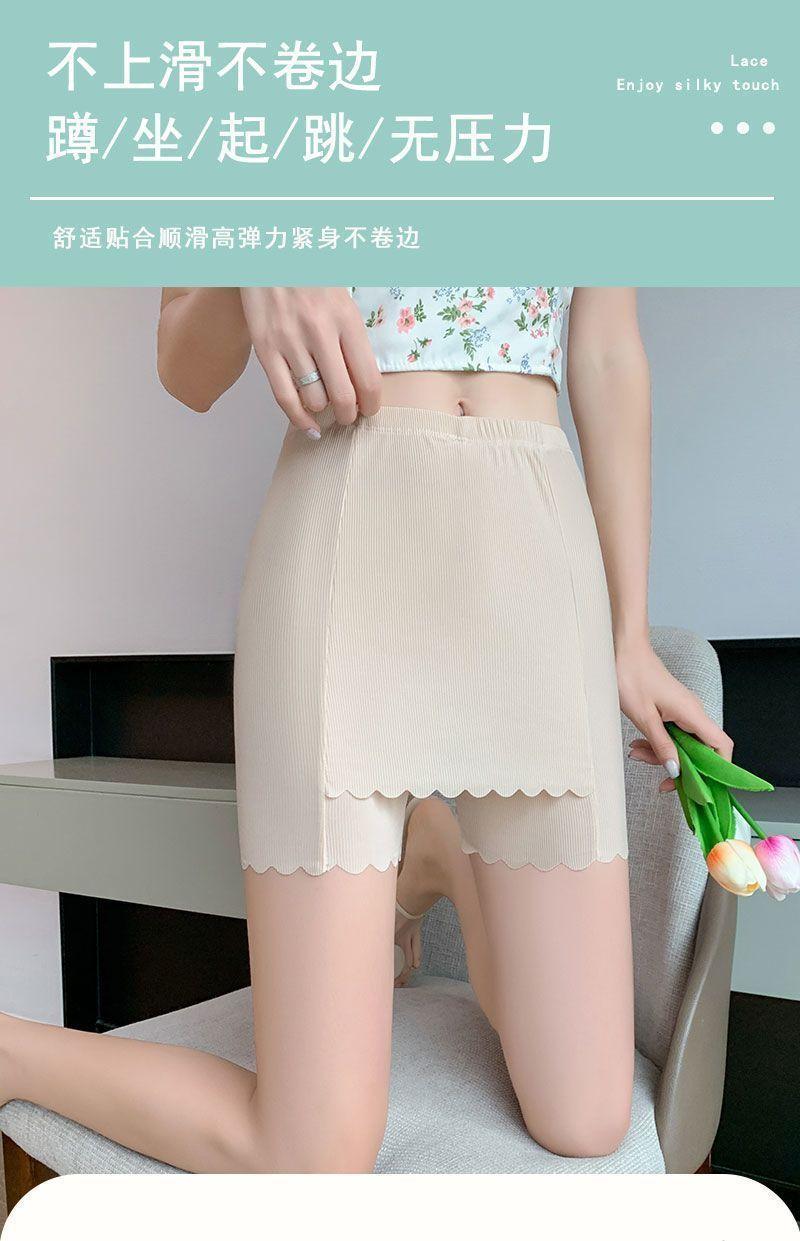 Pantalones de Seguridad para Mujer Verano Delgados Sin Costuras Seda de Hielo Doble Capa Antirozaduras Ligeros No se Enrollan Cubren la Entrepierna Shorts Seguro Ropa Interior para Estudiante
