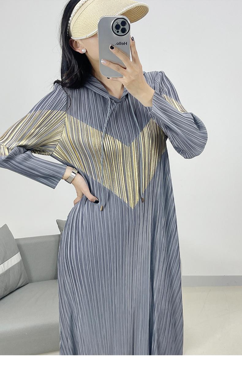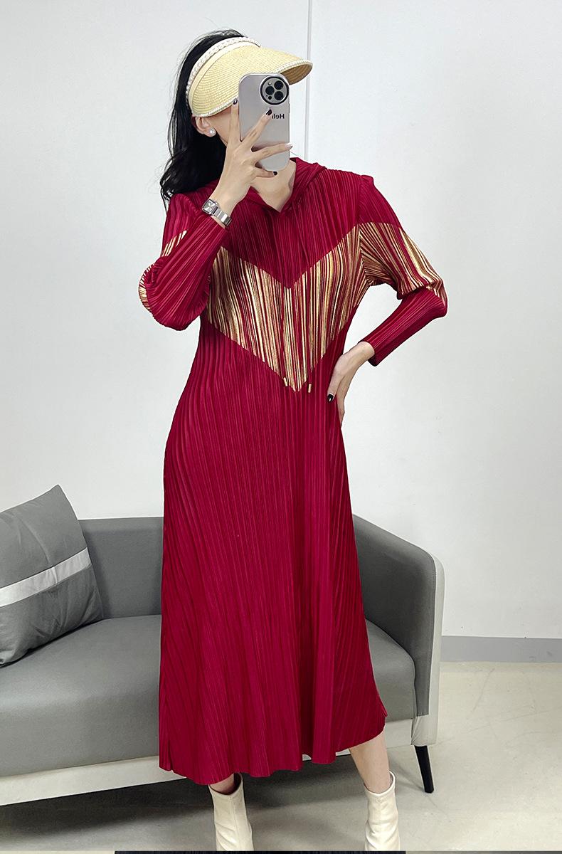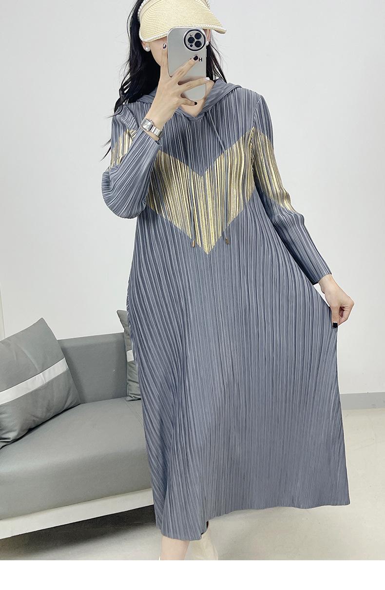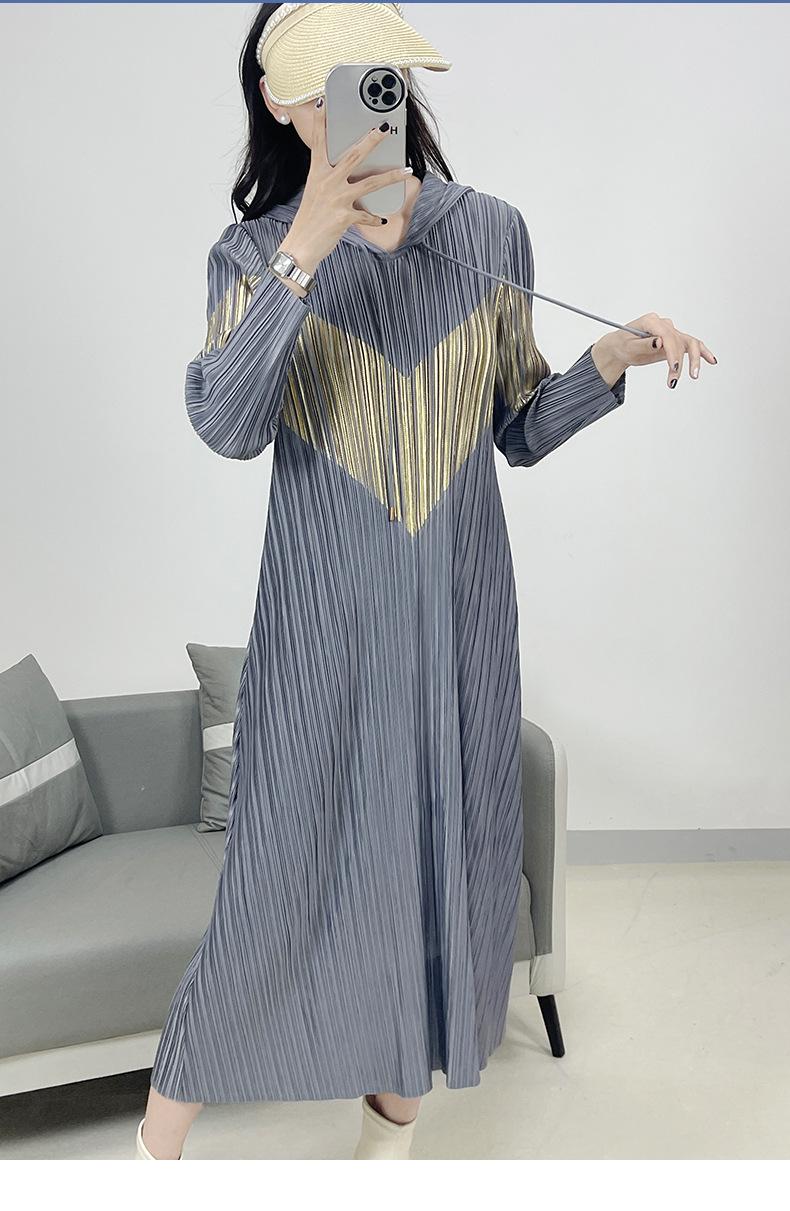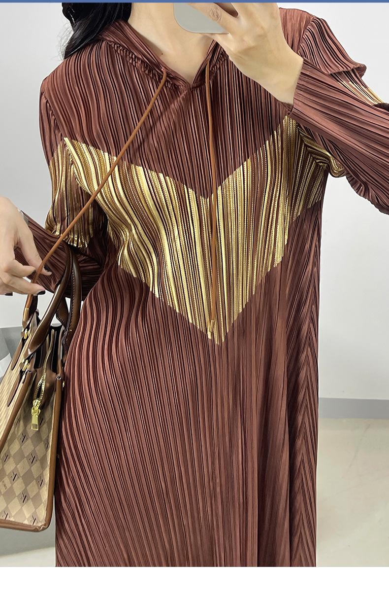 Vestido informal Sanzhai con capucha y pliegues bronceados, nuevo de 2024, para mujer, holgado, elástico, ajustado, adelgazante, plisado, ropa de mujer