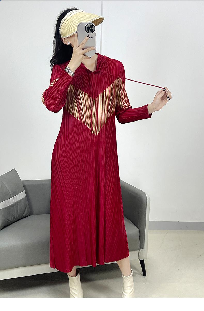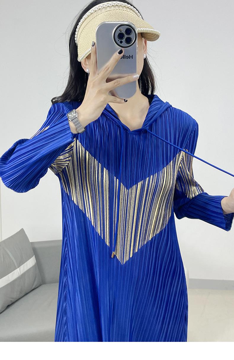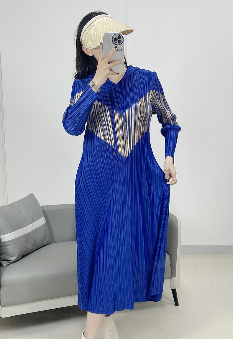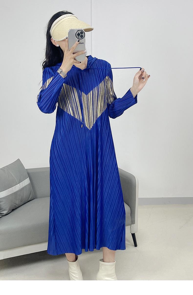 Vestido informal Sanzhai con capucha y pliegues bronceados, nuevo de 2024, para mujer, holgado, elástico, ajustado, adelgazante, plisado, ropa de mujer