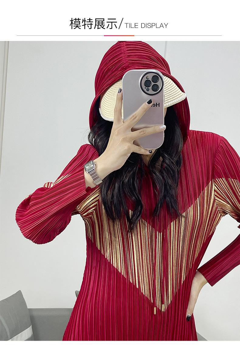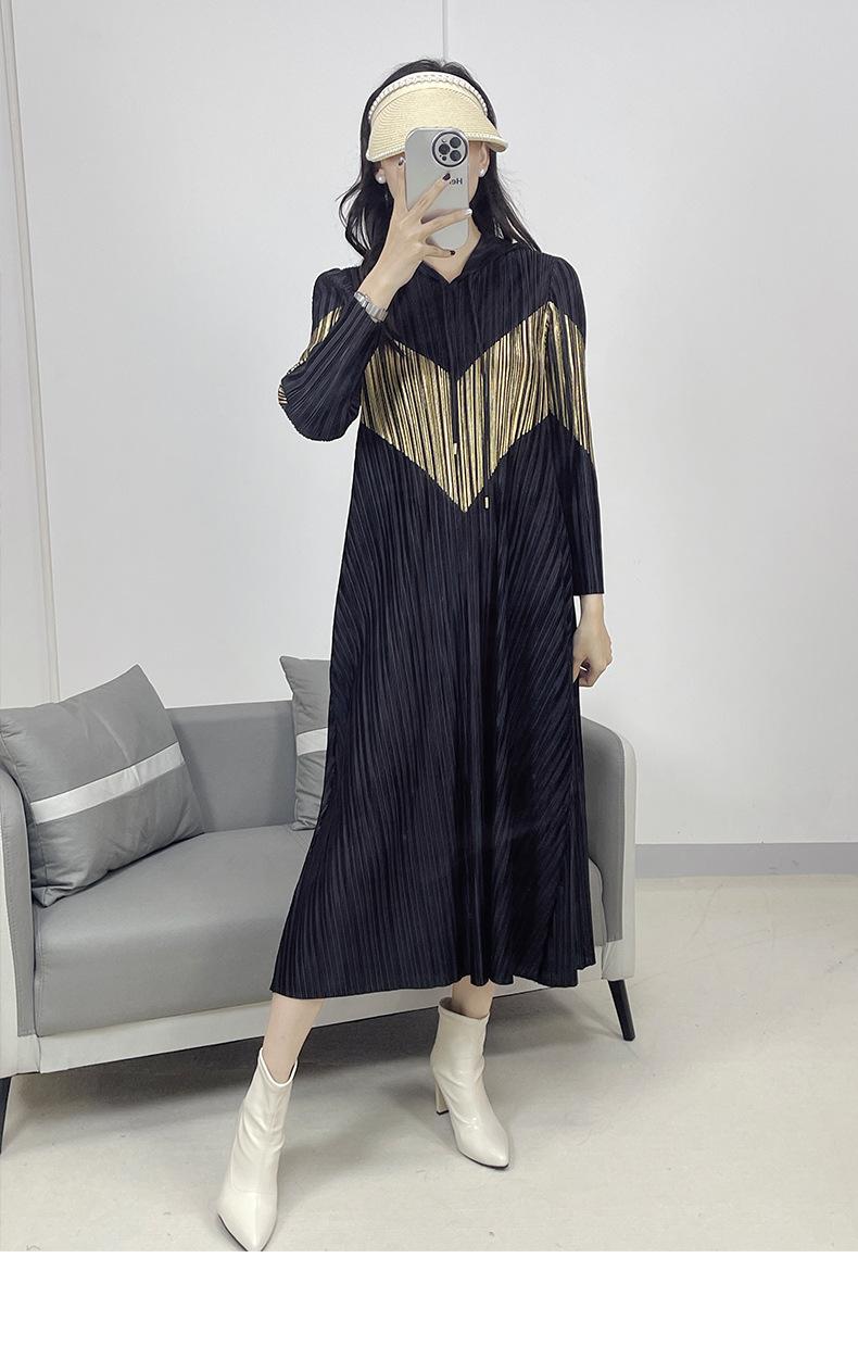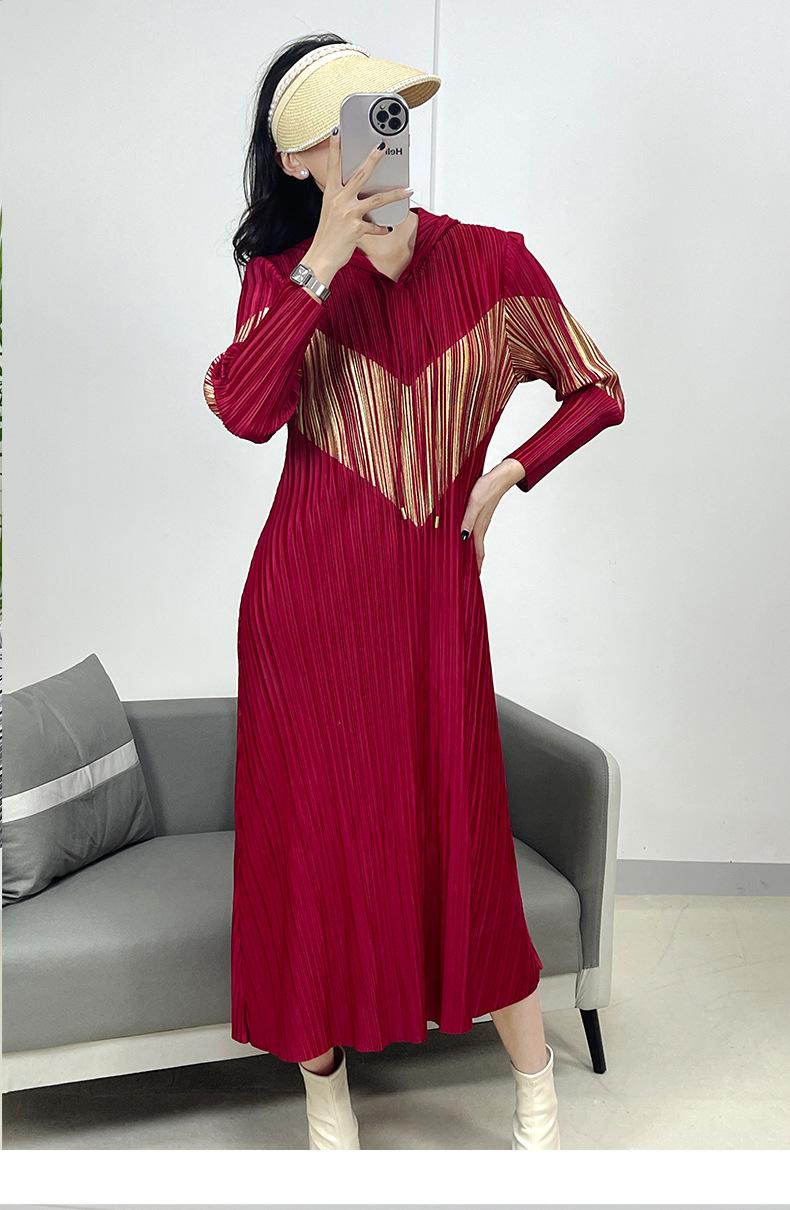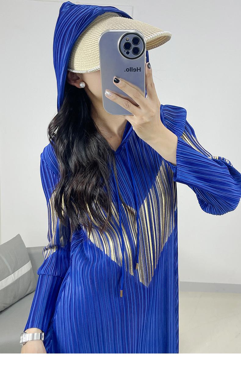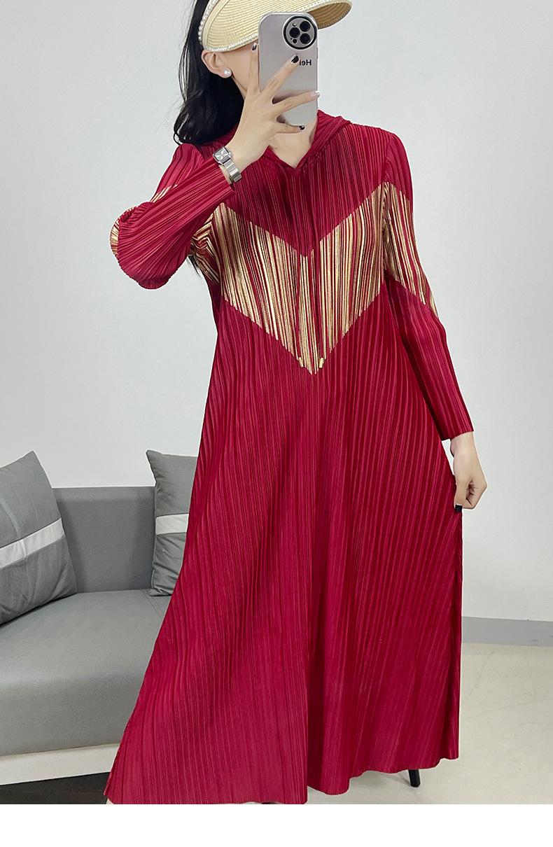 Vestido informal Sanzhai con capucha y pliegues bronceados, nuevo de 2024, para mujer, holgado, elástico, ajustado, adelgazante, plisado, ropa de mujer