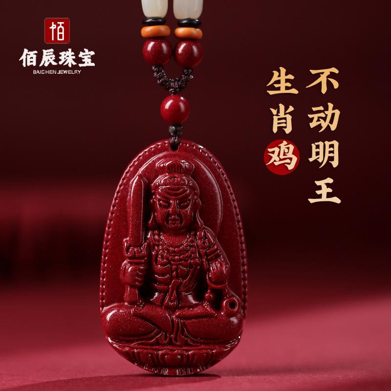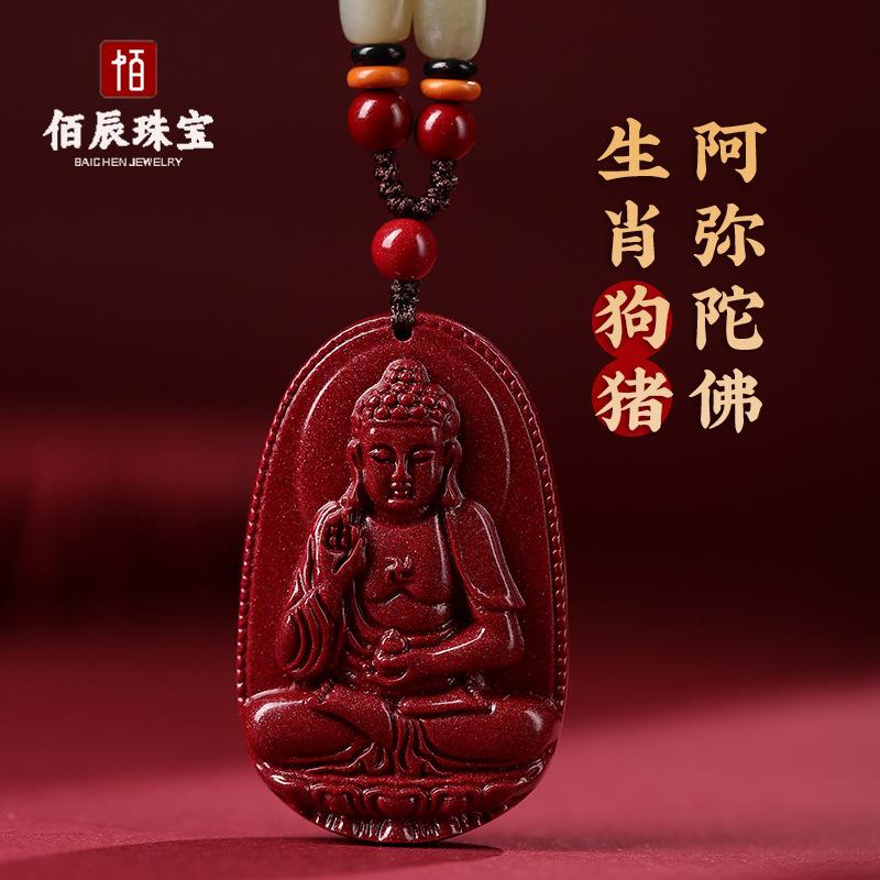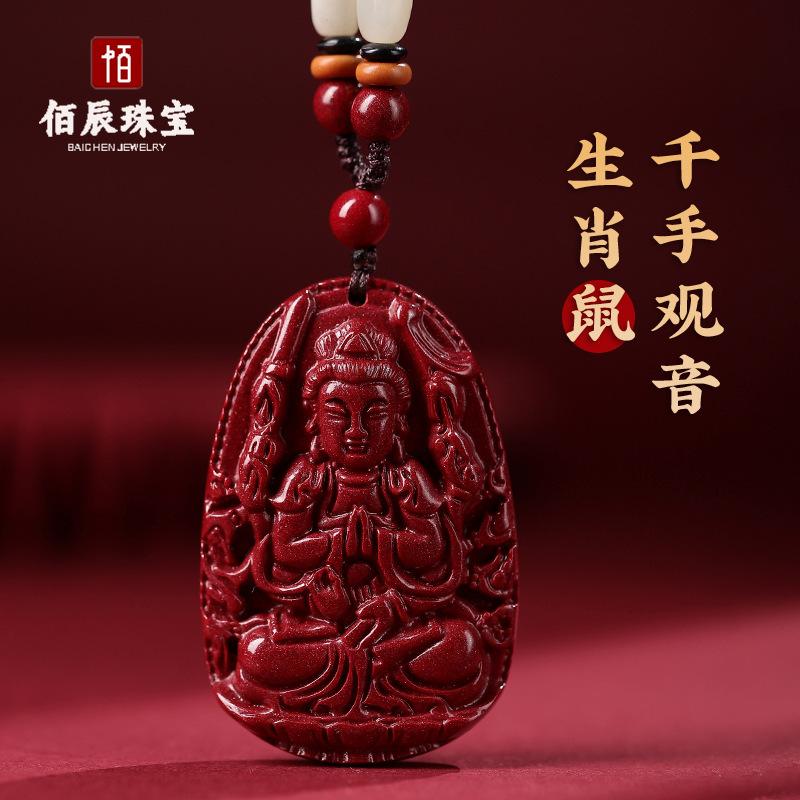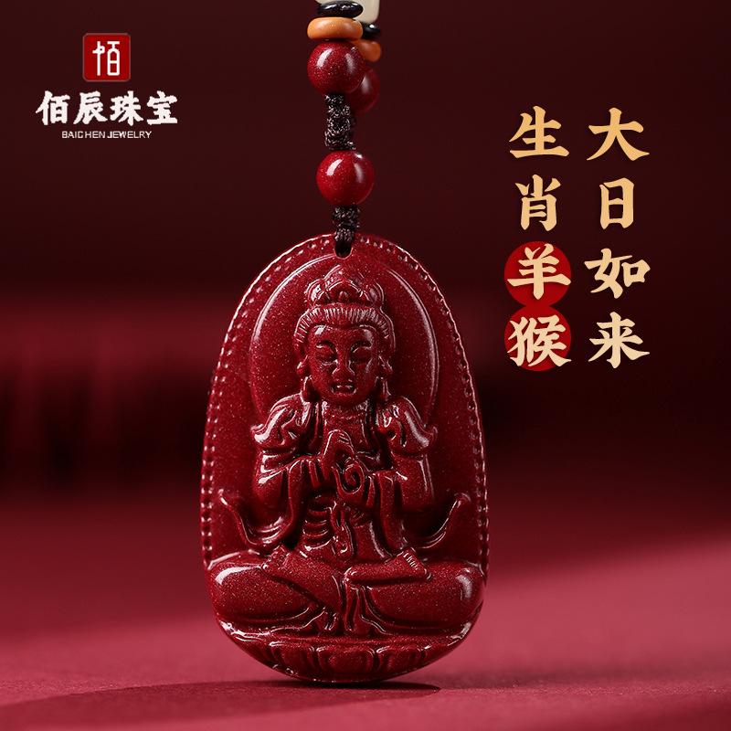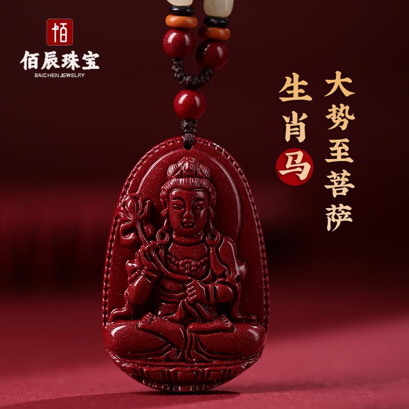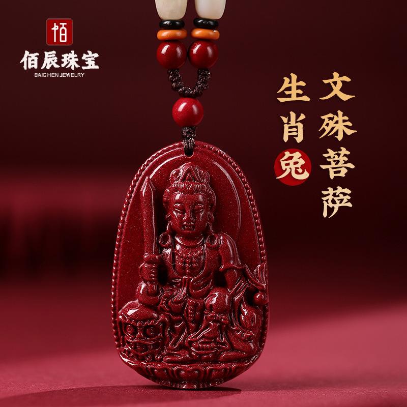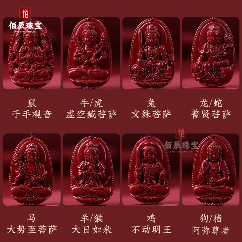 Colgante de Buda Guanyin de Cinabrio Natural para Hombre, Doce Signos del Zodíaco Manjushri Bodhisattva, Amuleto Femenino Colgante de Collar