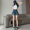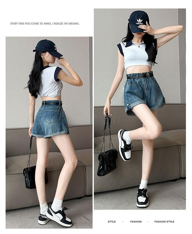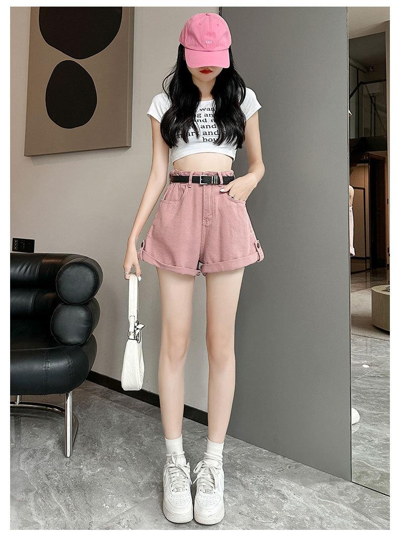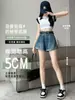 Pantalones cortos de mezclilla para mujer, verano 2023, nuevos, finos, de cintura alta, a la moda, adelgazantes, sueltos, con corte A, pantalones cortos de pierna ancha