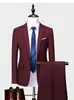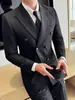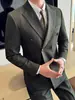 Traje informal de negocios para hombre, traje formal de dos piezas con doble botonadura, traje ajustado de rayas oscuras marrones.