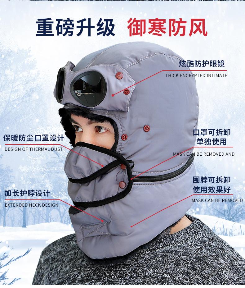 Pink-goggles Lei Feng cap, Yellow-goggles Lei Feng cap, Khaki-goggles Lei Feng cap, Grey-goggles Lei Feng cap