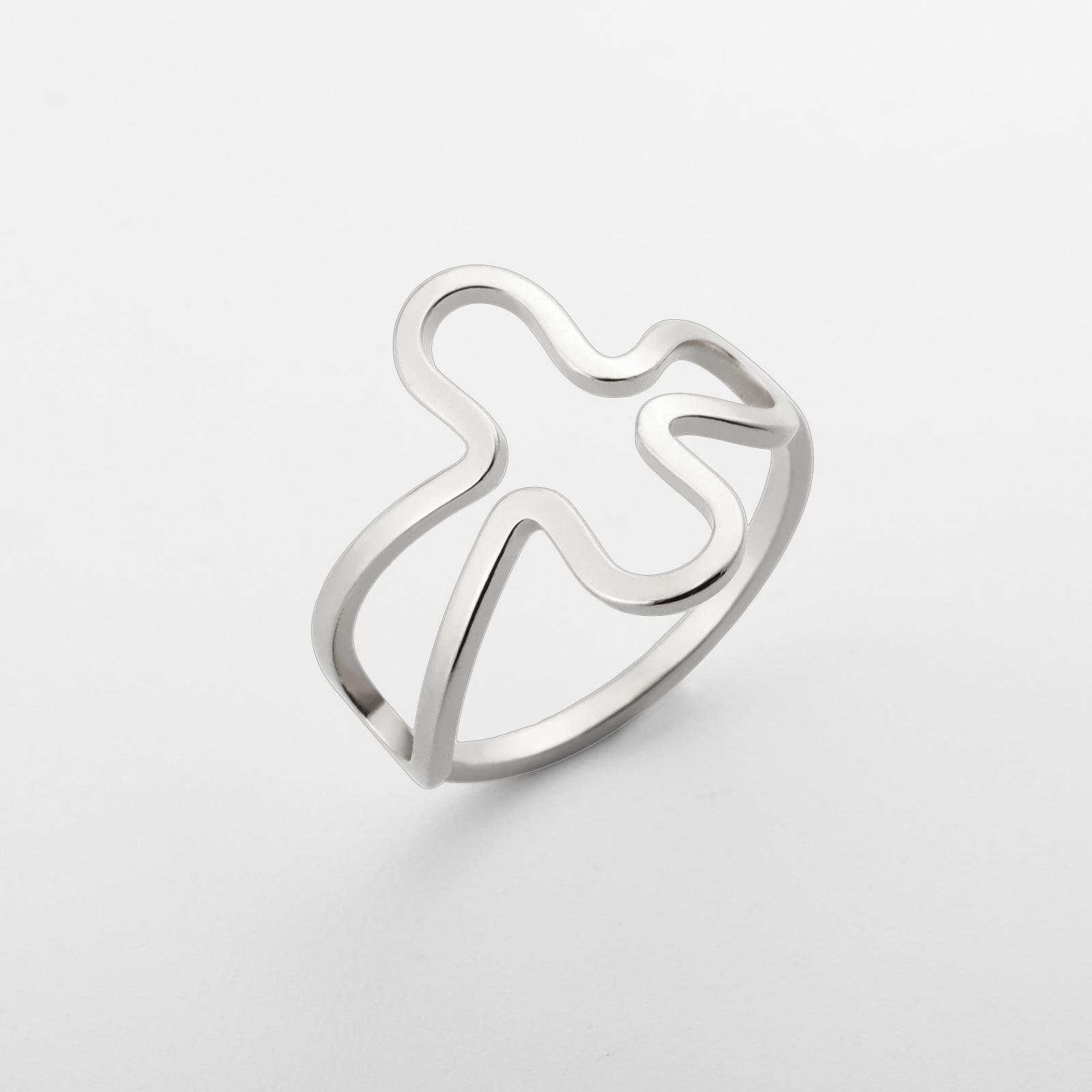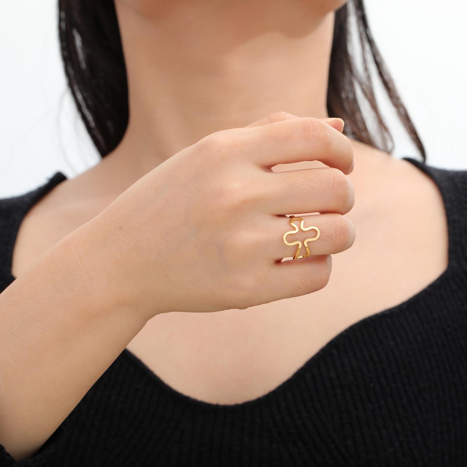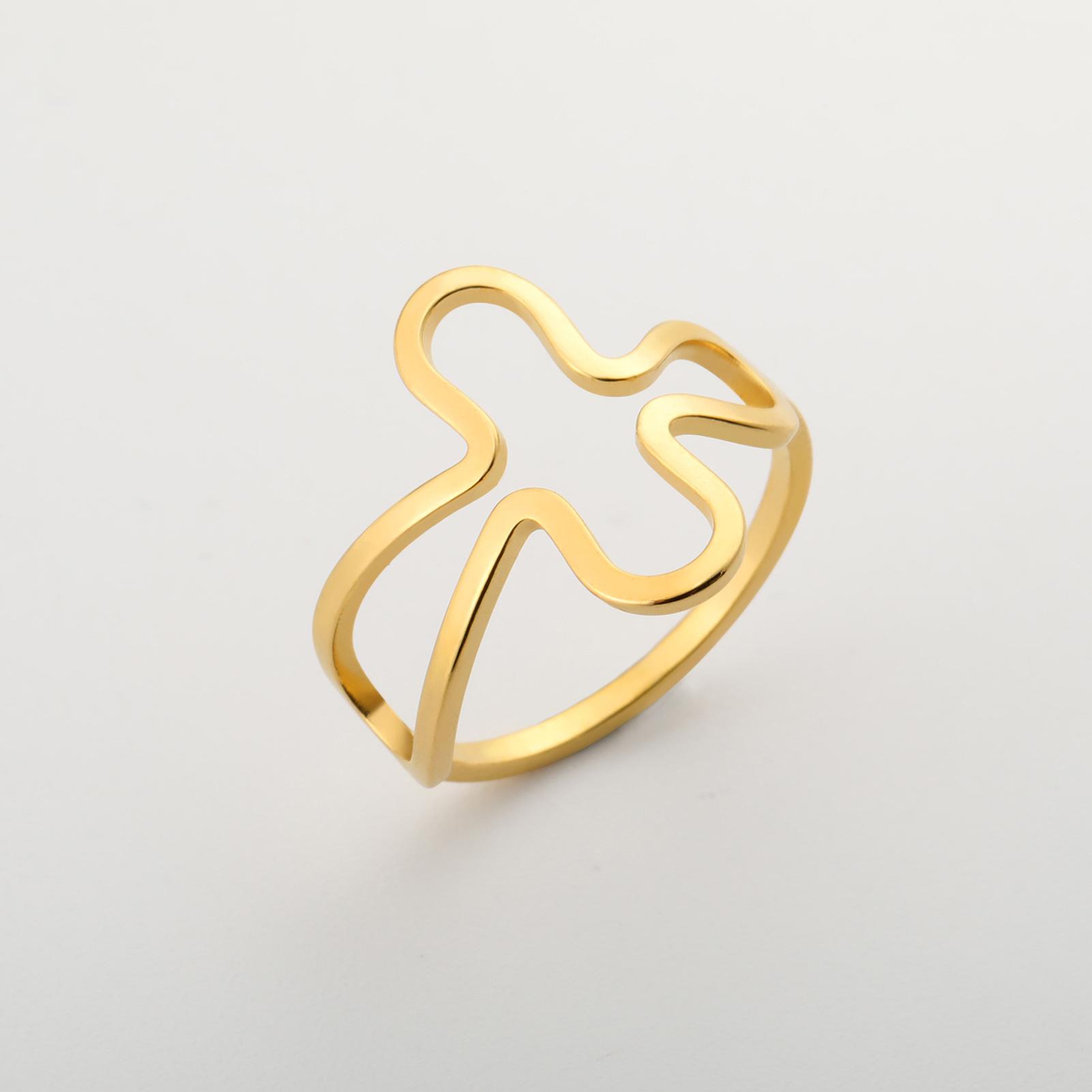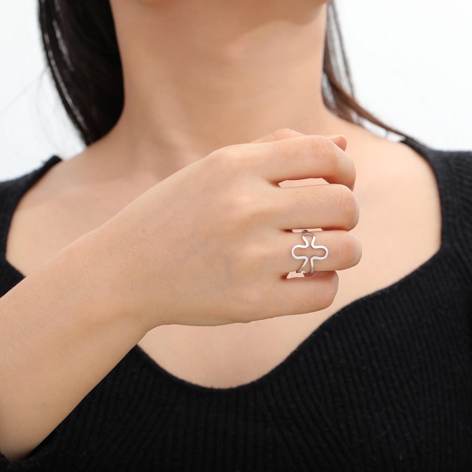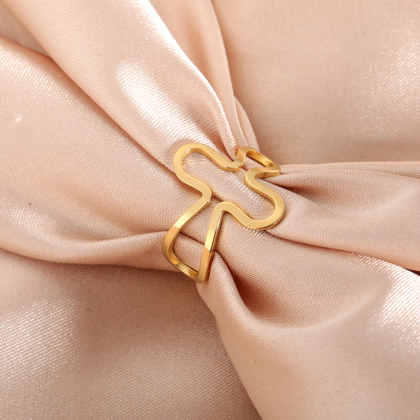 Personalized geometric niche simple hollow cross stainless steel ring couple, Simple
