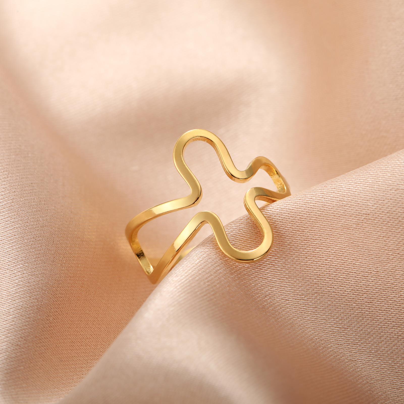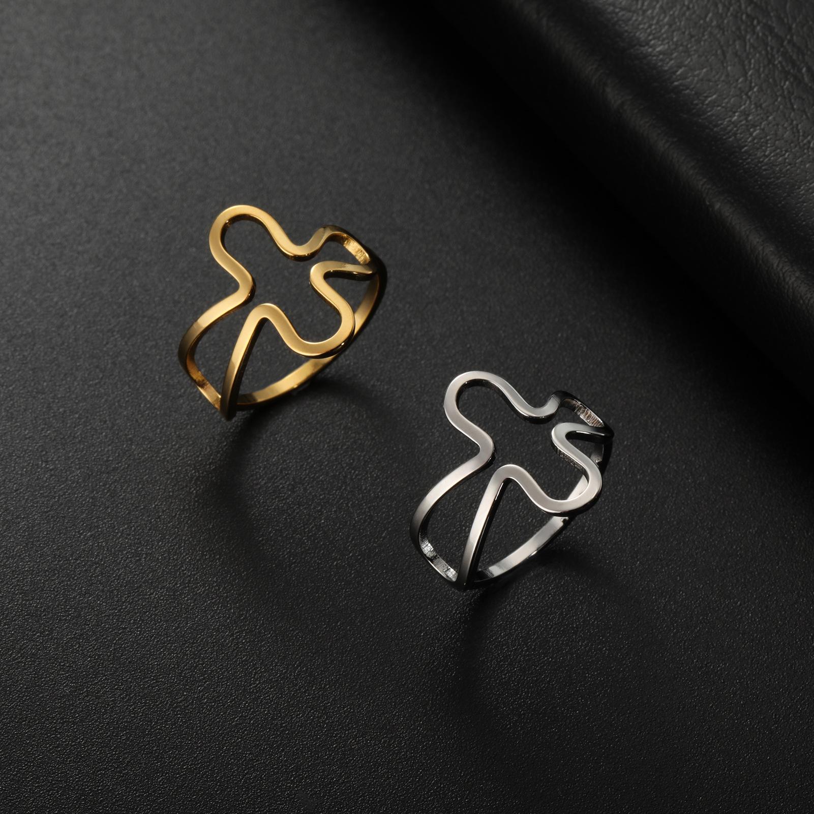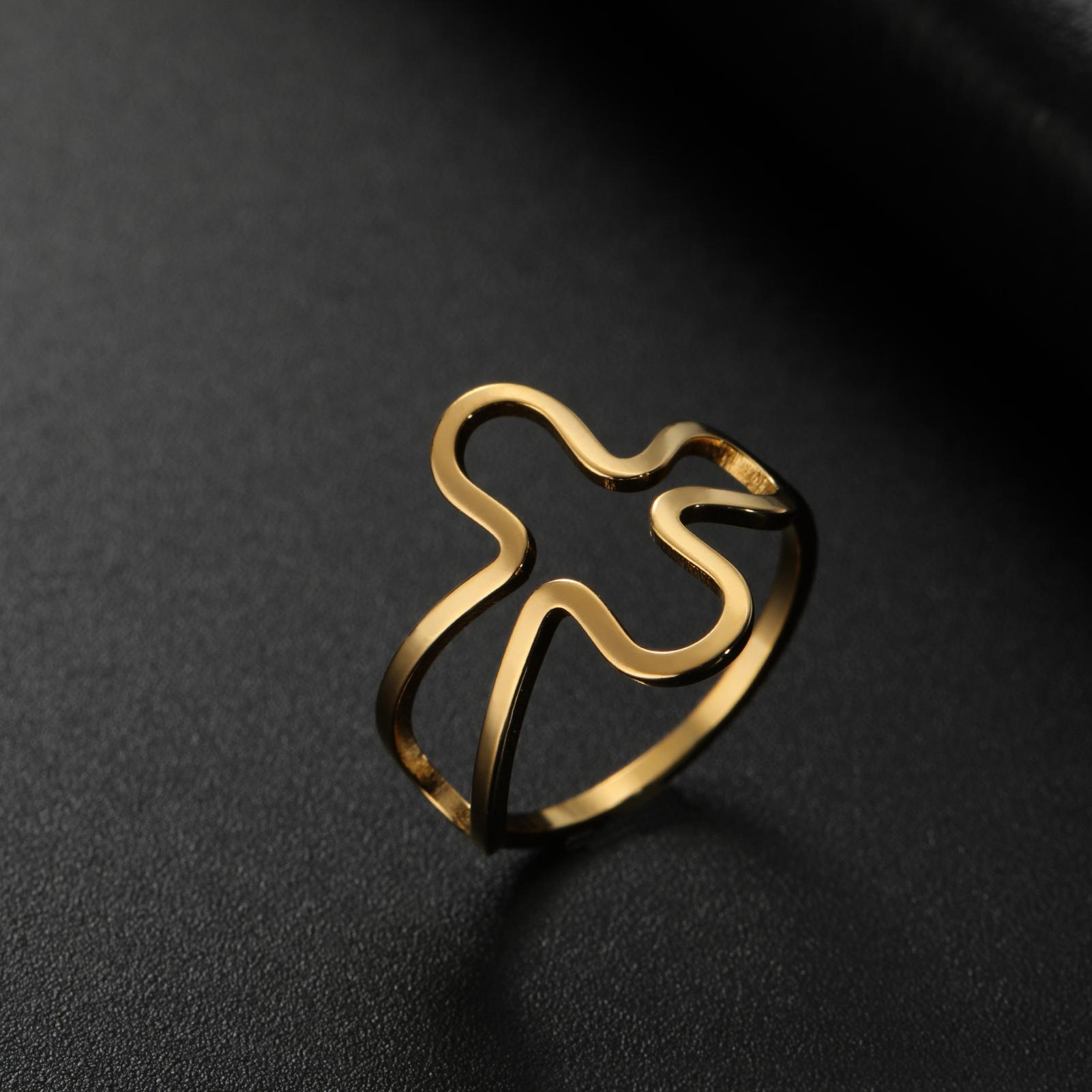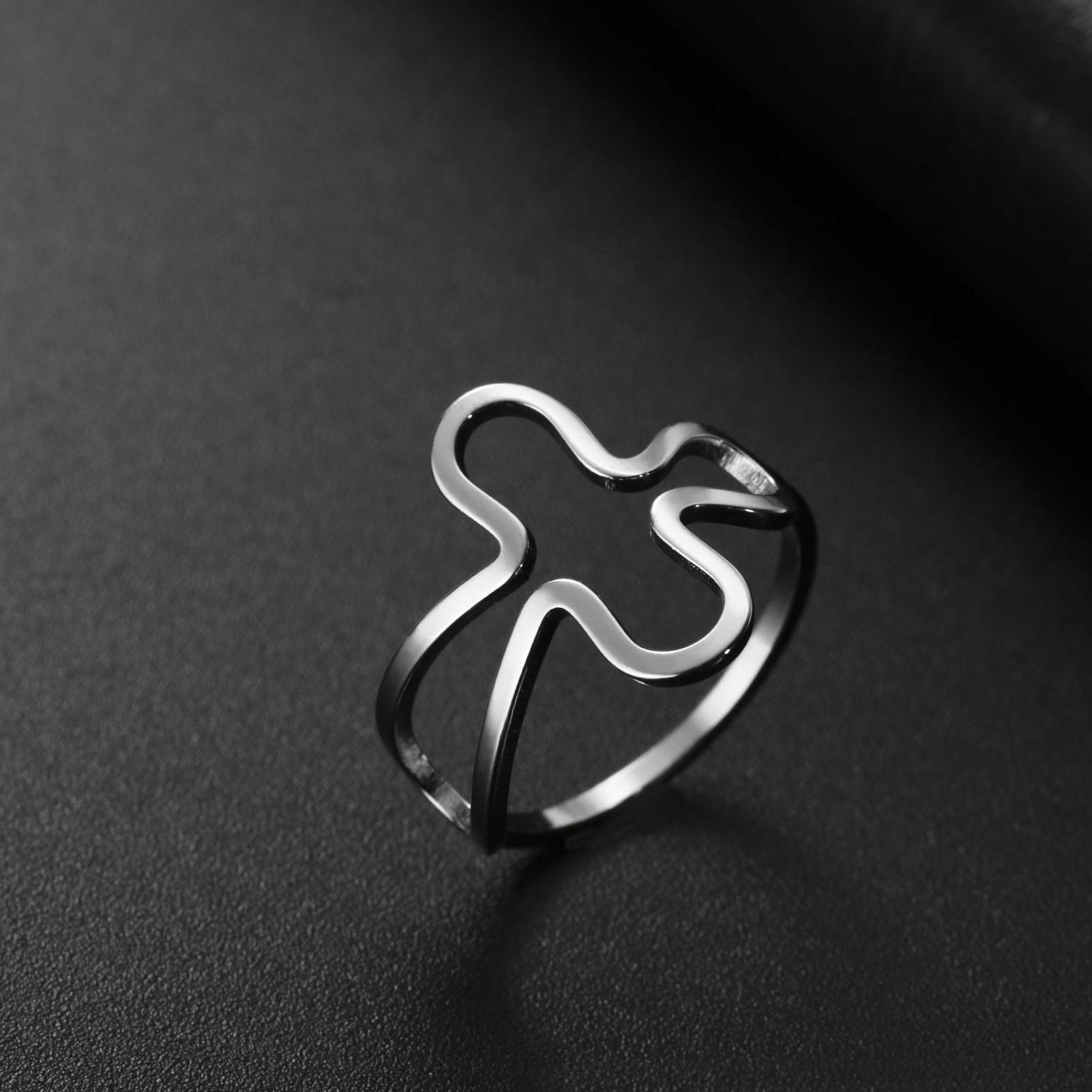 Venta caliente transfronteriza Nuevo anillo de acero de titanio con personalidad nicho geométrico simple cruz hueca anillo de acero inoxidable pareja