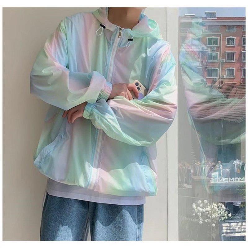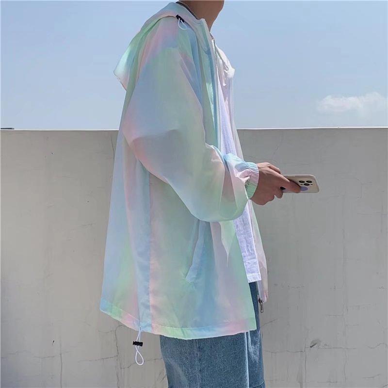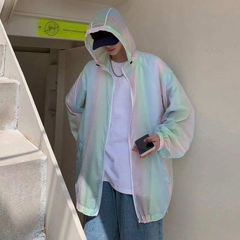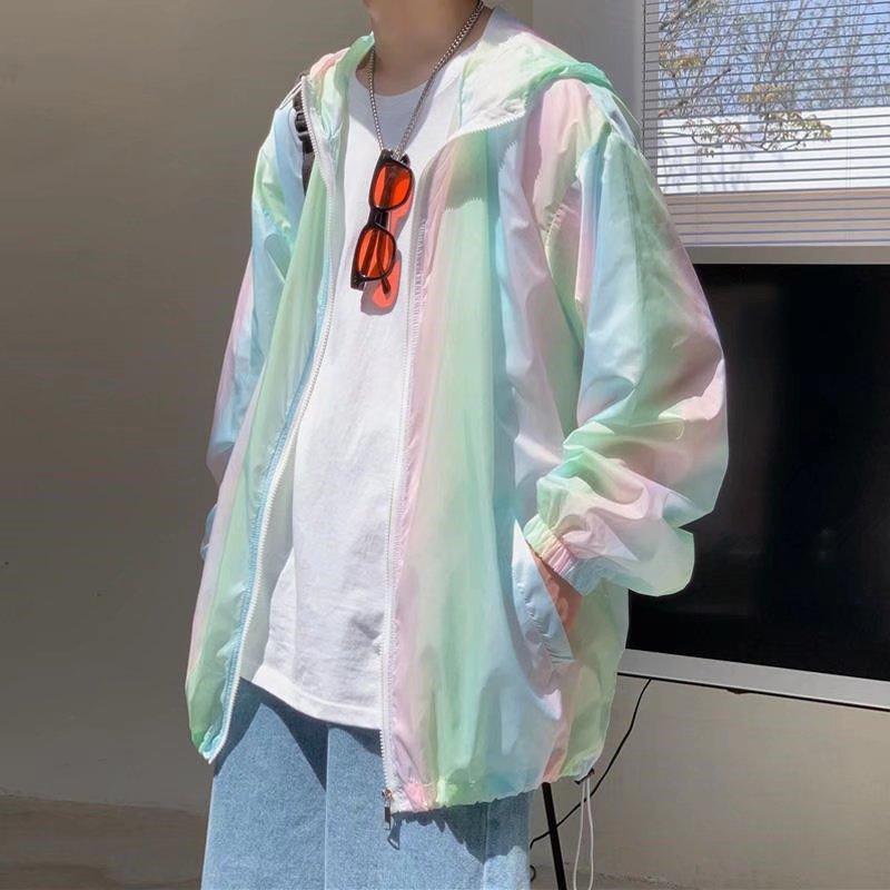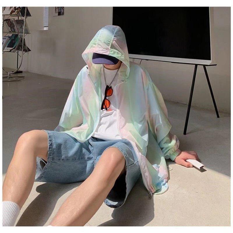 Ropa de protección solar de seda de hielo colorida para hombre, nueva prenda de verano transpirable, estilo coreano, estilo Hong Kong, abrigo holgado con capucha a la moda