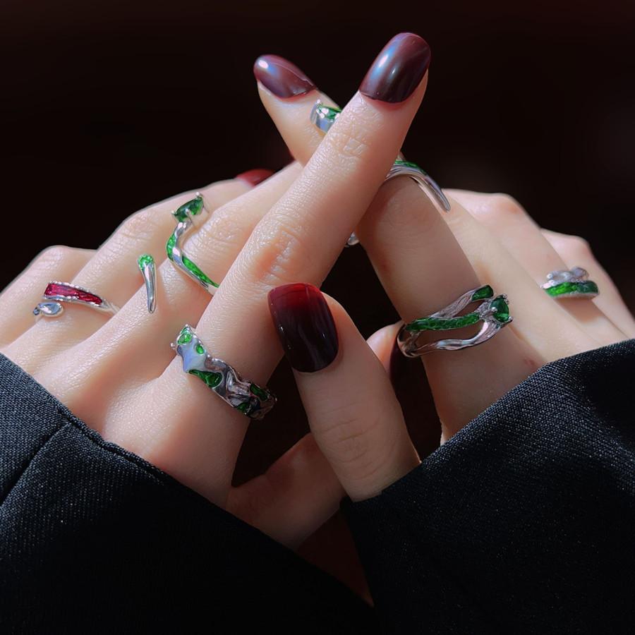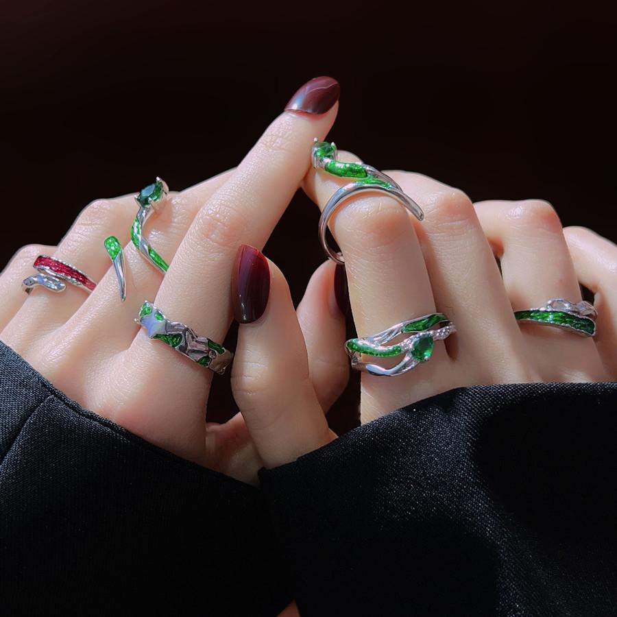 1906 spirit snake ring, 1899 green diamond texture ring, 1910 colorful green snake ring, 1911 green pattern ring, 1911 red ring