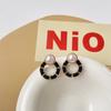 Pendientes de plata S925 con forma de aguja, estilo francés retro Hepburn, con cadena de personalidad para mujer, pendientes redondos huecos, elegantes pendientes de perlas.