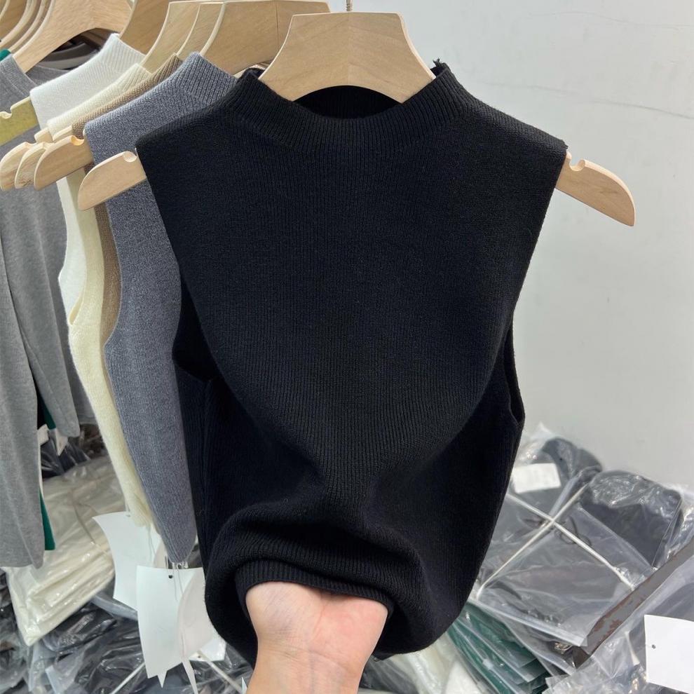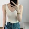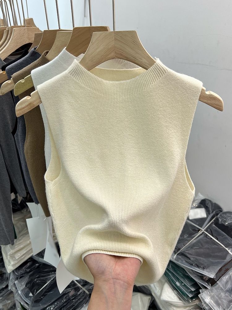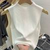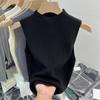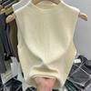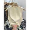 Playera de Punto de Color Sólido Primavera/Verano 2025 Cuello Redondo Ajustado Camisola de Seda de Hielo Versátil Top Básico sin Mangas para Mujer