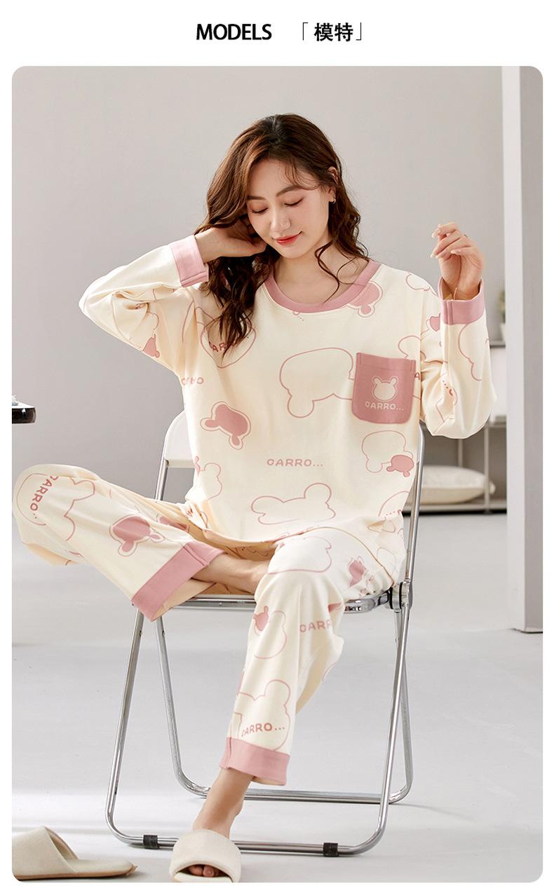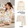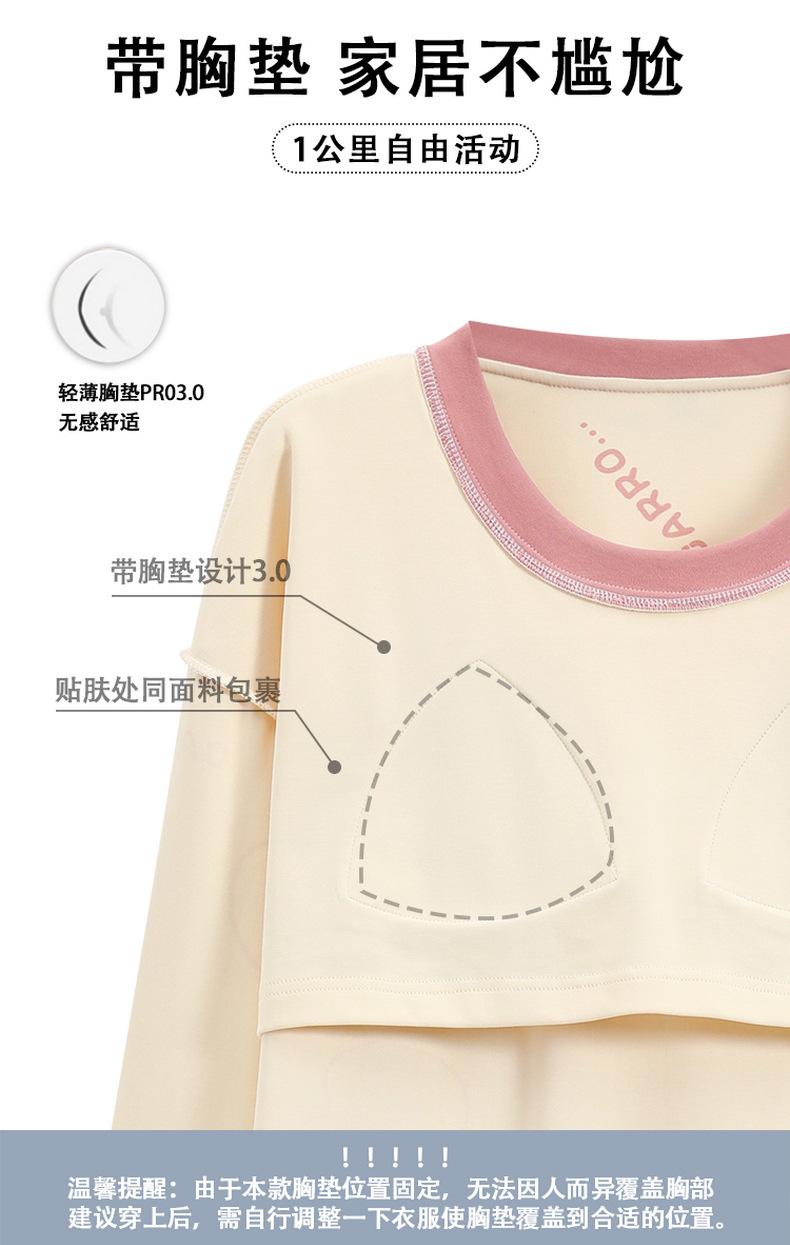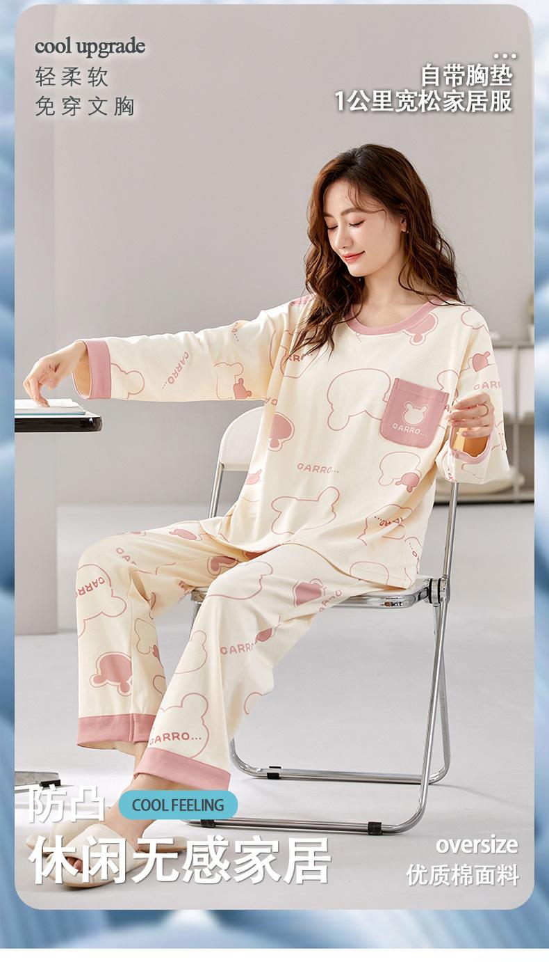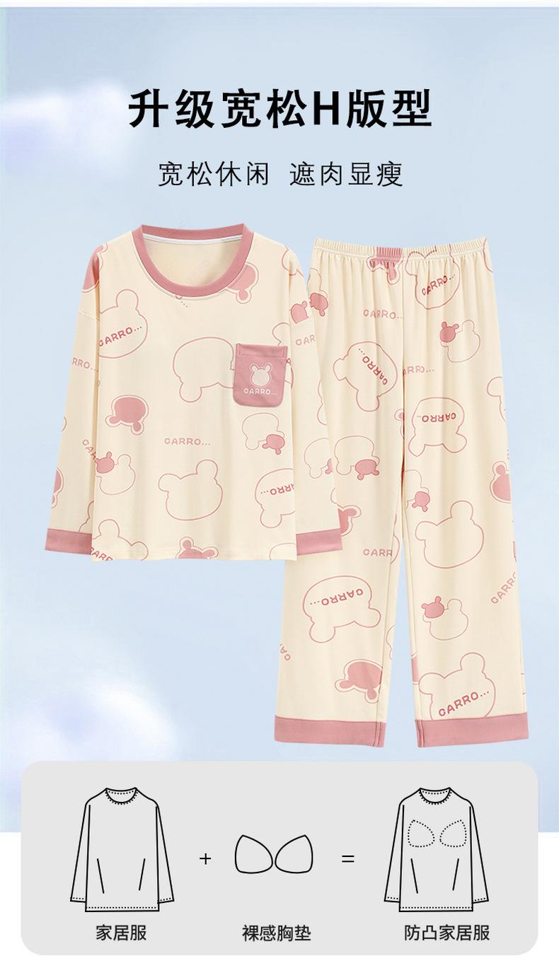 Pijama de algodón para mujer, primavera y otoño, con almohadilla para el pecho, manga larga, bonito y dulce, ropa exterior antigolpes, traje de casa para mujer