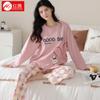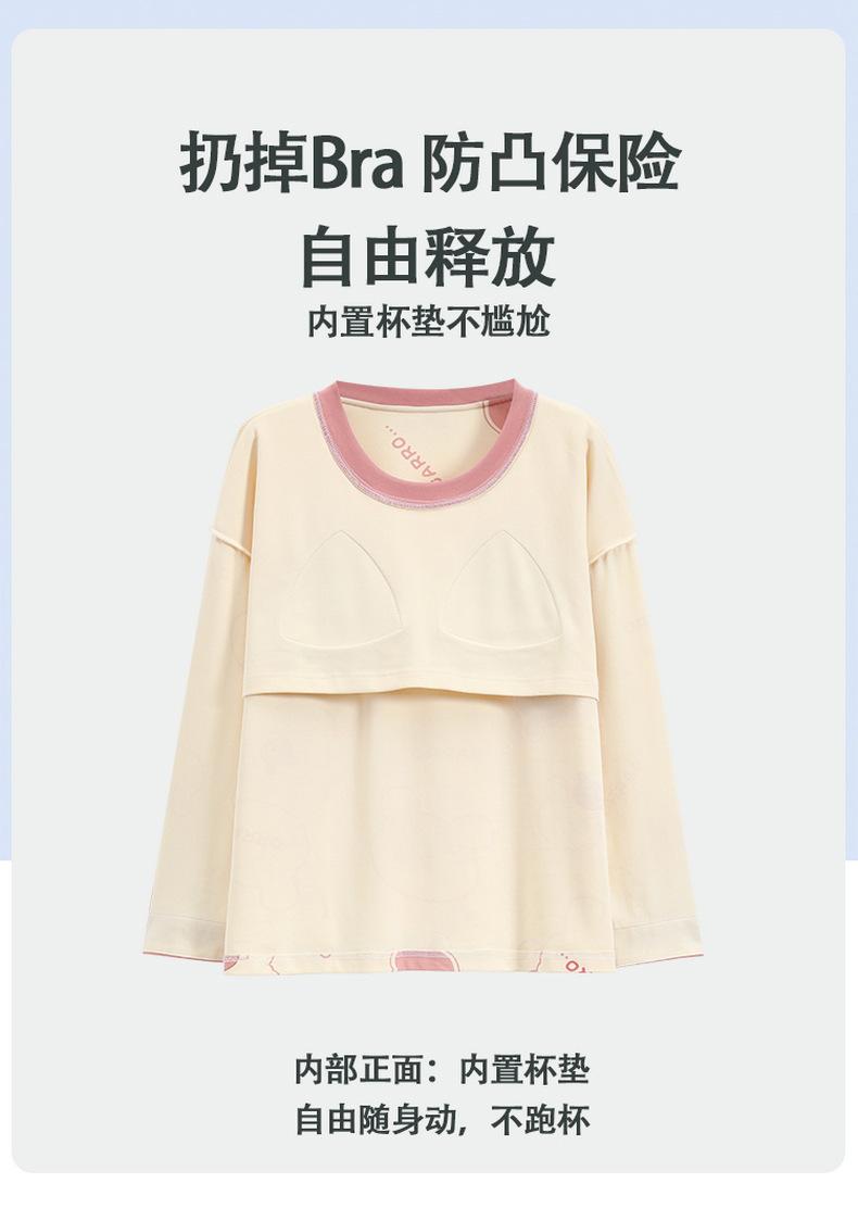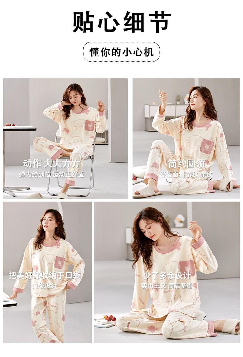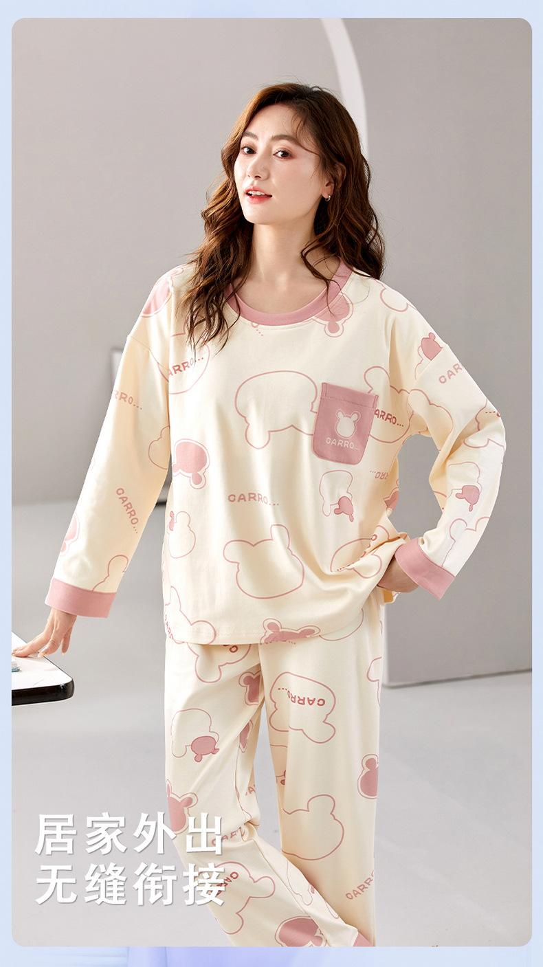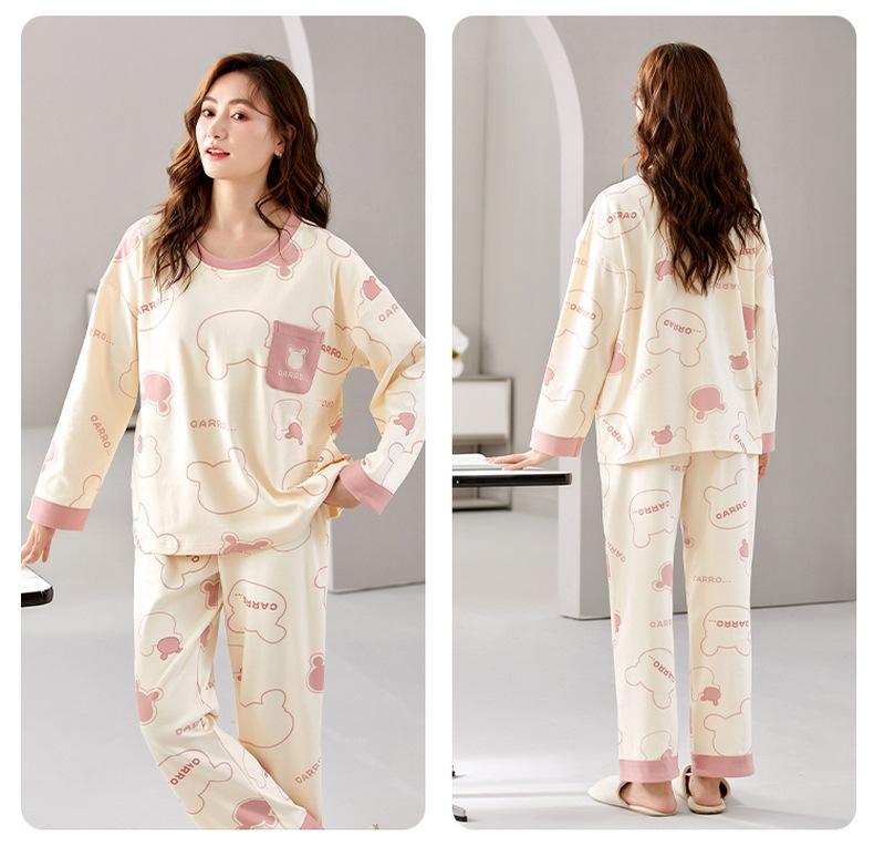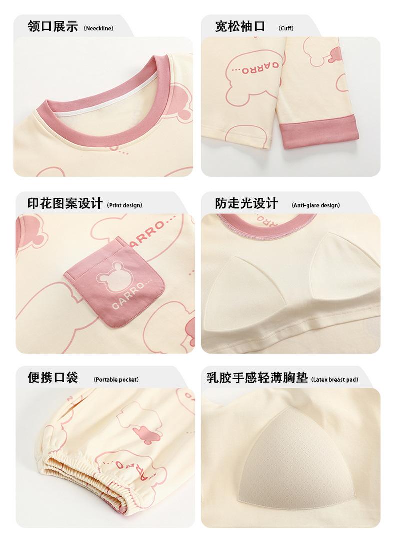 Pijama de algodón para mujer, primavera y otoño, con almohadilla para el pecho, manga larga, bonito y dulce, ropa exterior antigolpes, traje de casa para mujer
