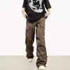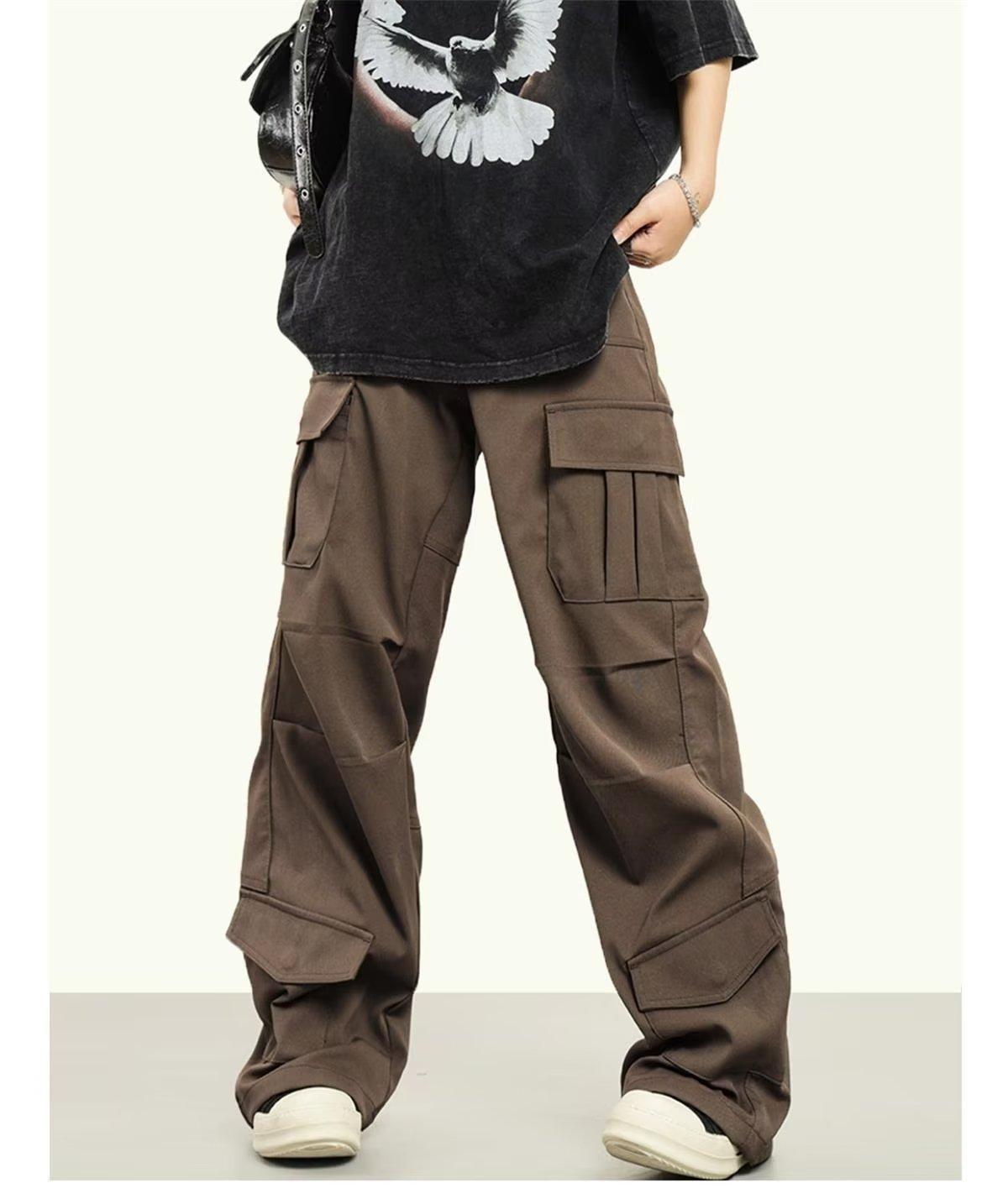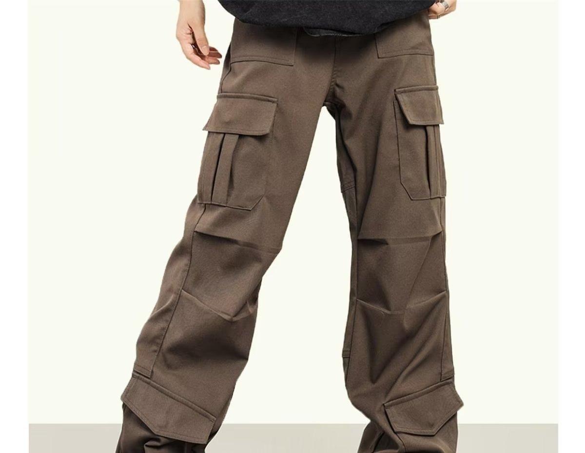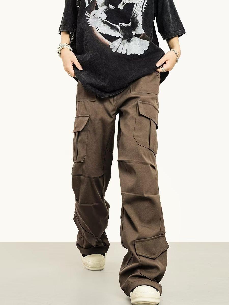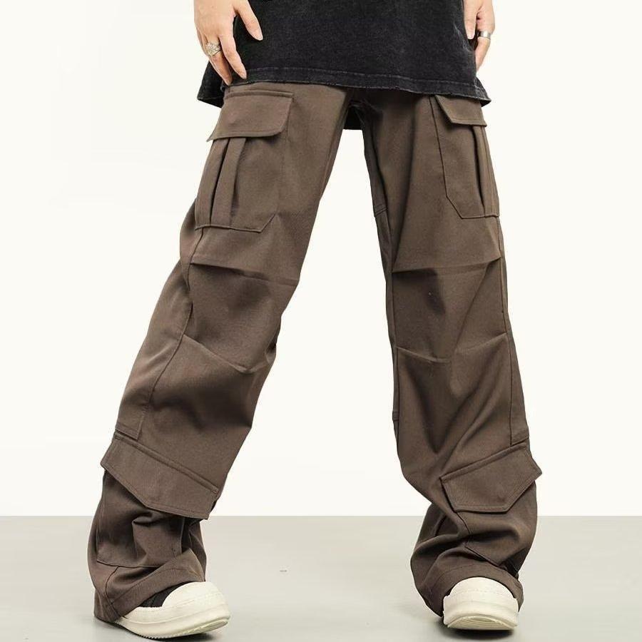 Overol marrón retro americano de pierna ancha para hombre, verano, delgado, vibrante, moderno, high street, holgado, recto, casual