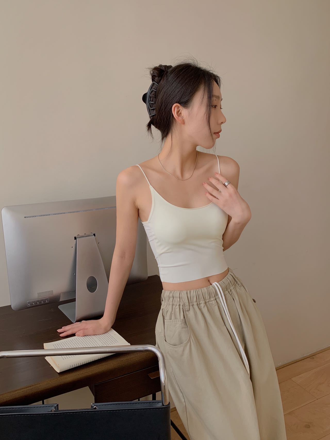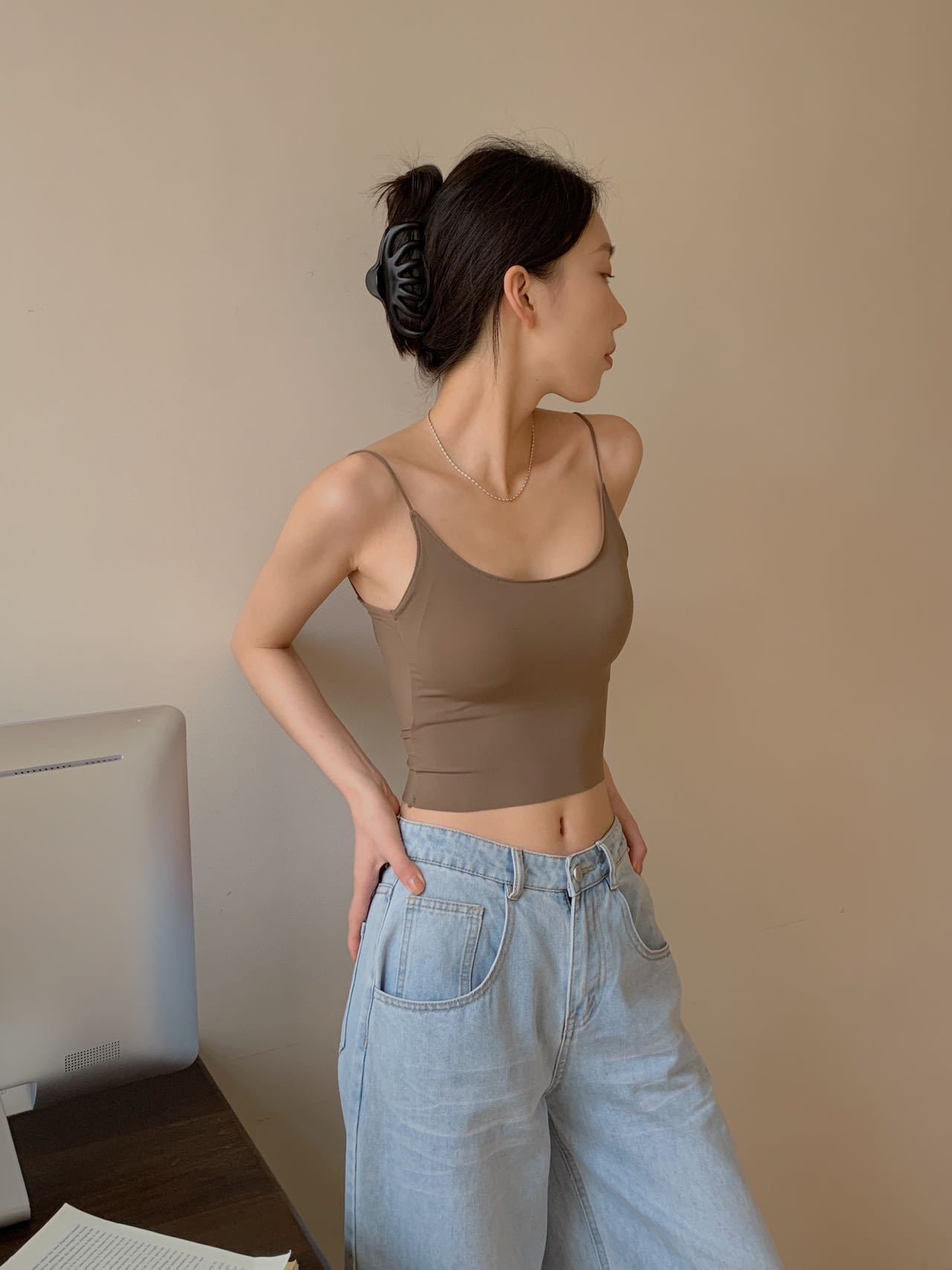 Nuevo Spice Girls Hielo Seda Cuello Redondo Copa de Aire Fija Espalda Cruzada de Belleza Camisola Base Pura Querer Sin Espalda Ropa Interior