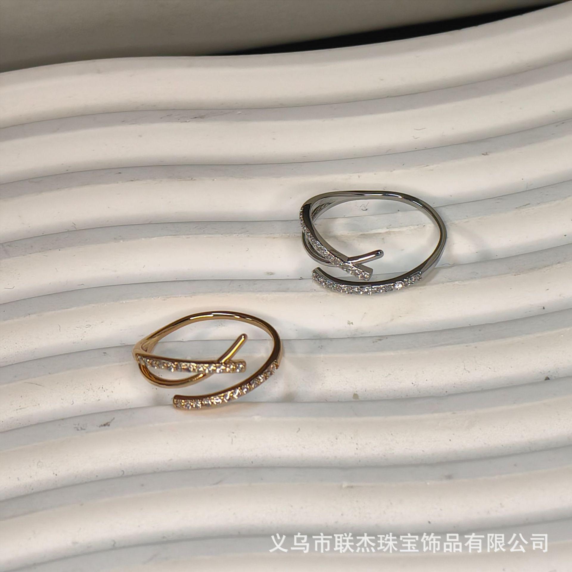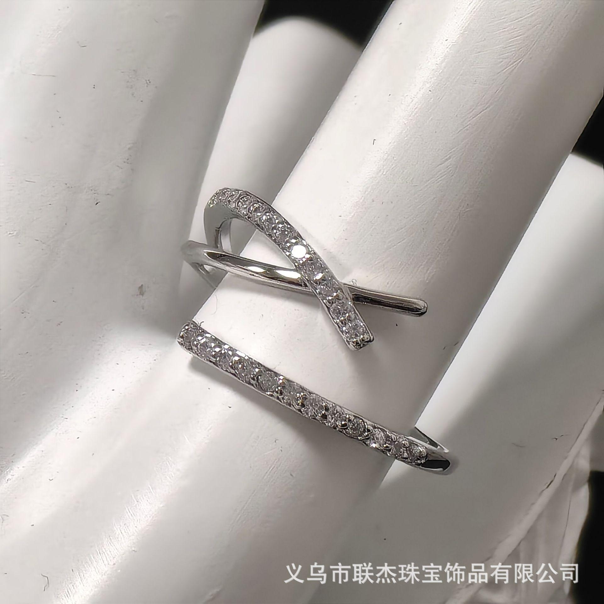 Set de Cobre Zircón Corea del Sur Estilo Frío Cadena Delgada Anillo Cruz Moda Femenina Distintivo Ins Trendy Estilo Japonés Lujo Ligero Dedo Índice