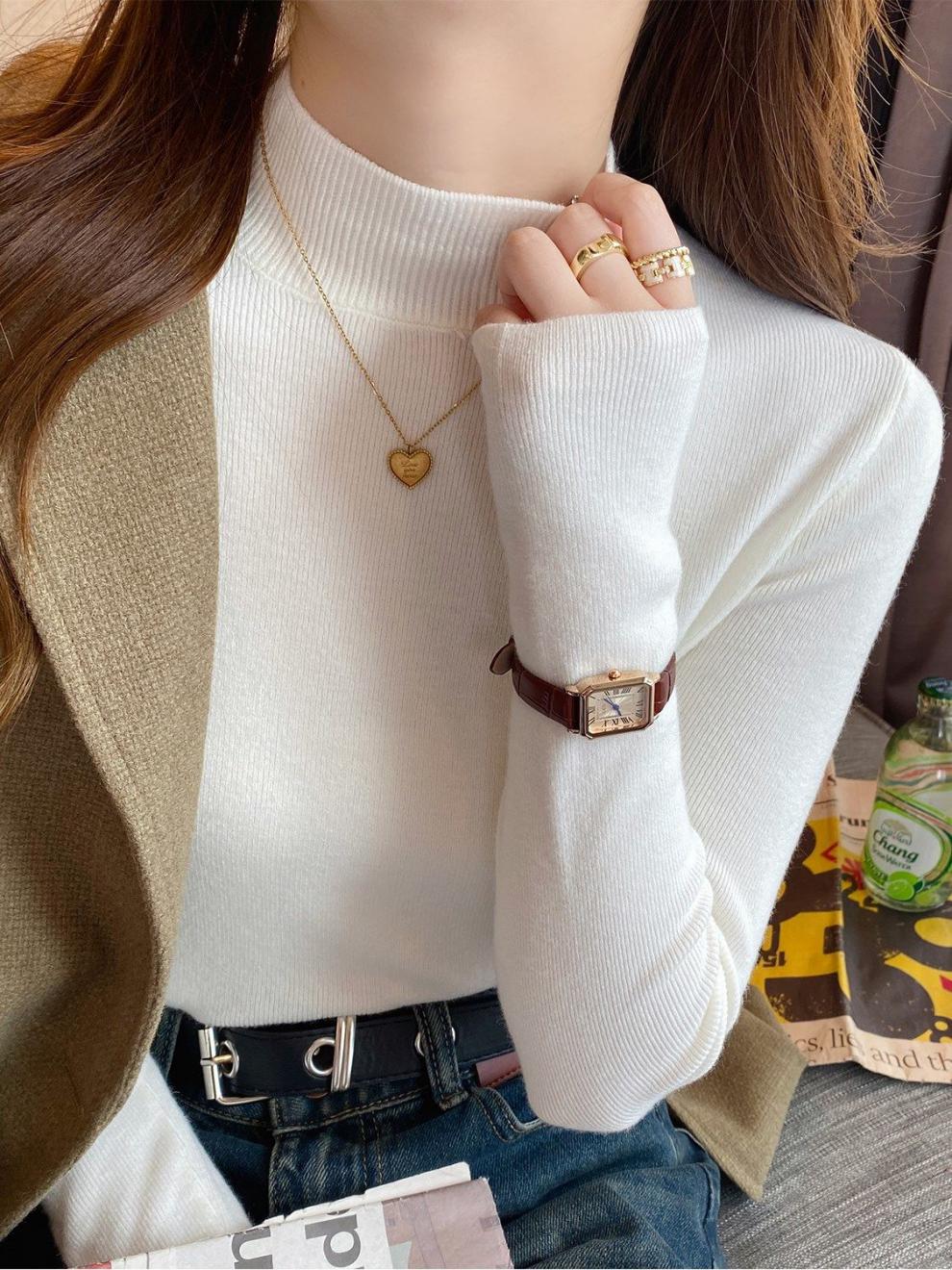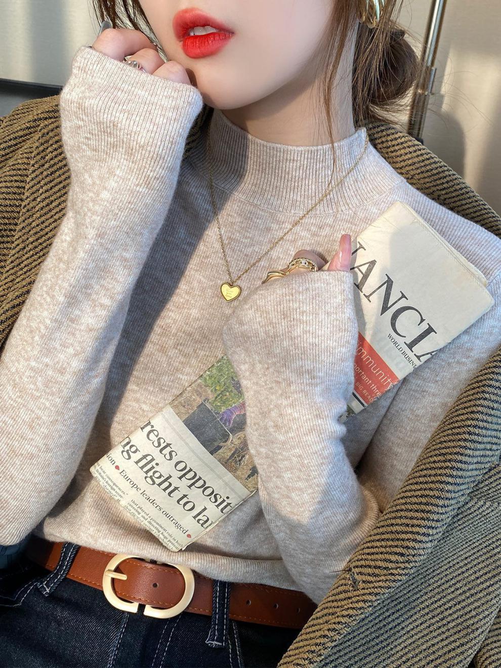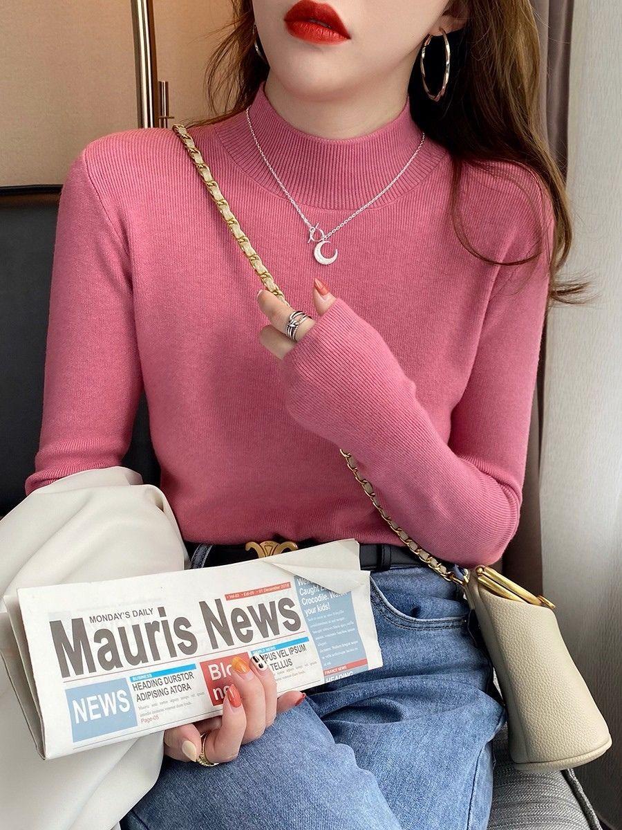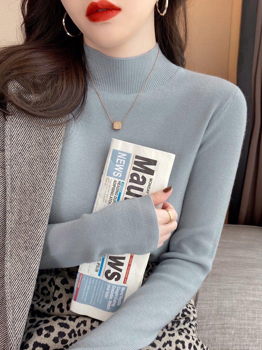 Suéter de medio cuello alto moderno y a la moda para mujer, top de otoño e invierno, base ajustada de manga larga, adelgazante de cuello medio, suéter interior para mujer