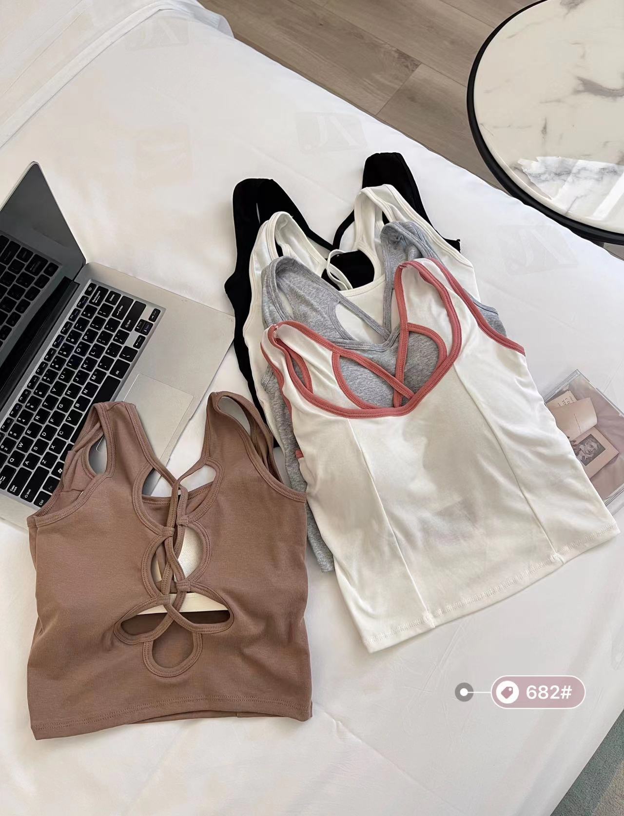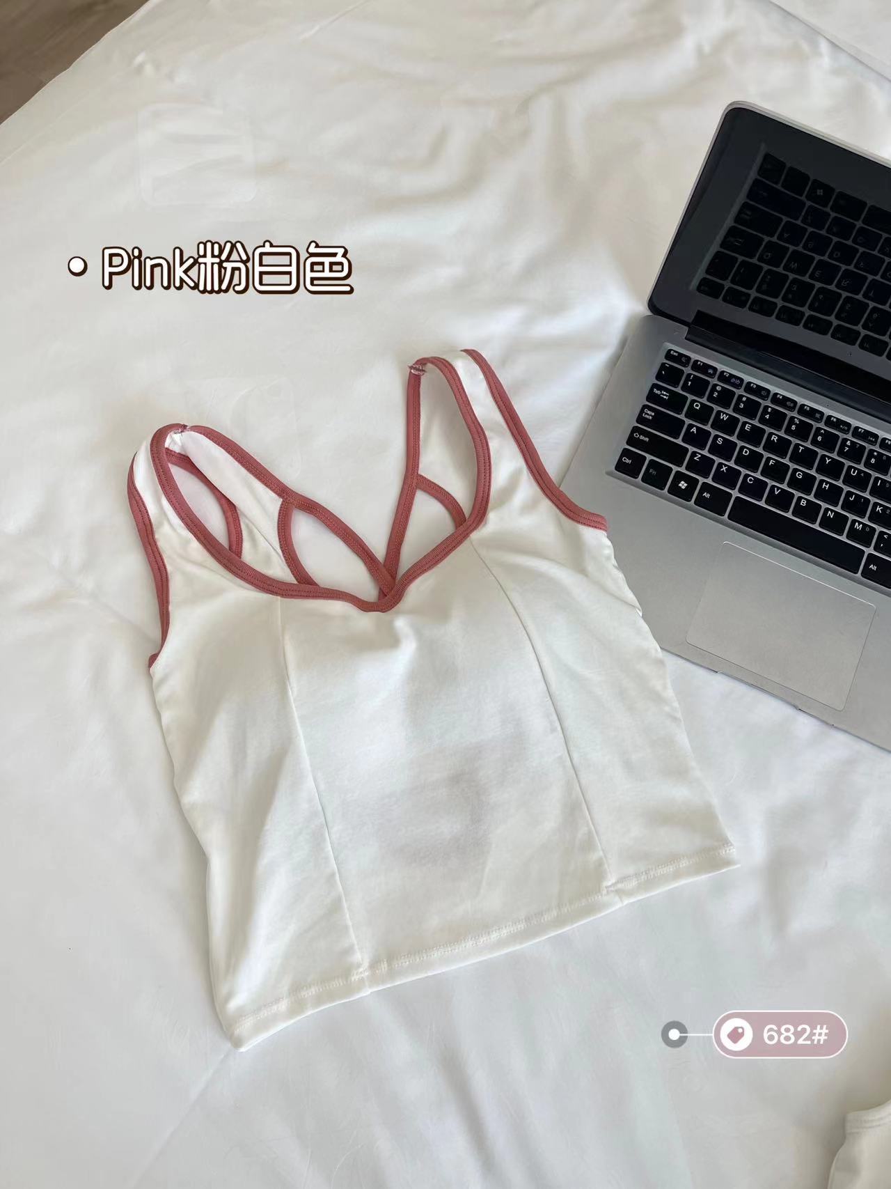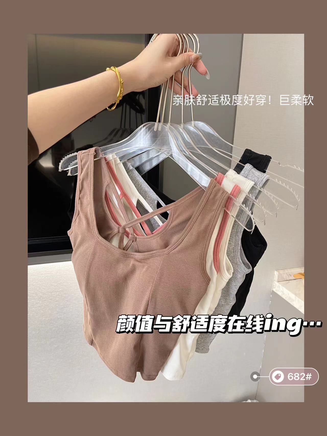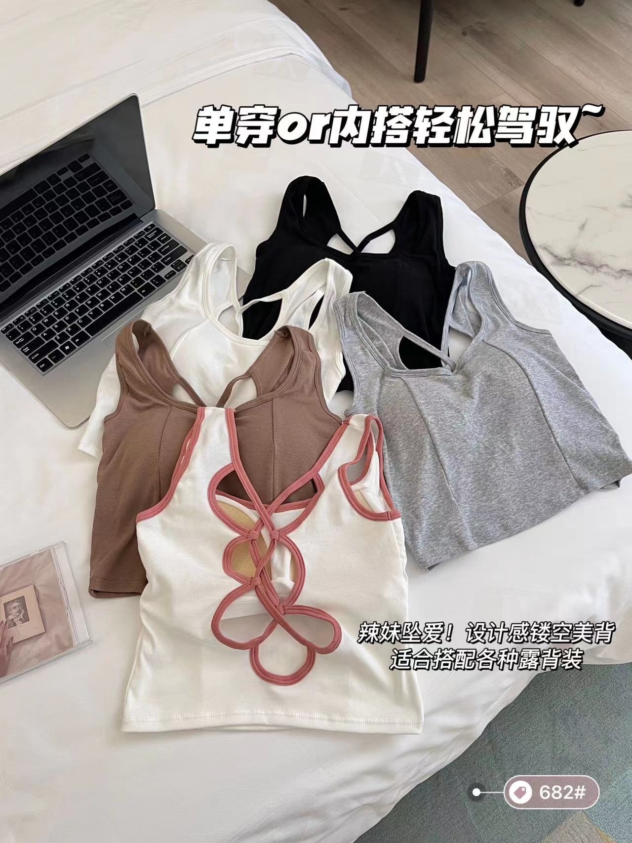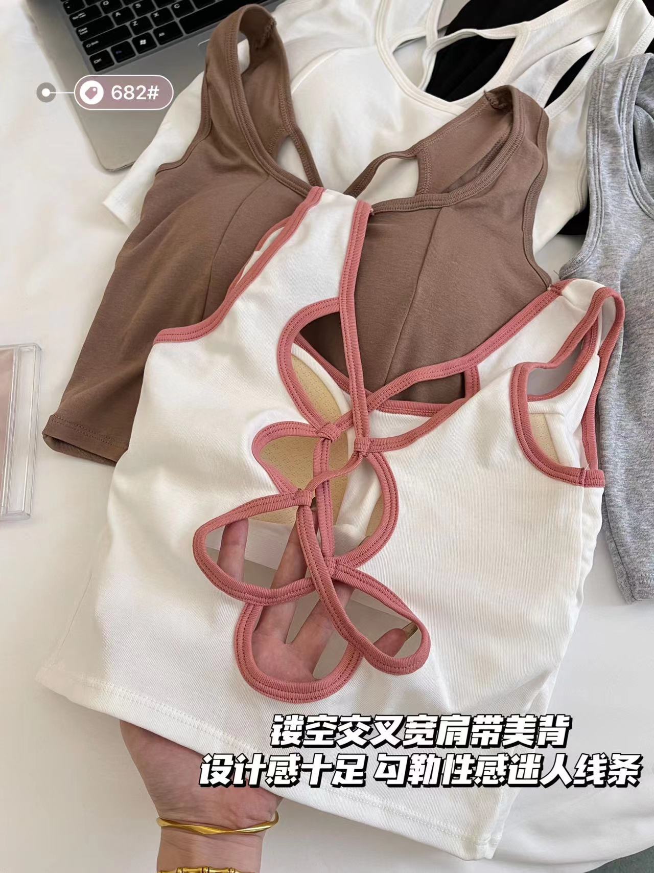 Nuevo Algodón Primavera y Verano Chaleco Pequeño Copa Fija Tirante con Almohadilla para el Pecho Ropa Interior para Mujer Espalda Hermosa Hombro Ancho Calado Ropa Interior para Usar por Fuera