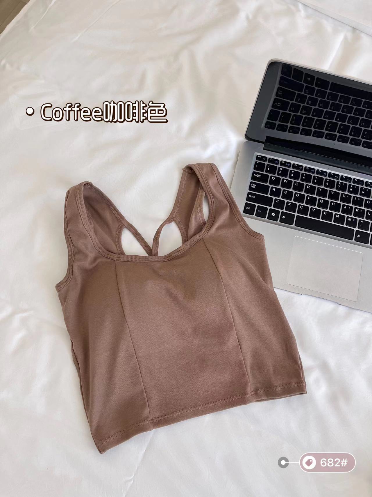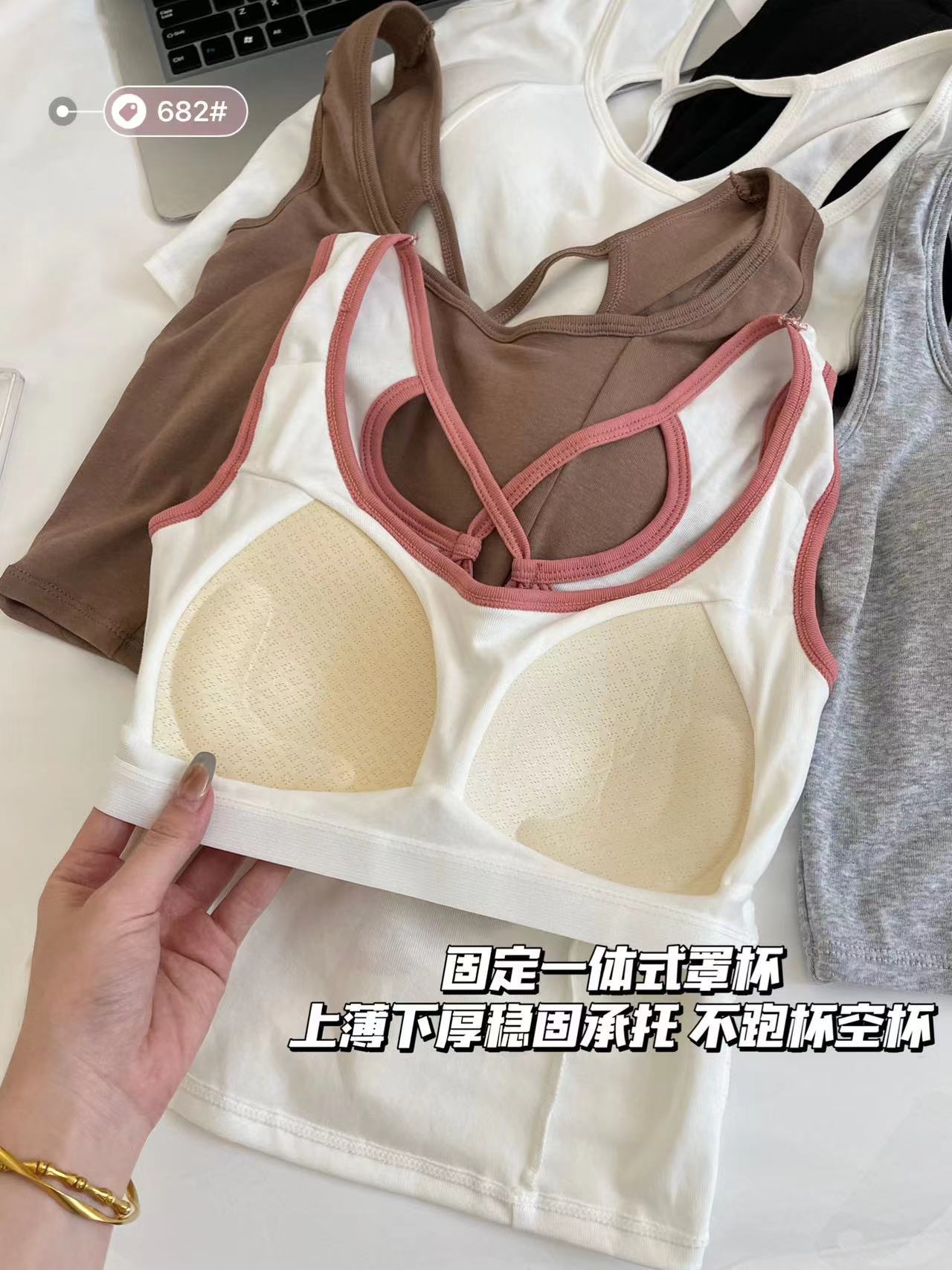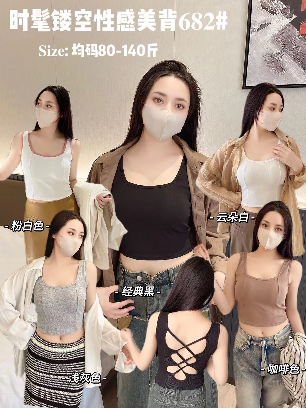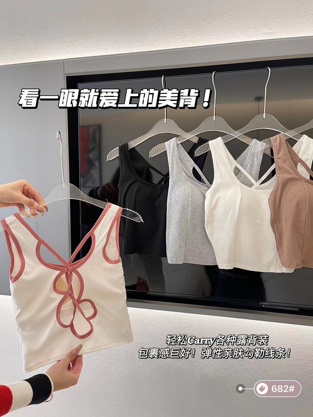 Nuevo Algodón Primavera y Verano Chaleco Pequeño Copa Fija Tirante con Almohadilla para el Pecho Ropa Interior para Mujer Espalda Hermosa Hombro Ancho Calado Ropa Interior para Usar por Fuera