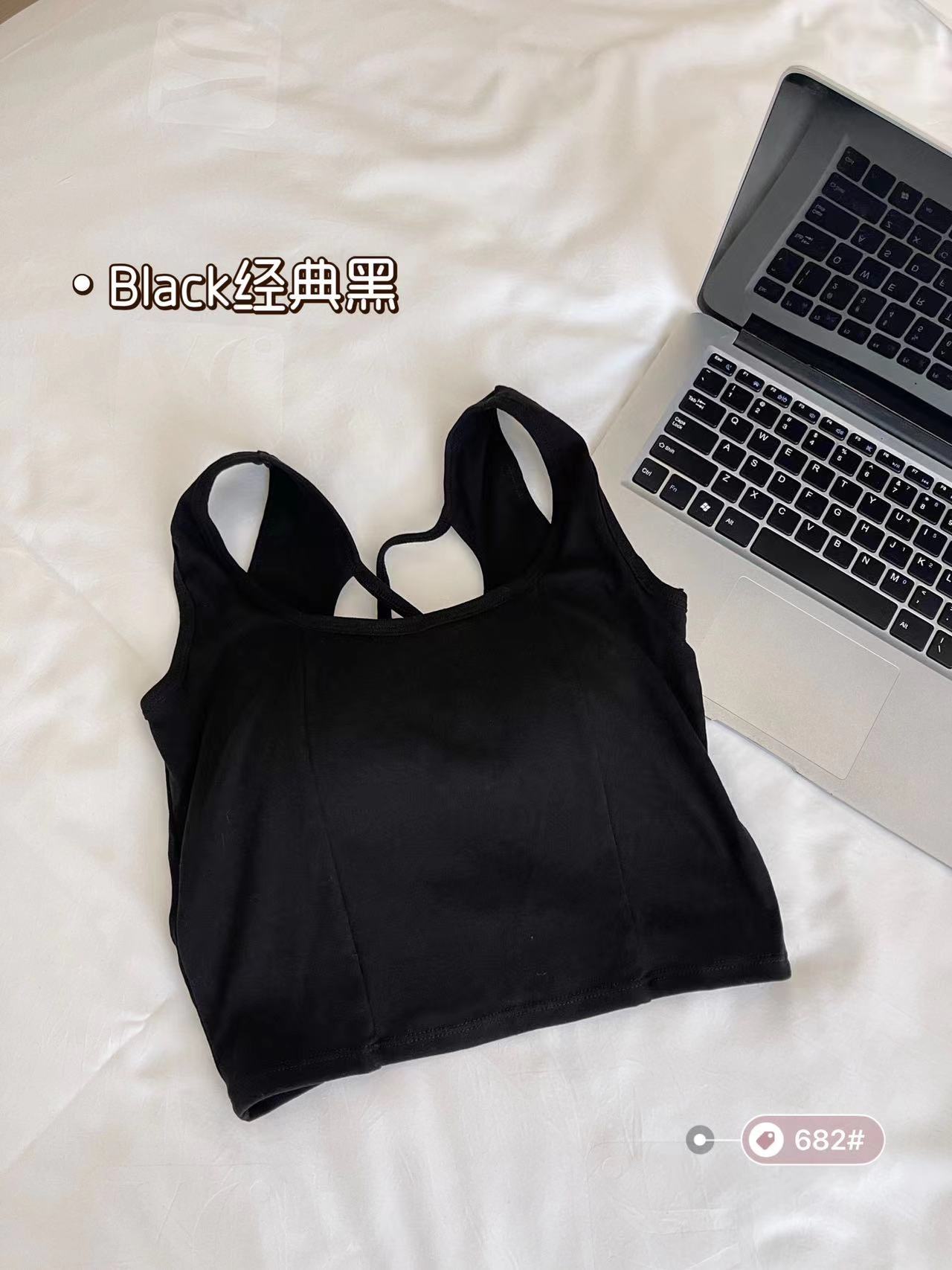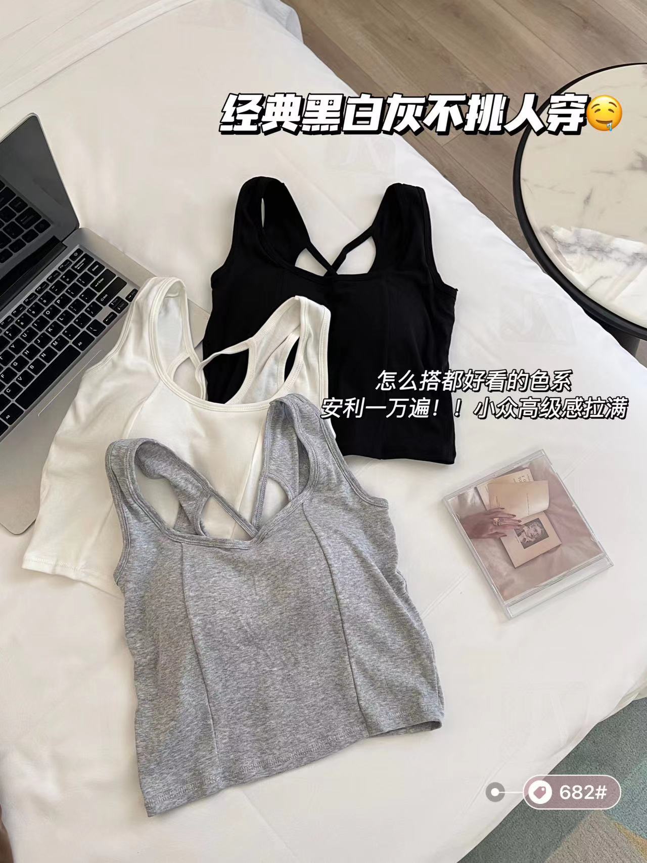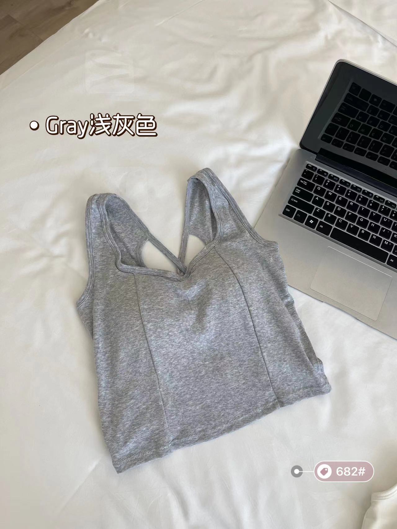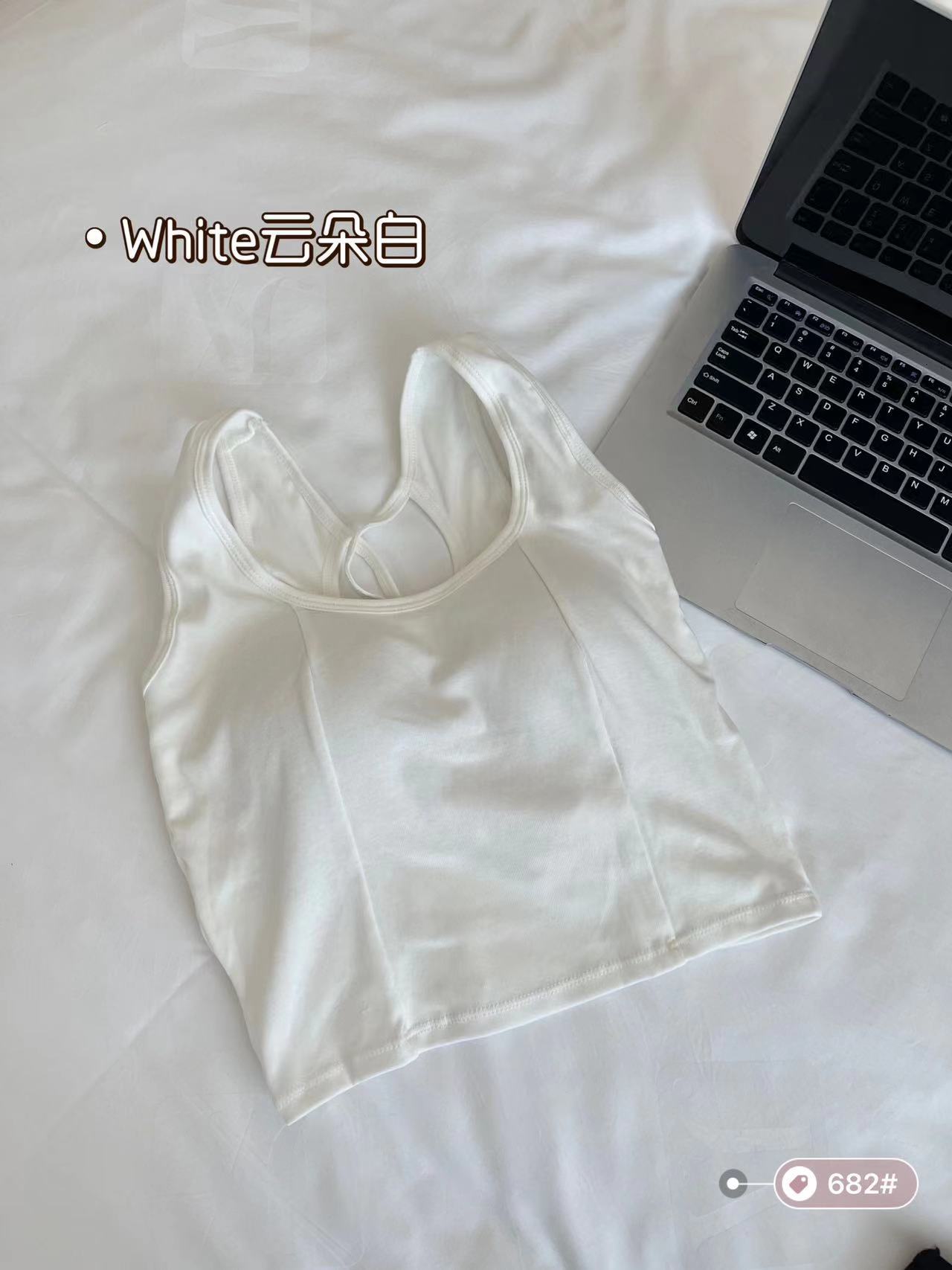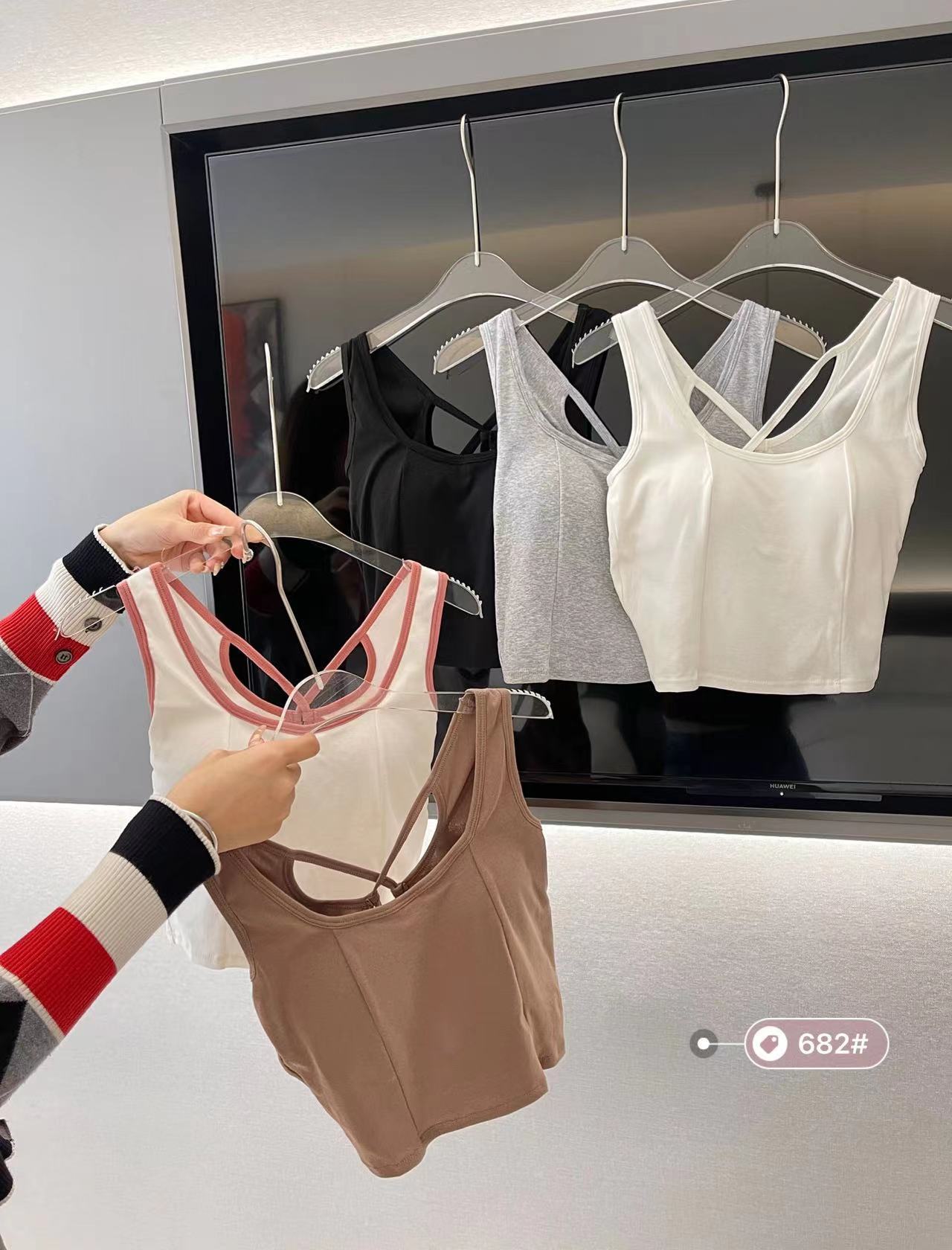 Nuevo Algodón Primavera y Verano Chaleco Pequeño Copa Fija Tirante con Almohadilla para el Pecho Ropa Interior para Mujer Espalda Hermosa Hombro Ancho Calado Ropa Interior para Usar por Fuera