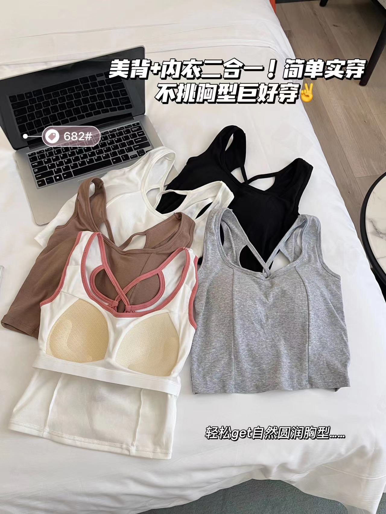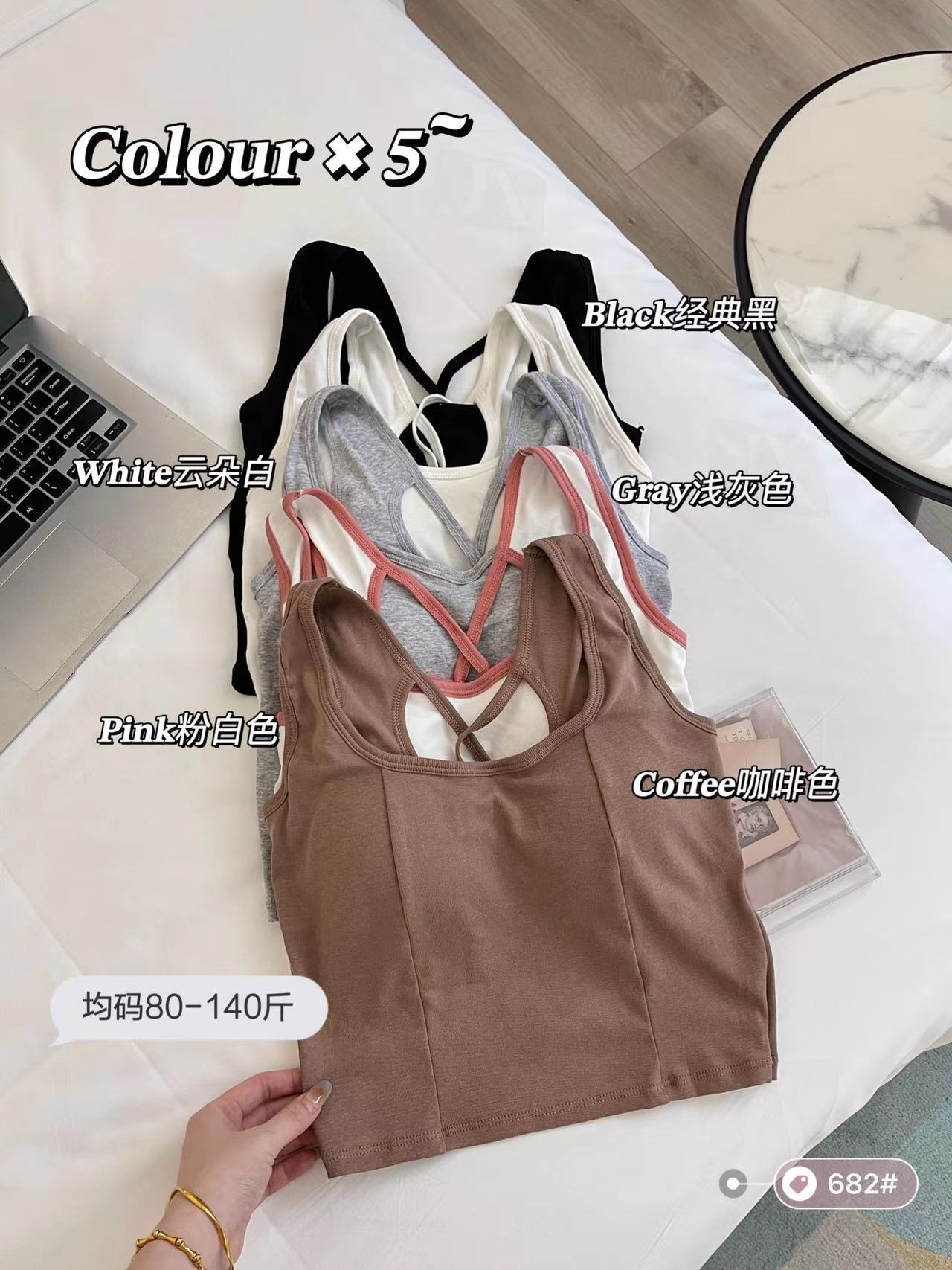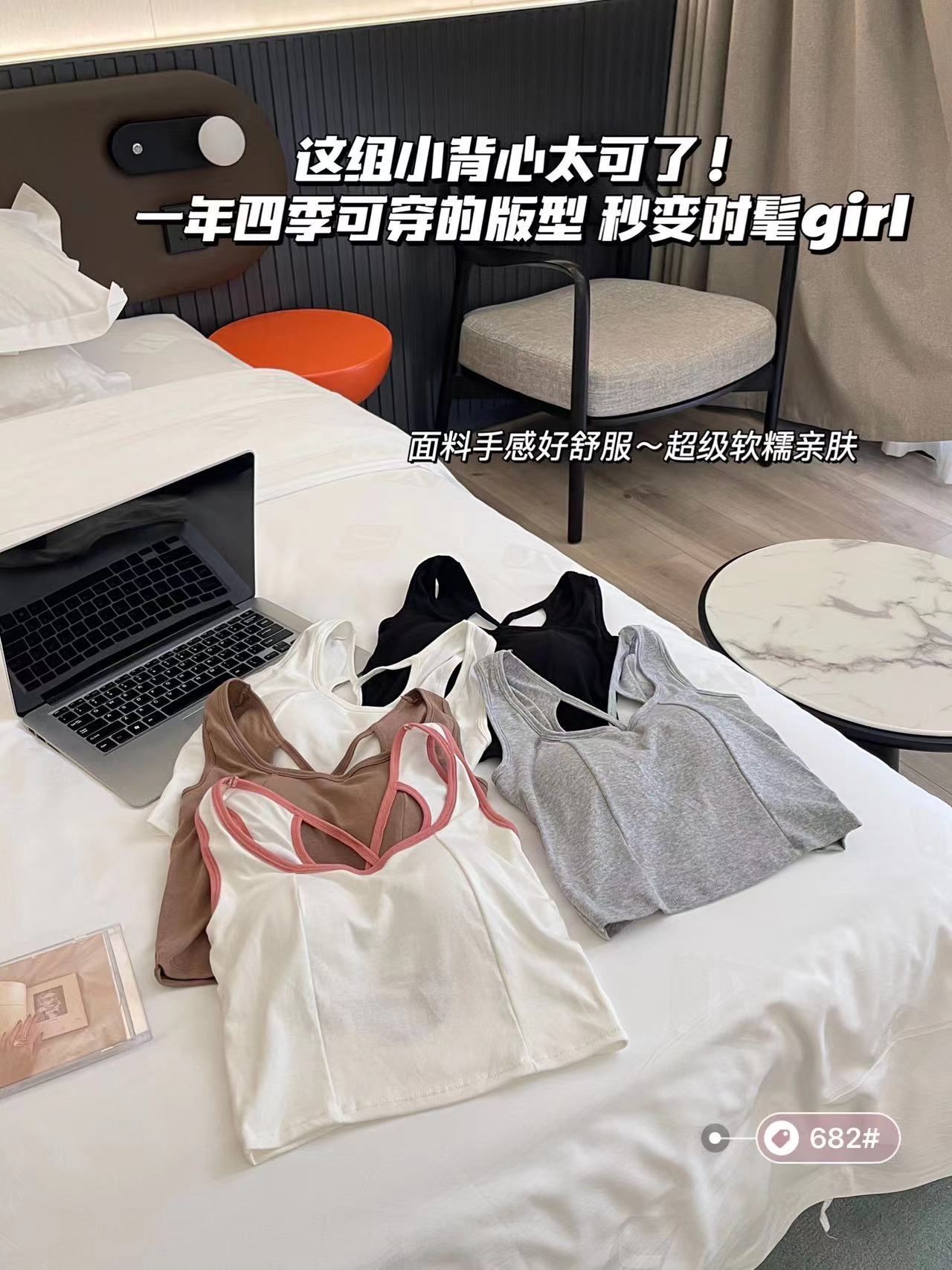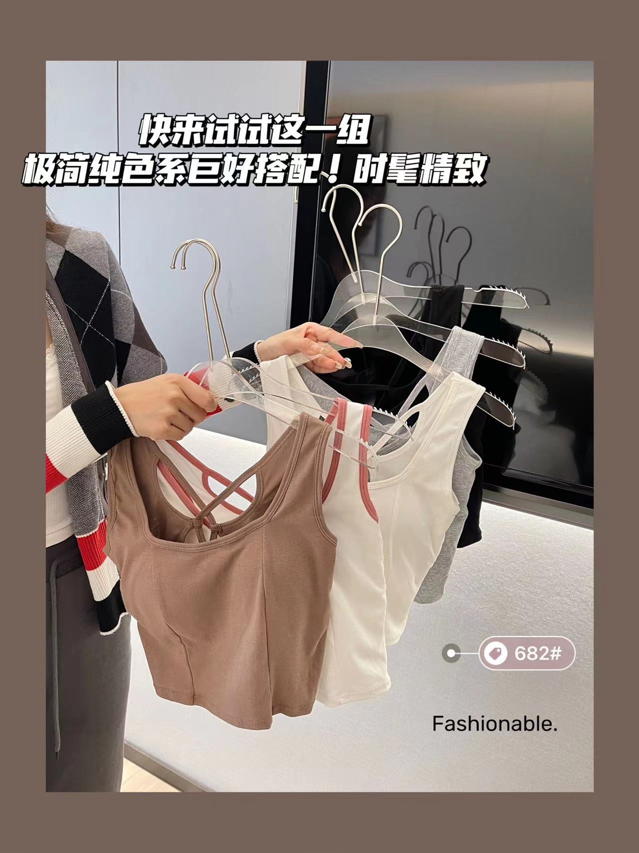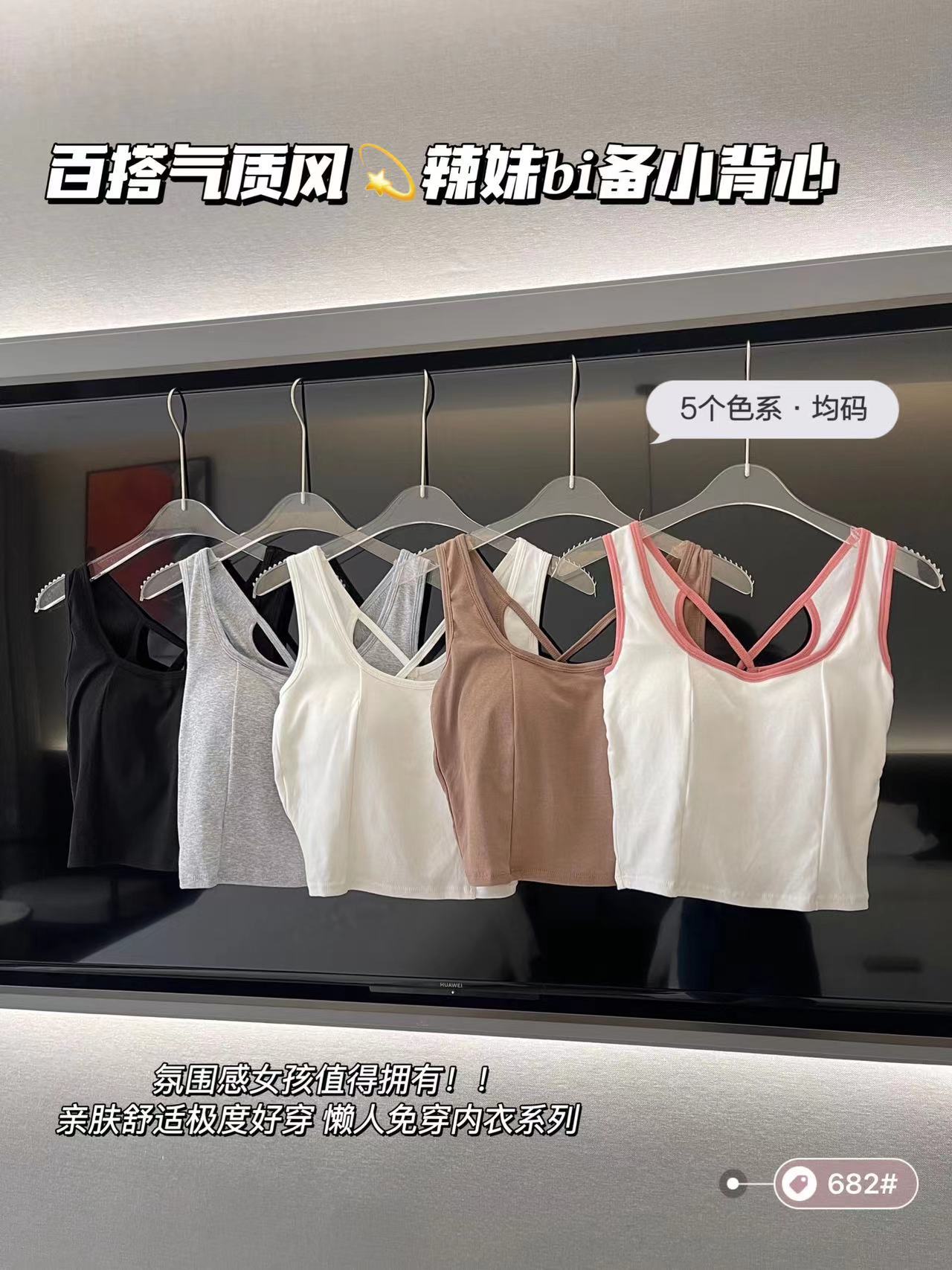 Nuevo Algodón Primavera y Verano Chaleco Pequeño Copa Fija Tirante con Almohadilla para el Pecho Ropa Interior para Mujer Espalda Hermosa Hombro Ancho Calado Ropa Interior para Usar por Fuera