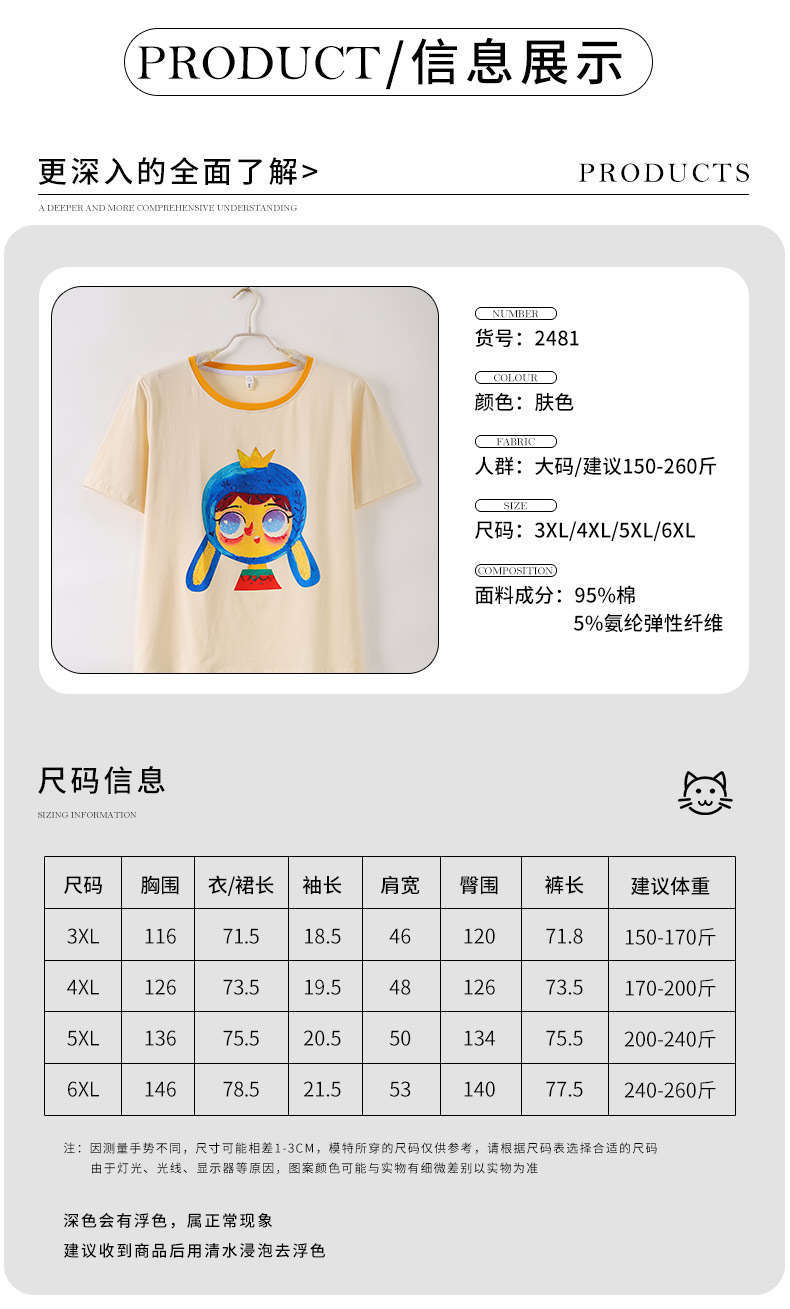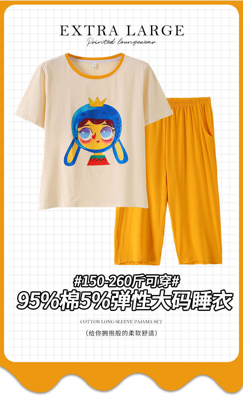 Pijama de exterior extragrande para mujer, ropa de casa de verano holgada con caricatura, traje