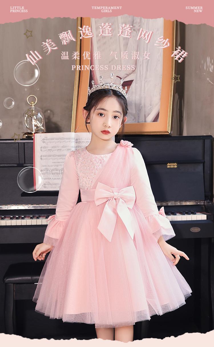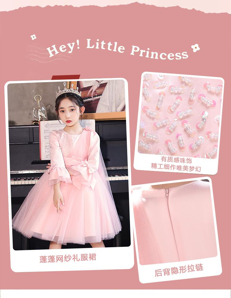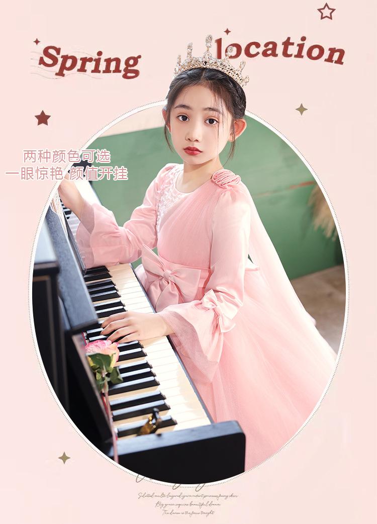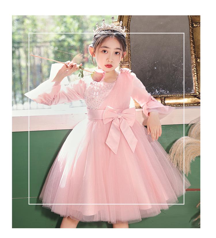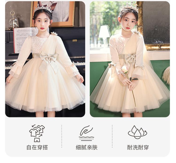 Vestido de Niña Vestido de Princesa Otoño Nuevo Estilo Vestido de Niña Vestido de Dama de Honor Vestido de Boda Anfitrión Elegante Ropa para Actuación de Piano
