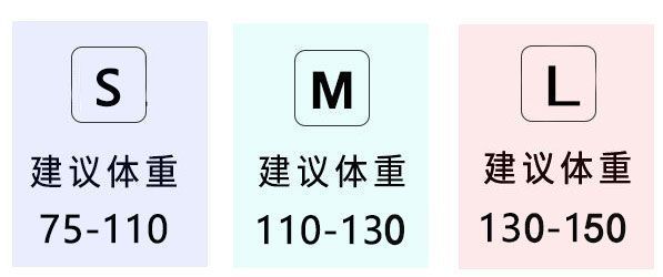 S recommend 37.50 kg-55.00 kg, M recommend 55.00 kg-65.00 kg, L recommend 65.00 kg-75.00 kg